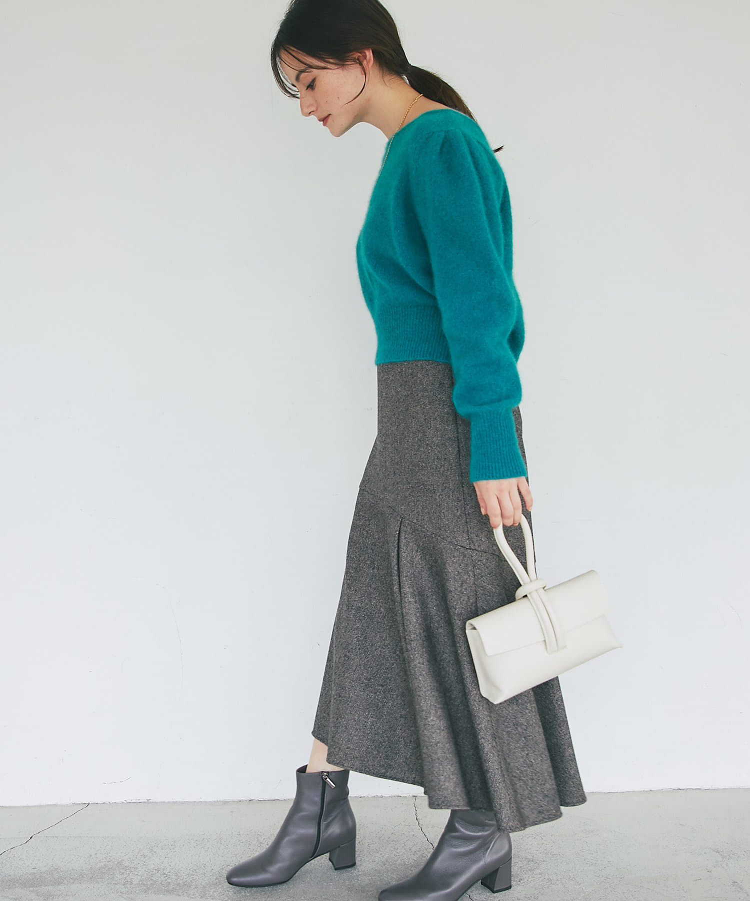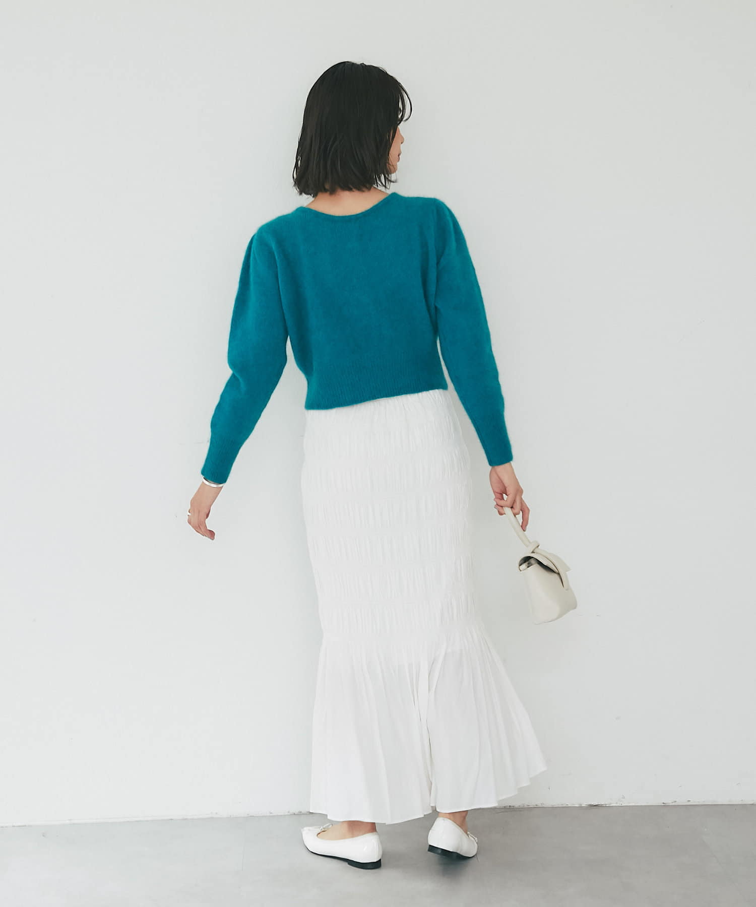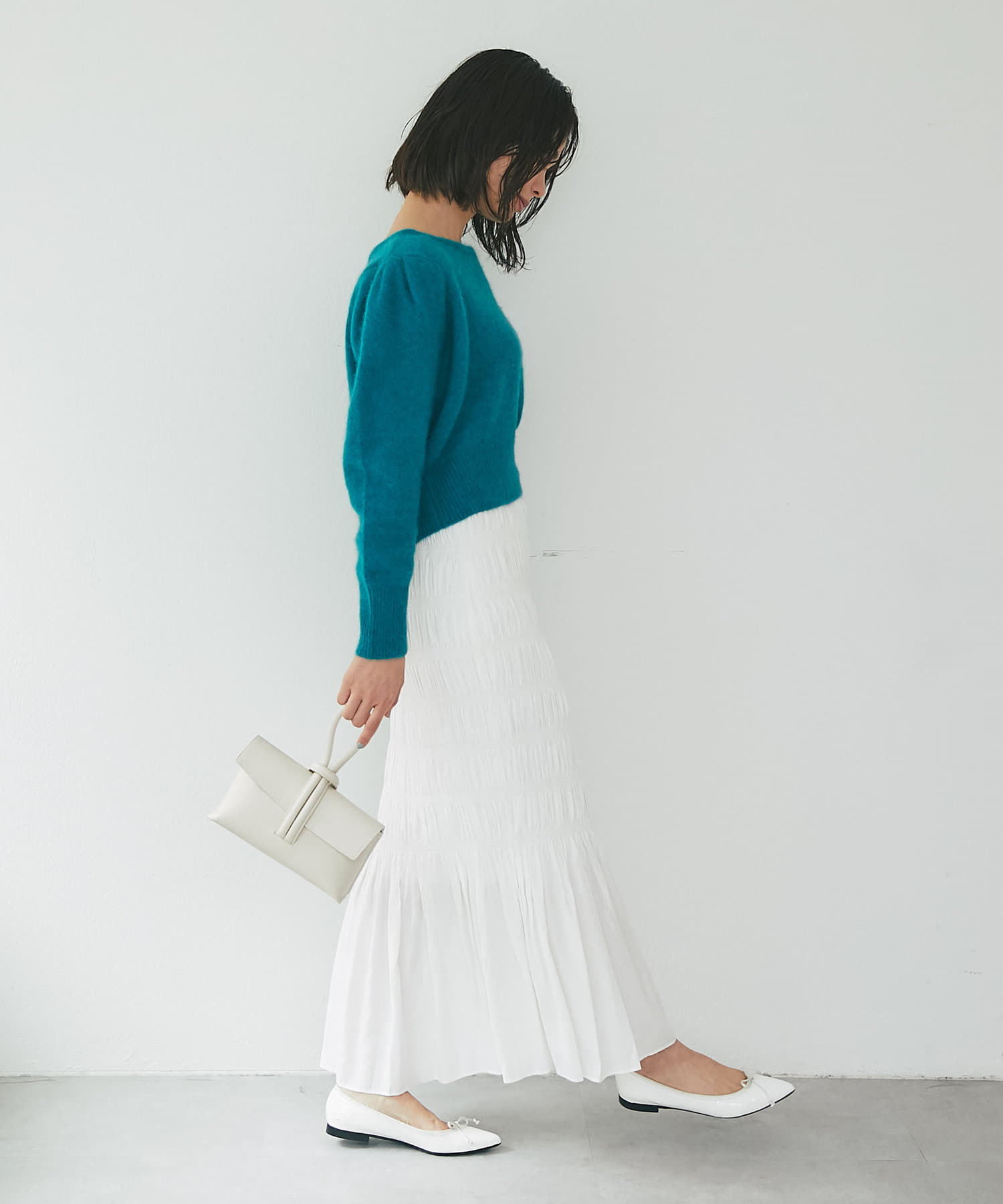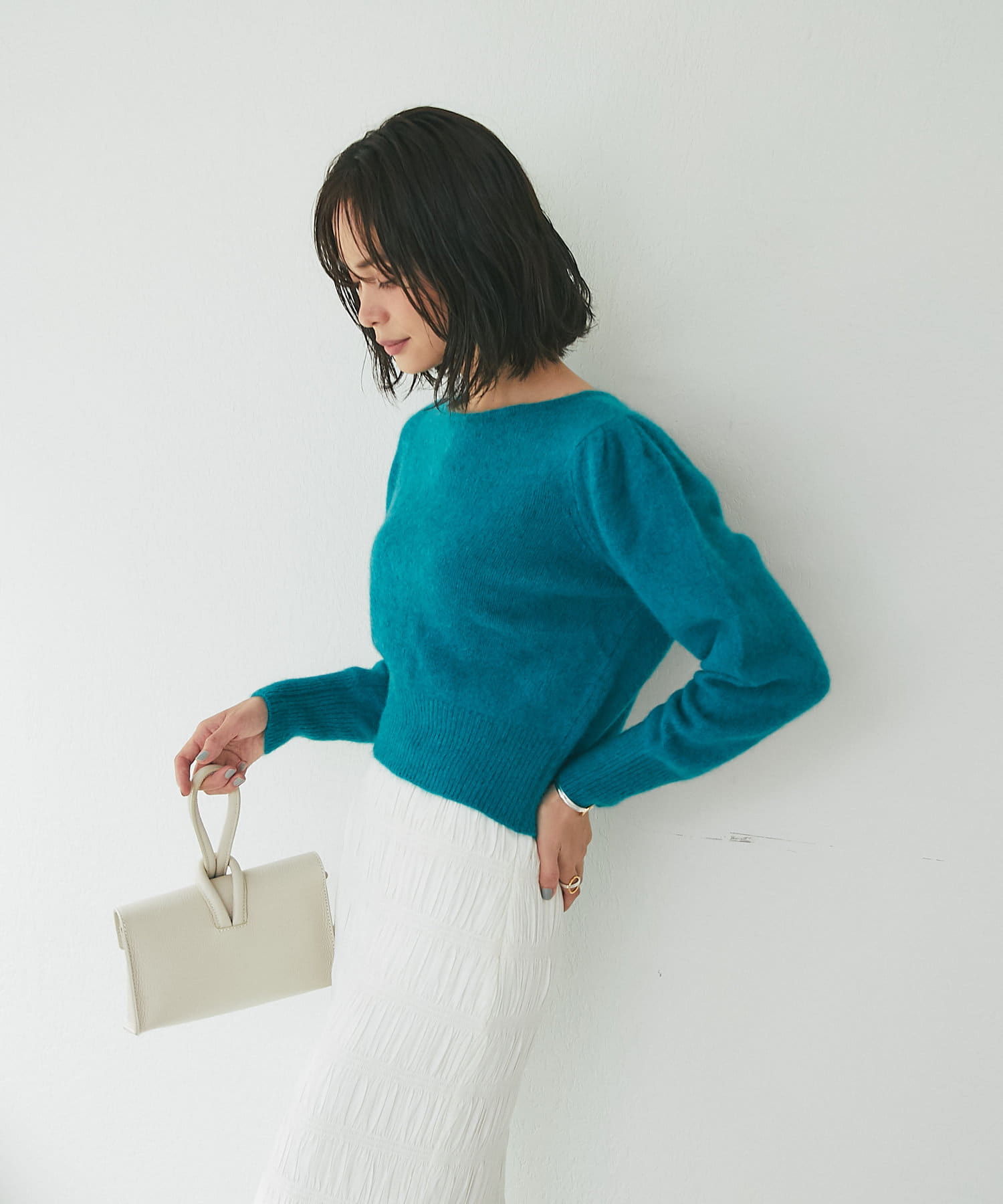 #シンプルニット #シンプル #デイリーユース #オフィスカジュアル #無地 #ボリュームスリーブ #カラーニット
