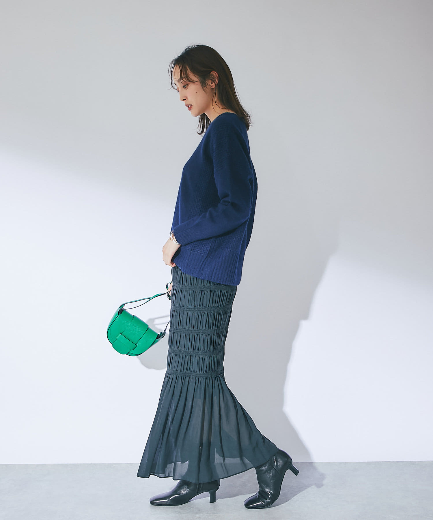 カラーはベーシックなネイビーとベージュできちんと感もありつつ、抜け感が出しやすいのが嬉しいアイテム。