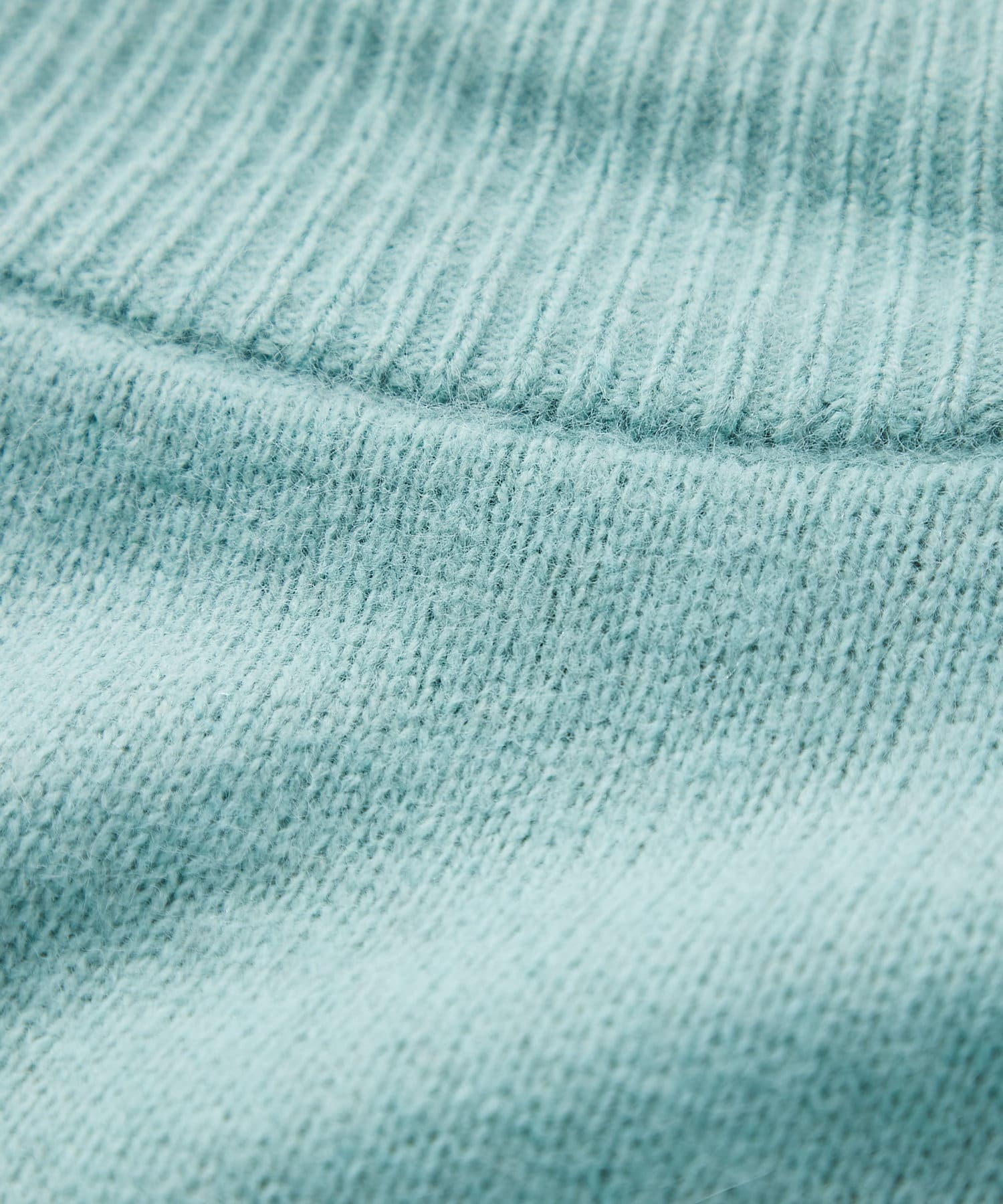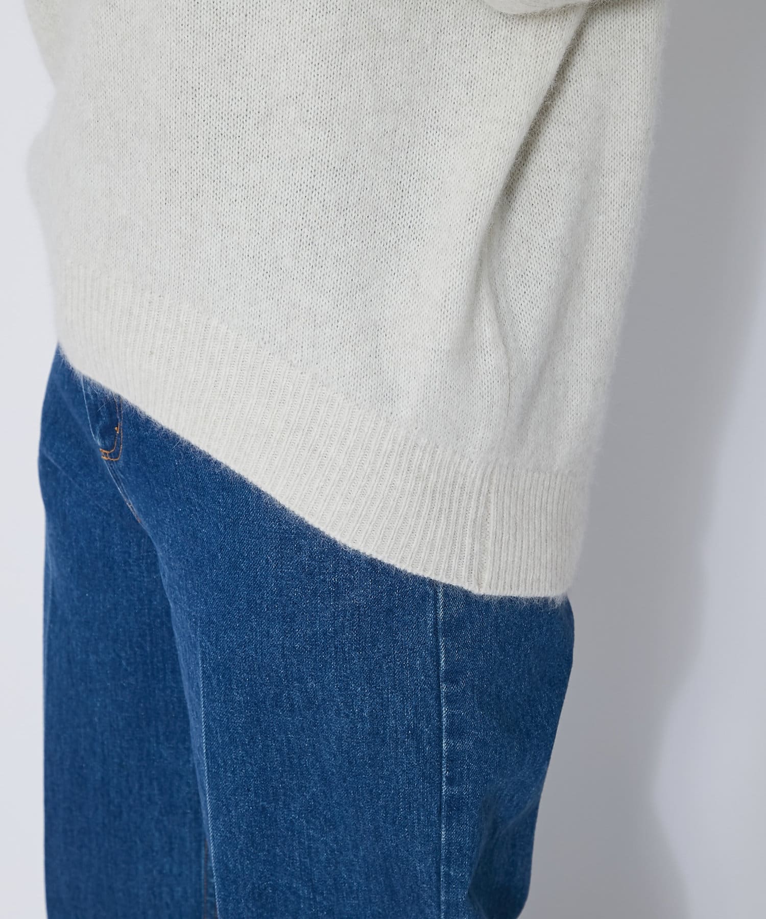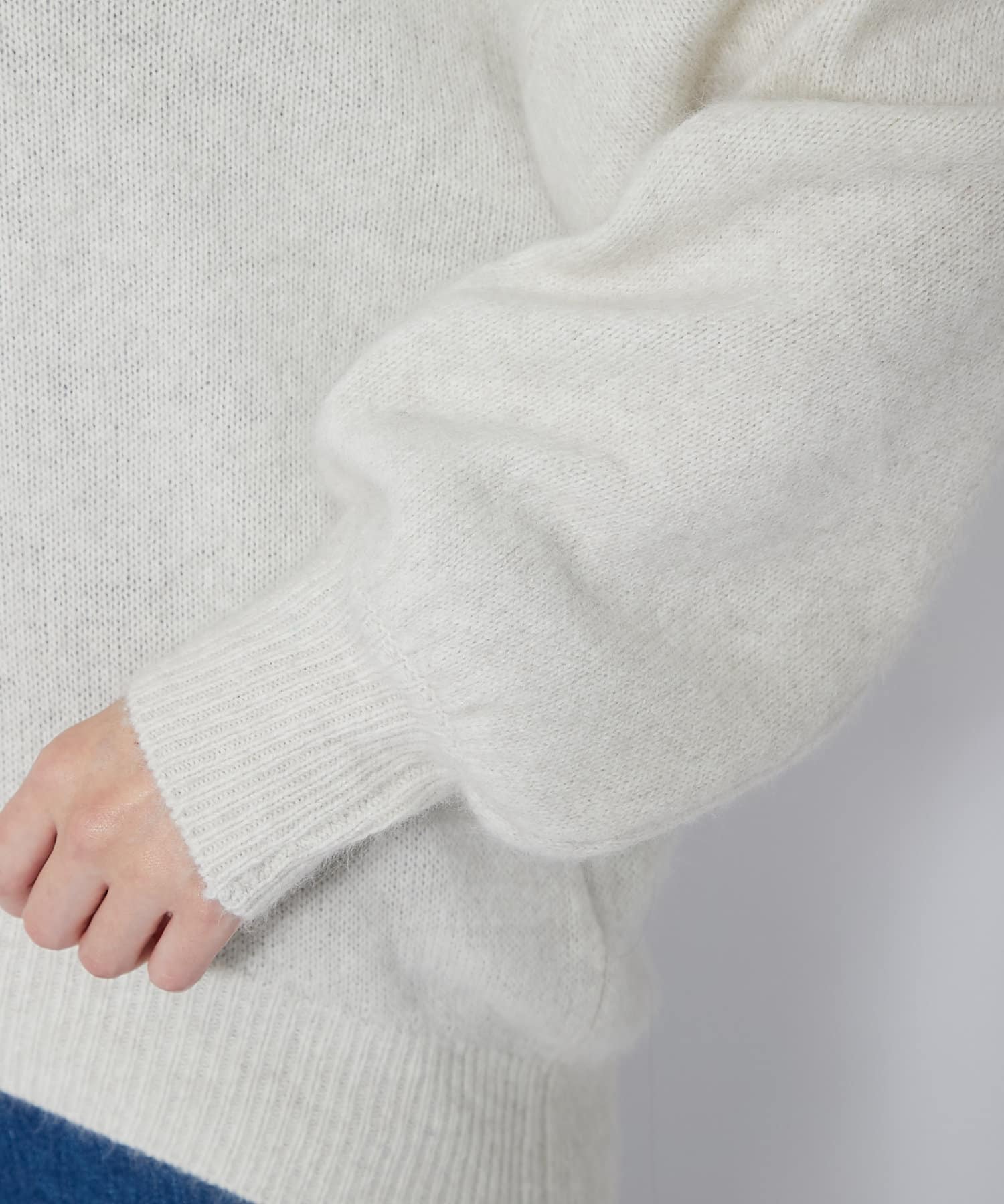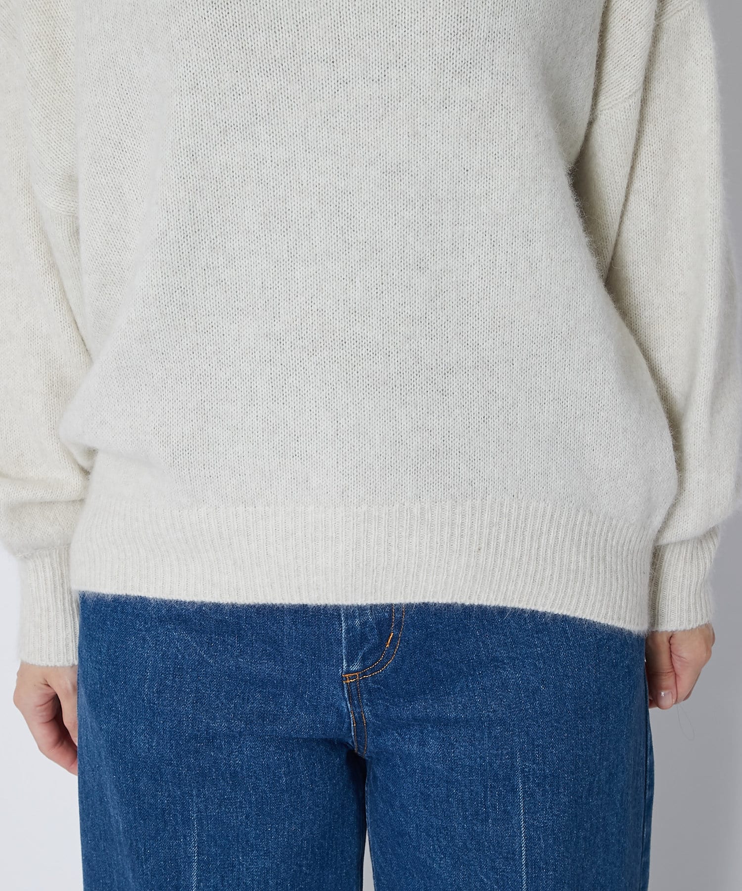 ネック部分はゆとりのあるオフタートルで、ルーズなフィット感。