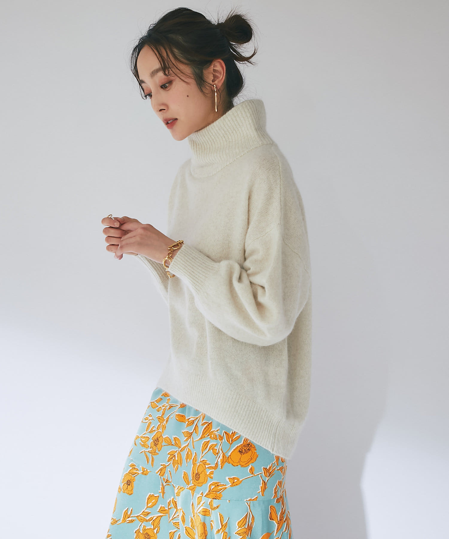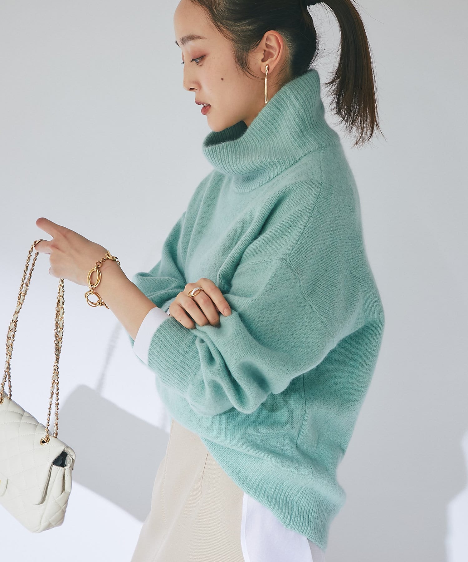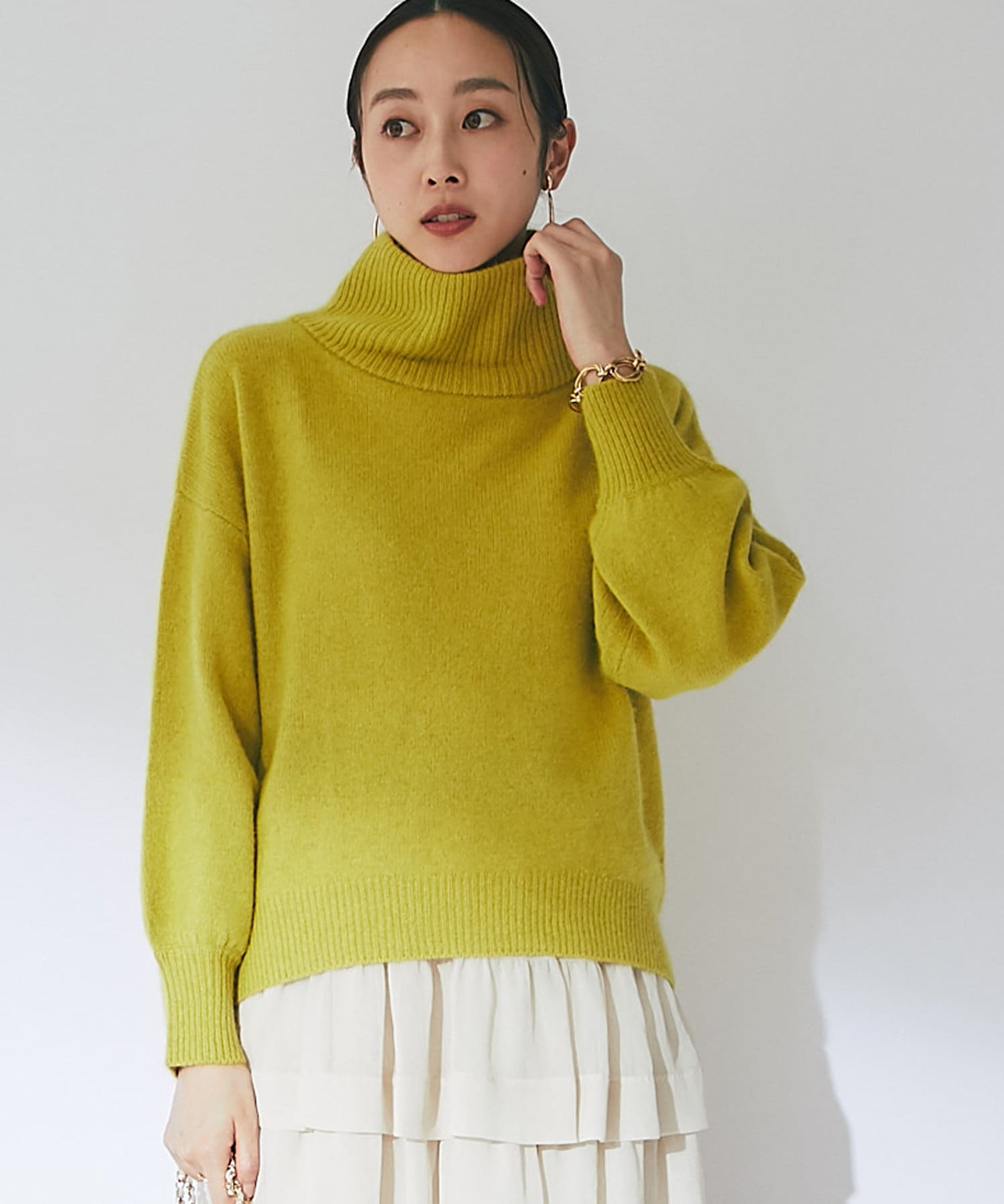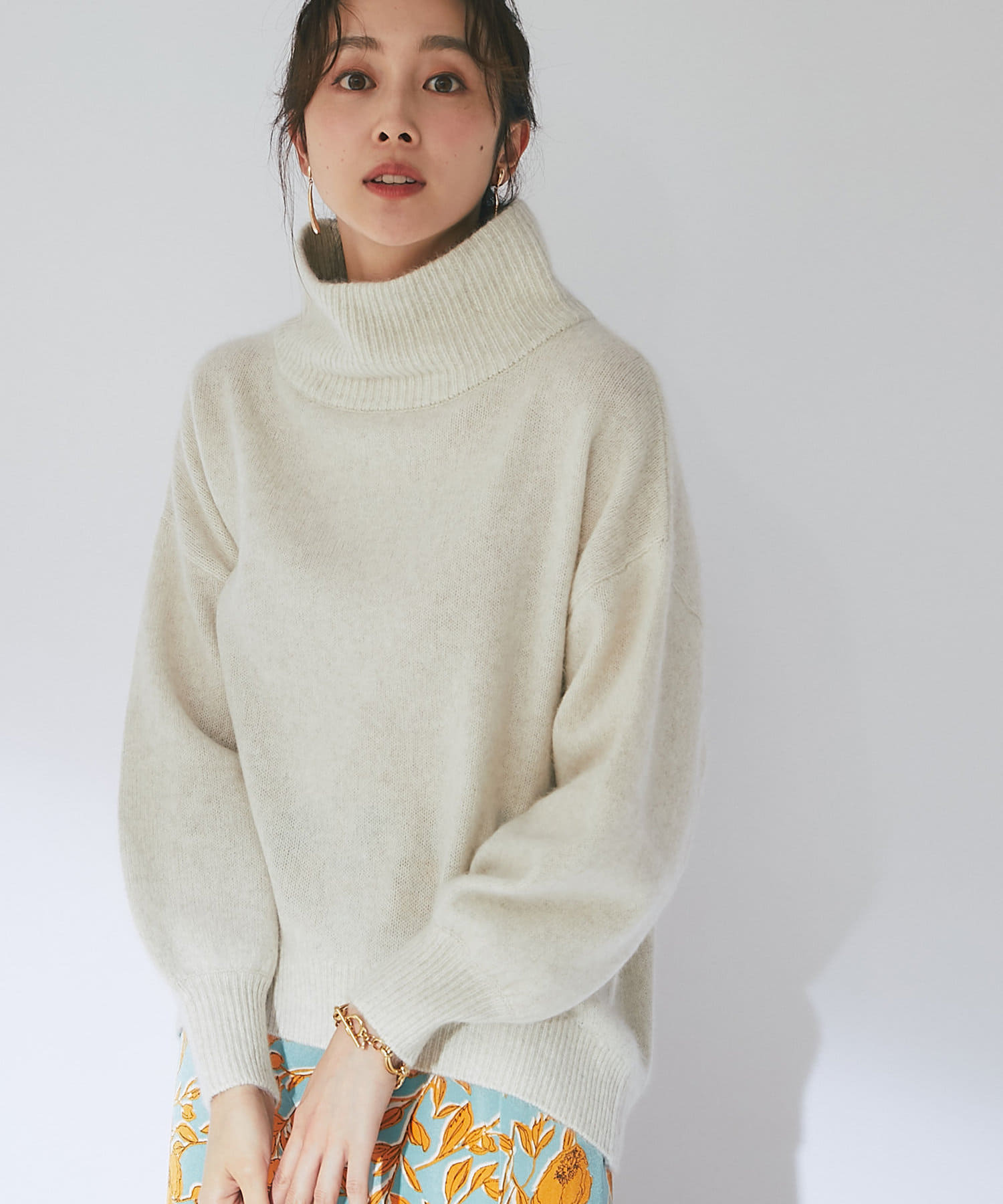 冬の景色に着映えるオフタートルニット