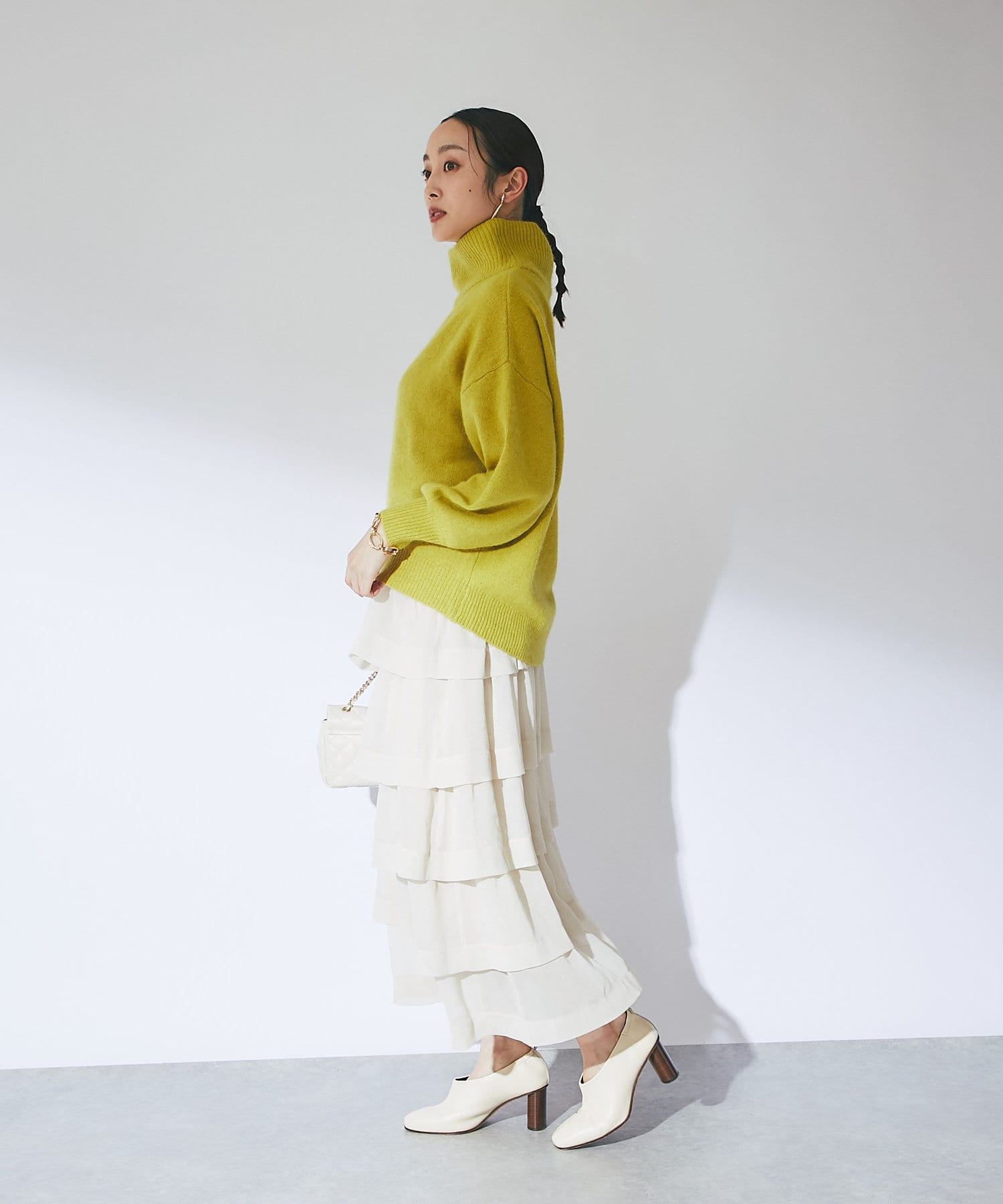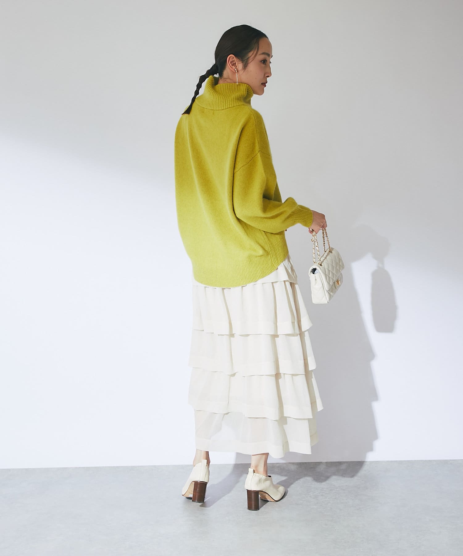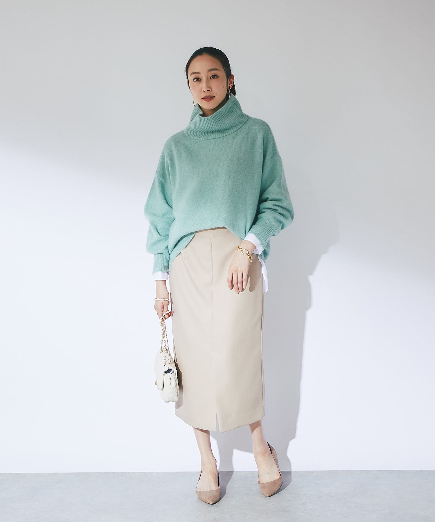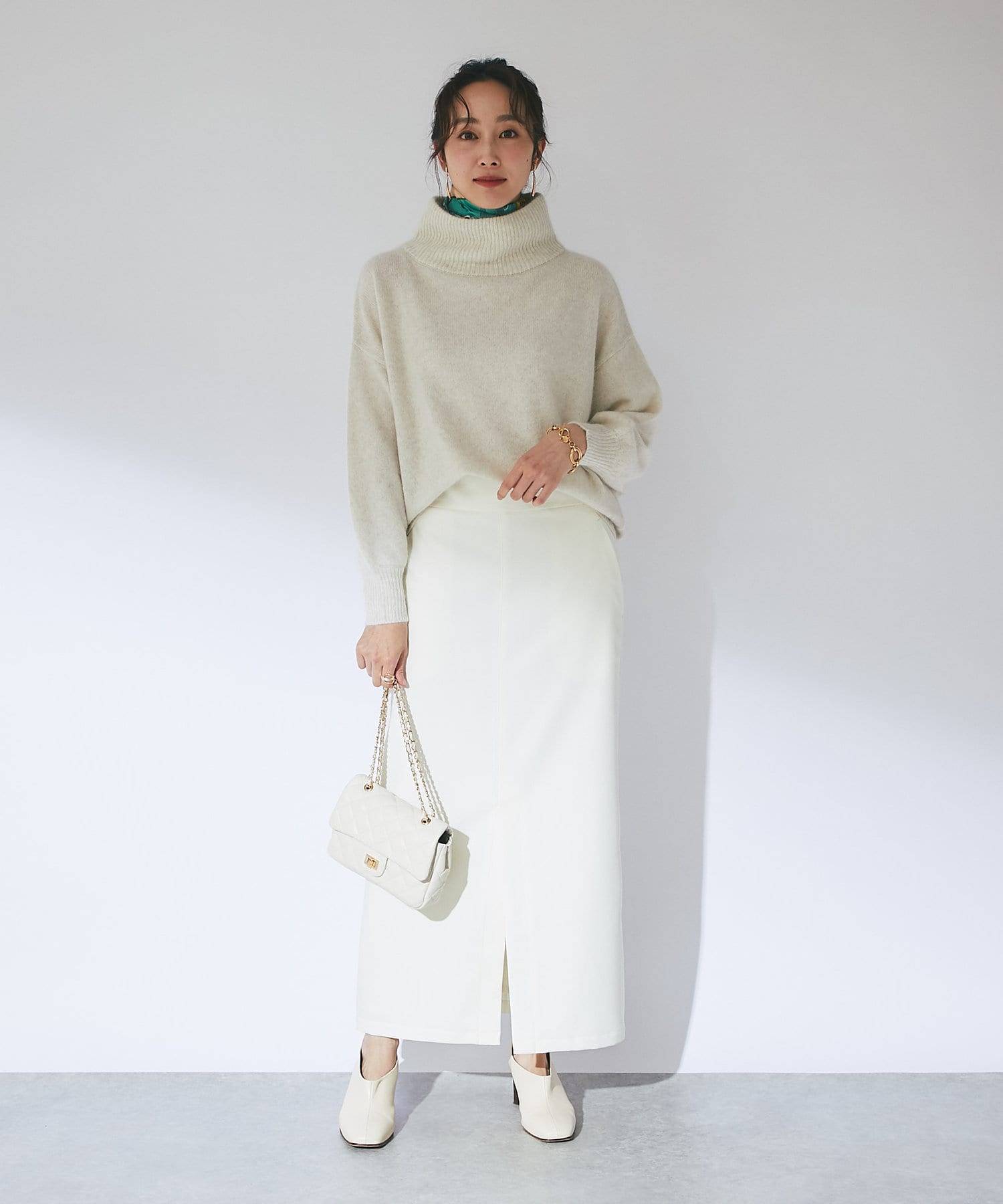 冬の景色に着映えるオフタートルニット