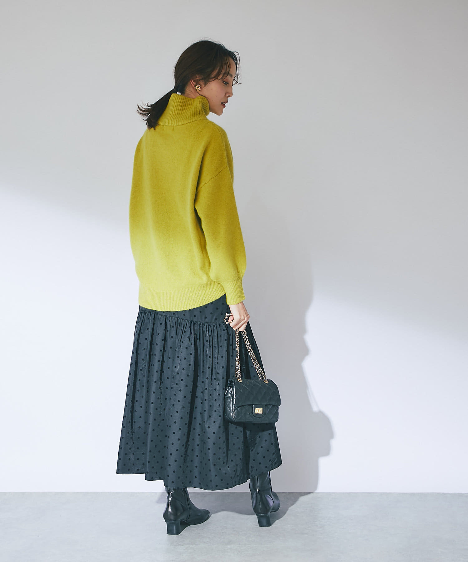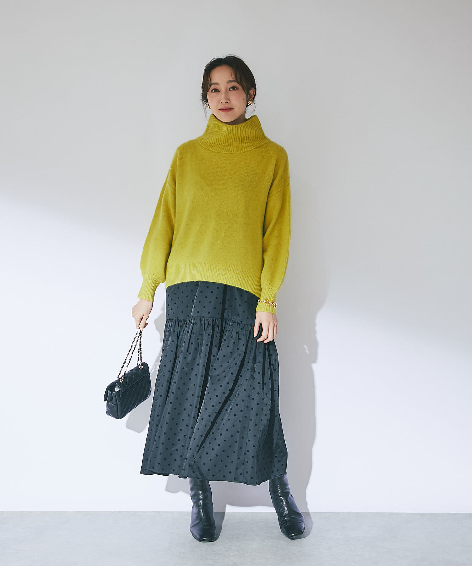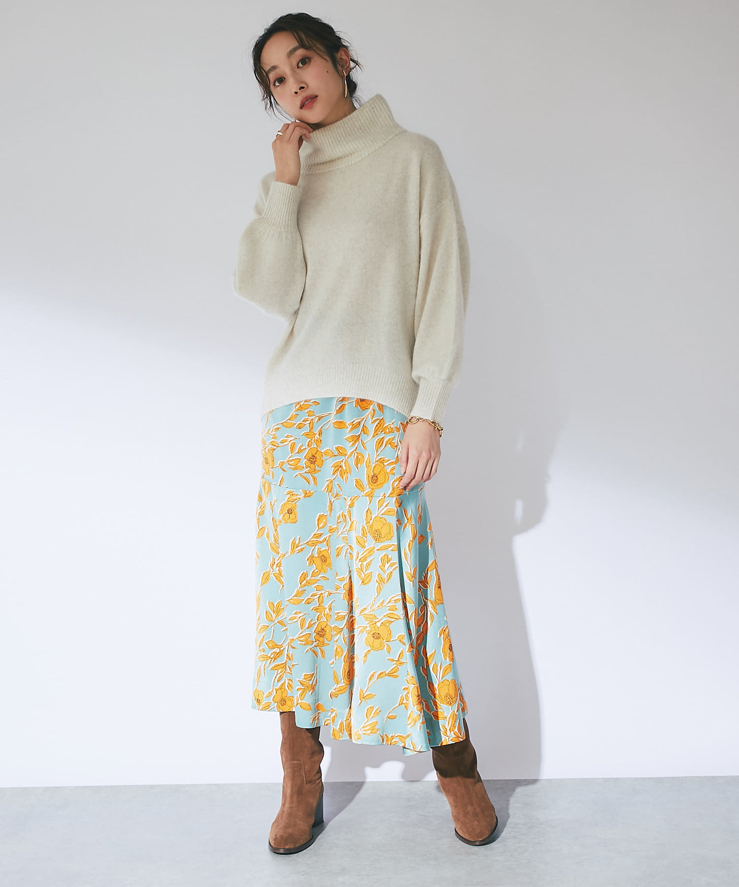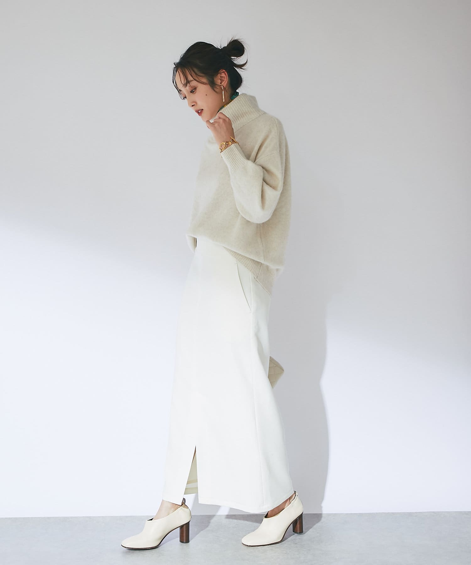 首元は高さのあるオフタートルでとてもあたたかい!