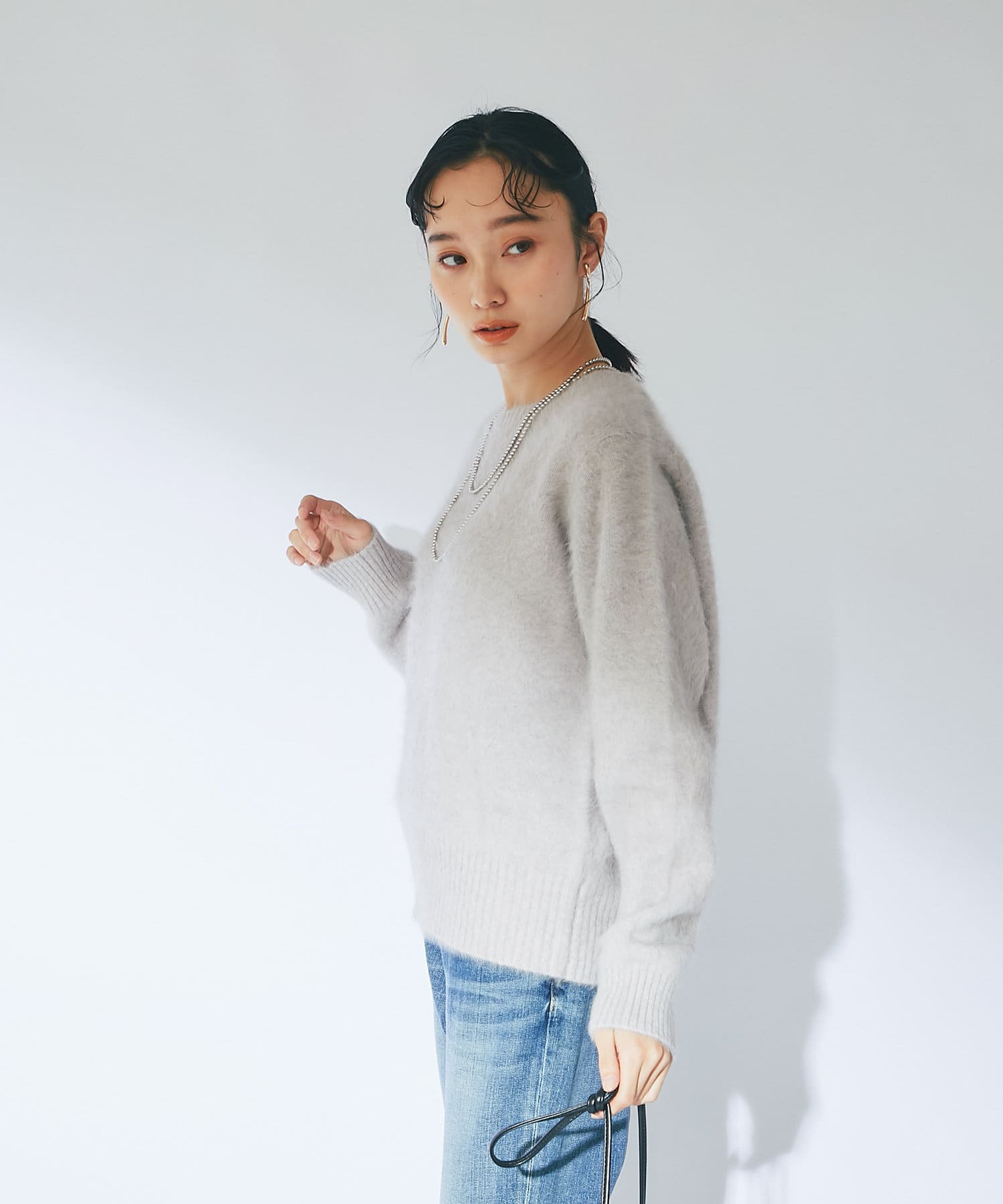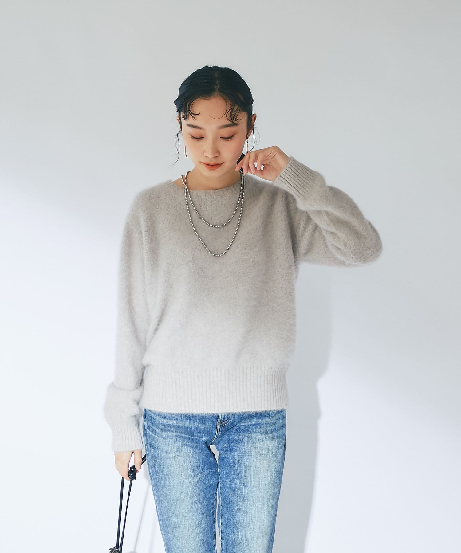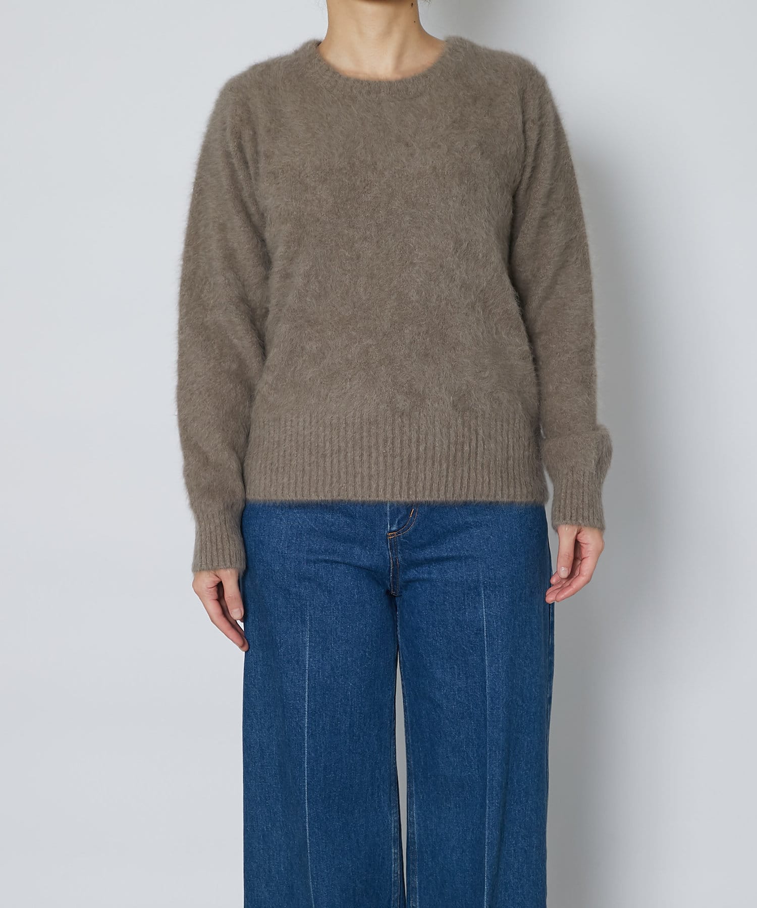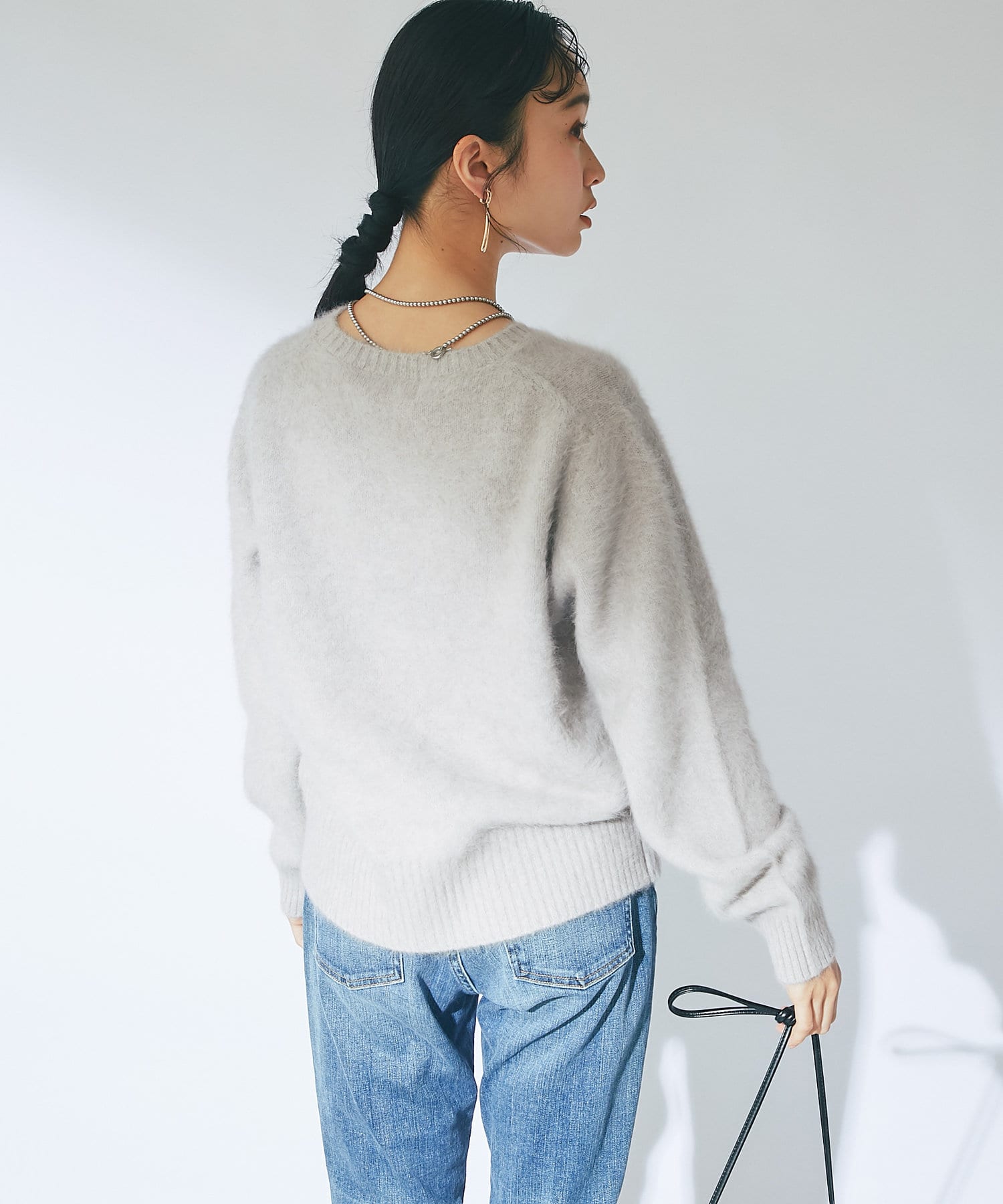 ふわふわとしたヘアリーなカシミヤ混フォックス素材で贅沢&シーズンムードたっぷりに仕上げたニット。