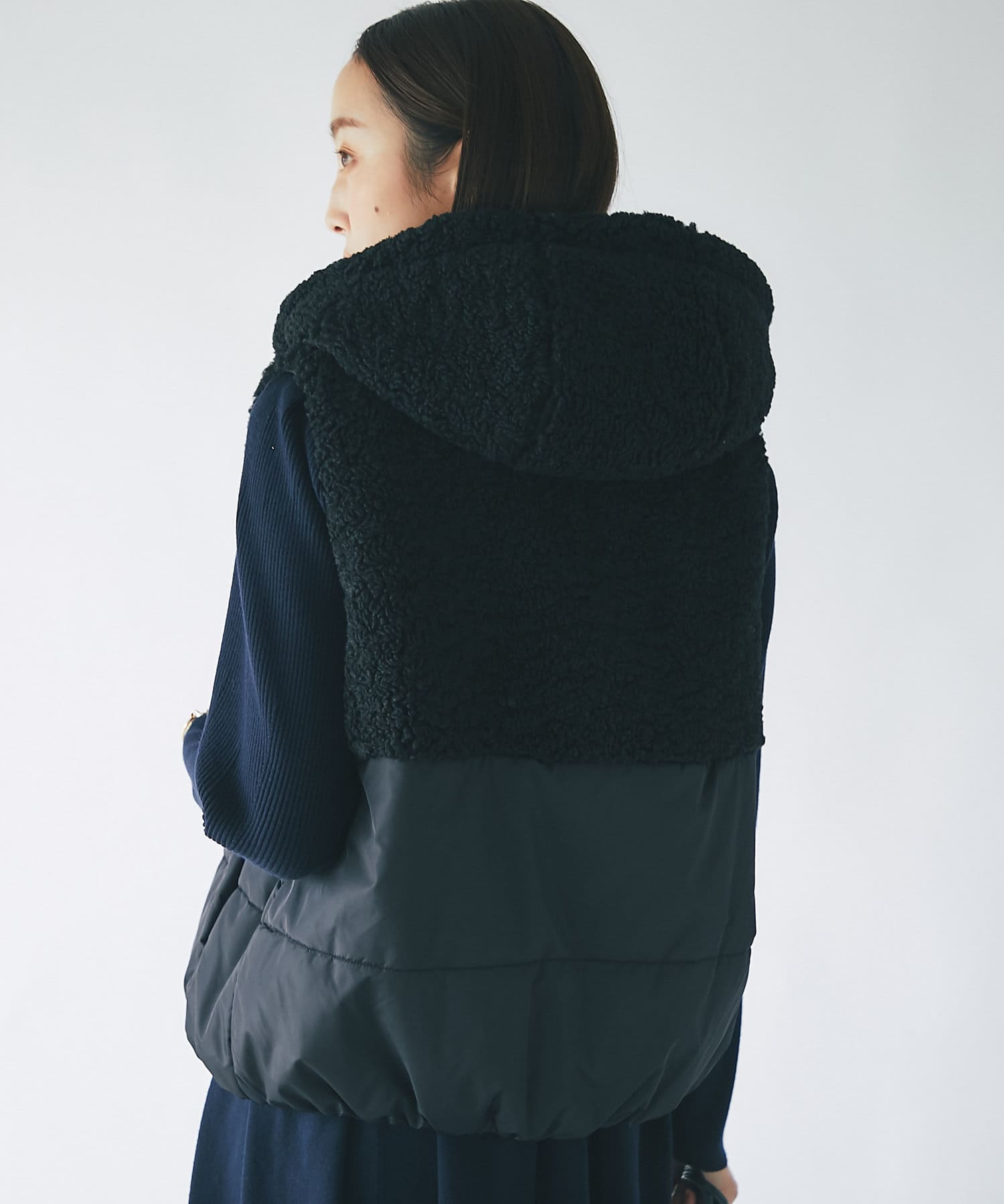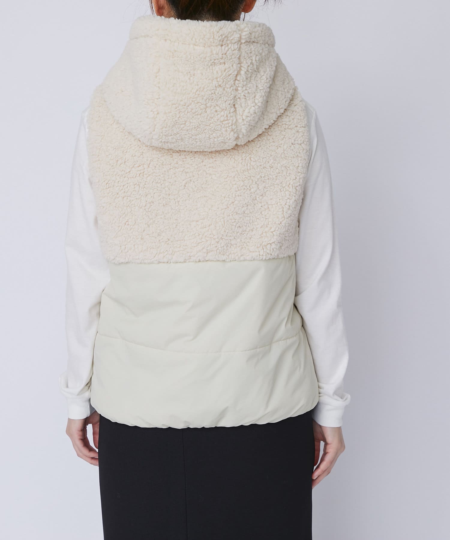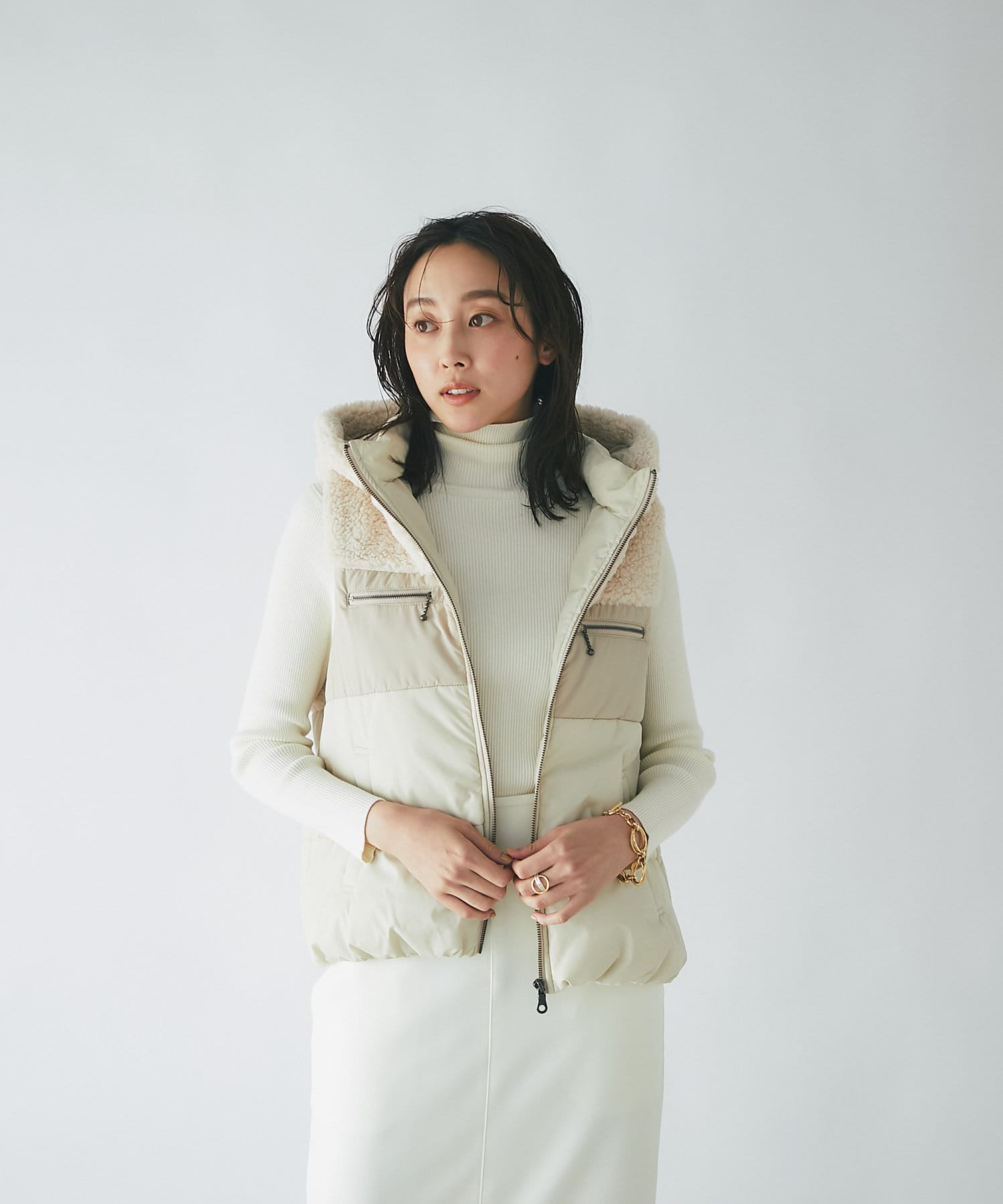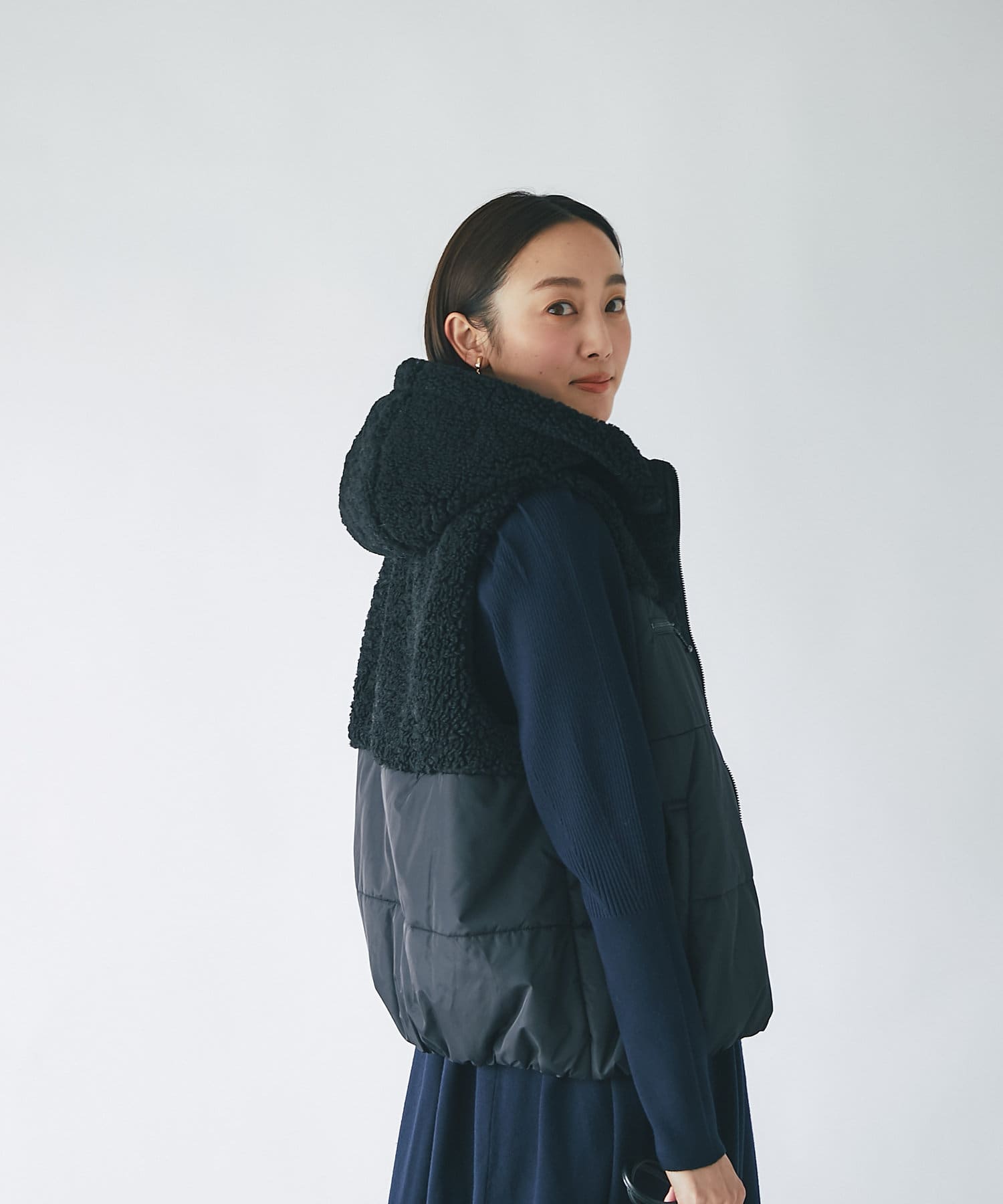 シーズン度たっぷりに仕上げたボアコンビベスト。
