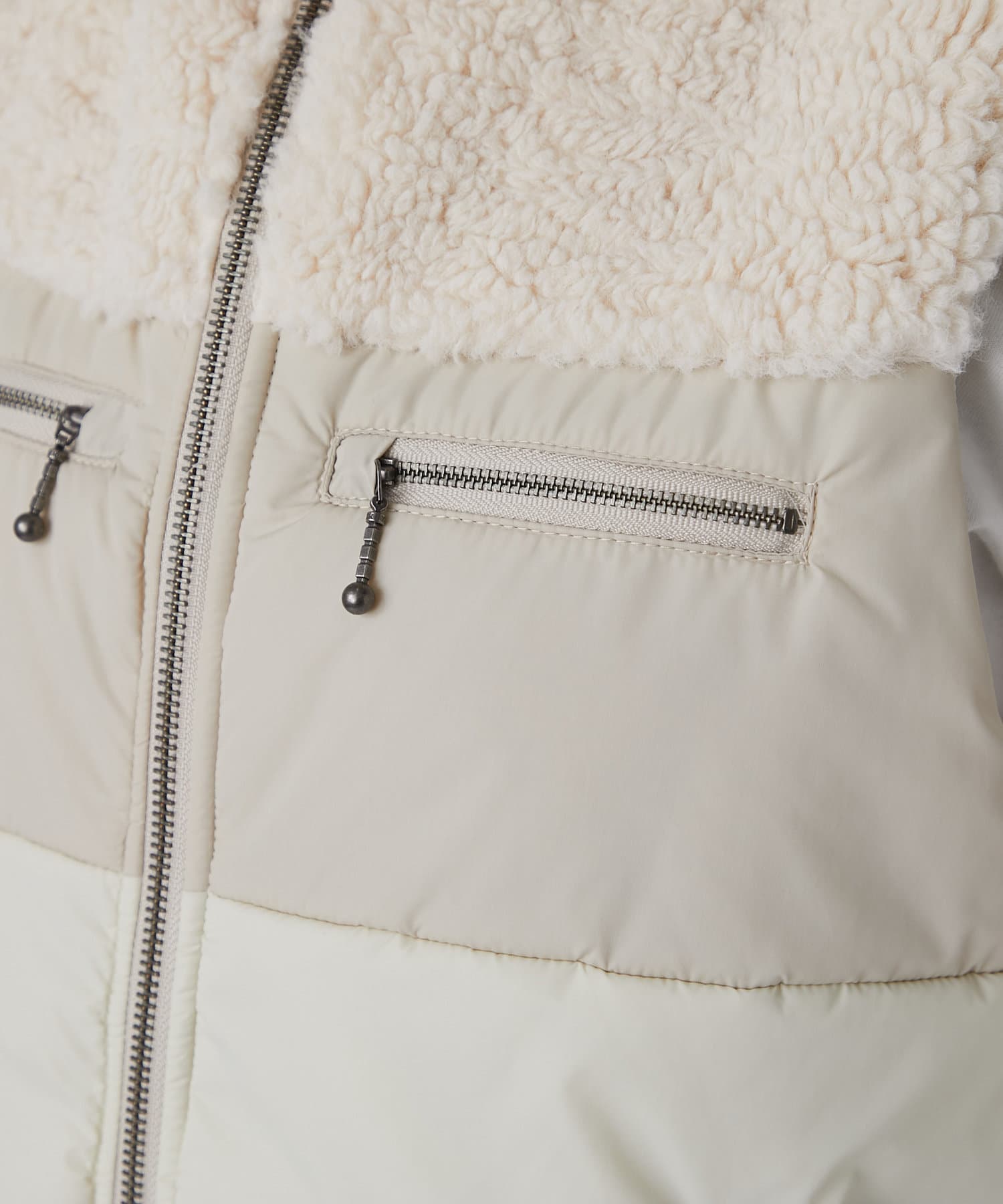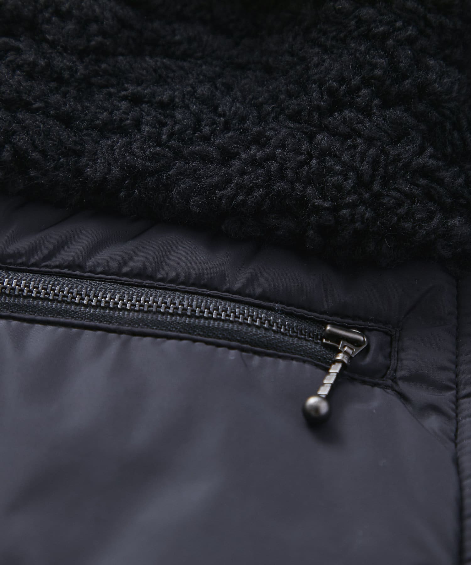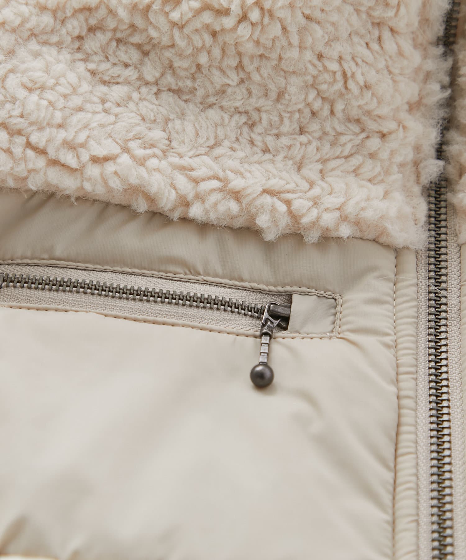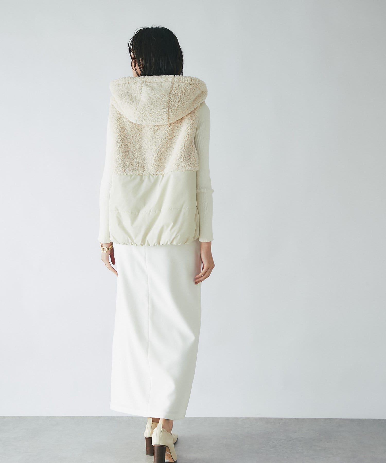 シーズン度たっぷりに仕上げたボアコンビベスト。