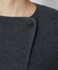ノーカラーで首元に釦があるので、前を軽く閉めて頂くことも可能。