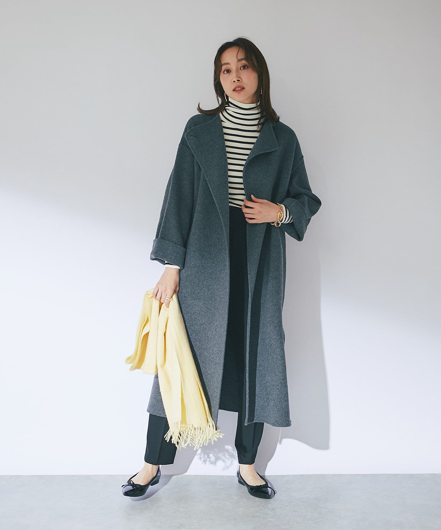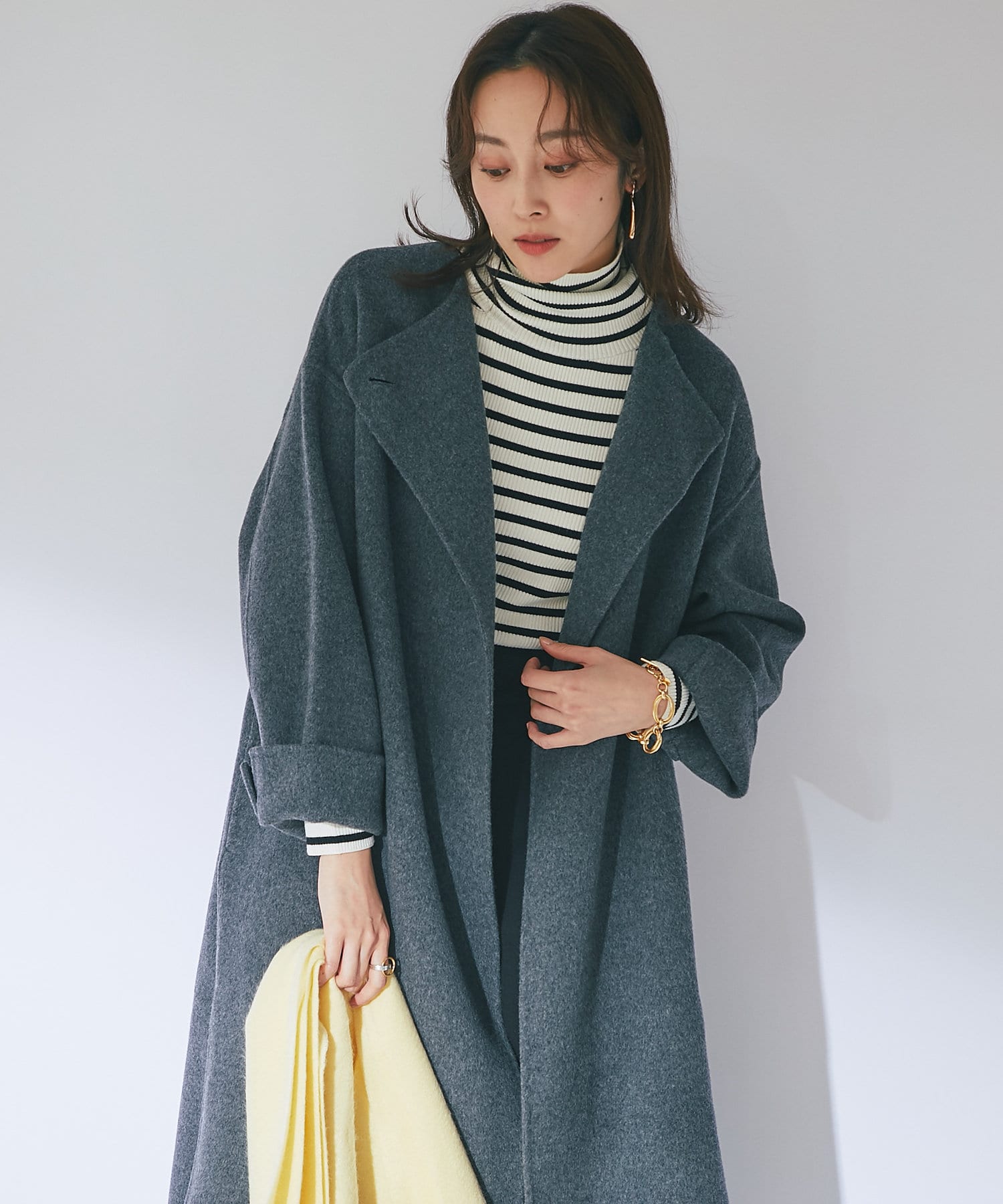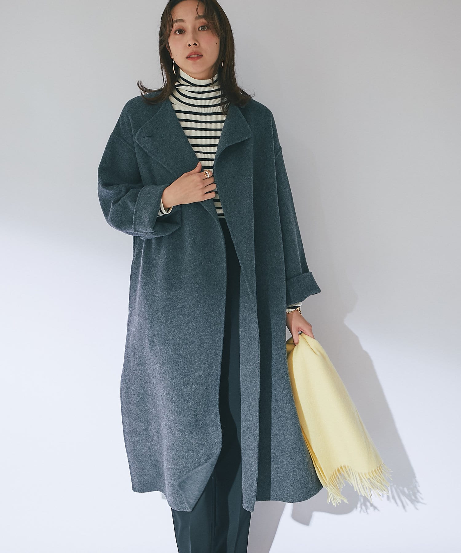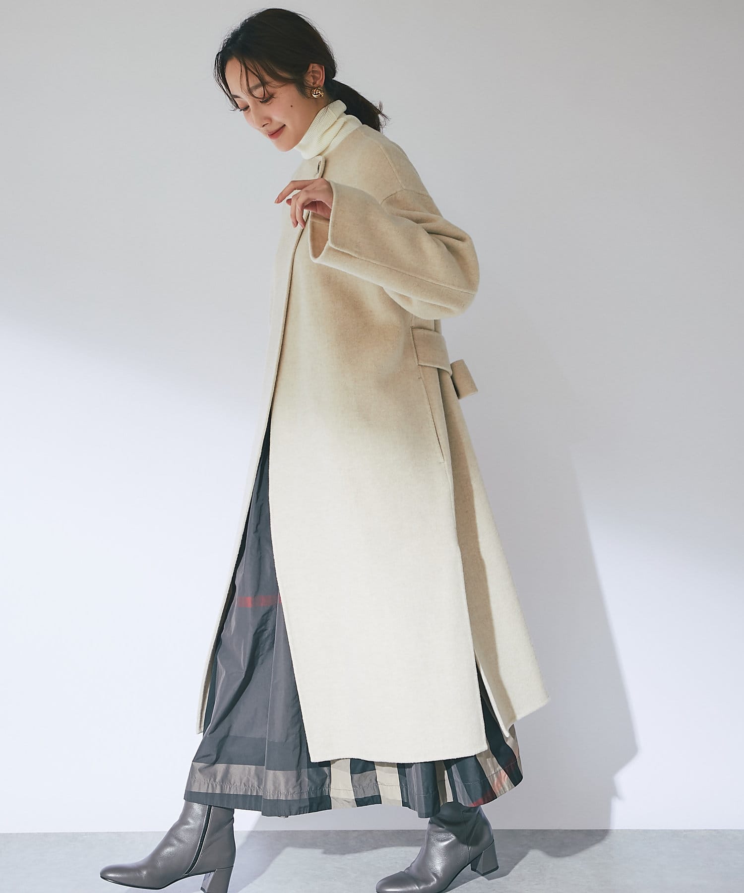 ロング丈のビーバーコートはウエストのベルトでスタイリングにメリハリを出せます◎