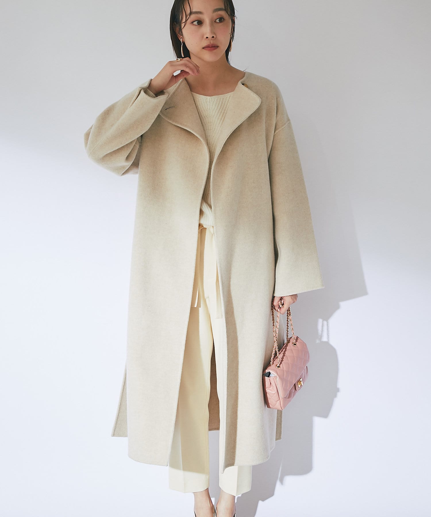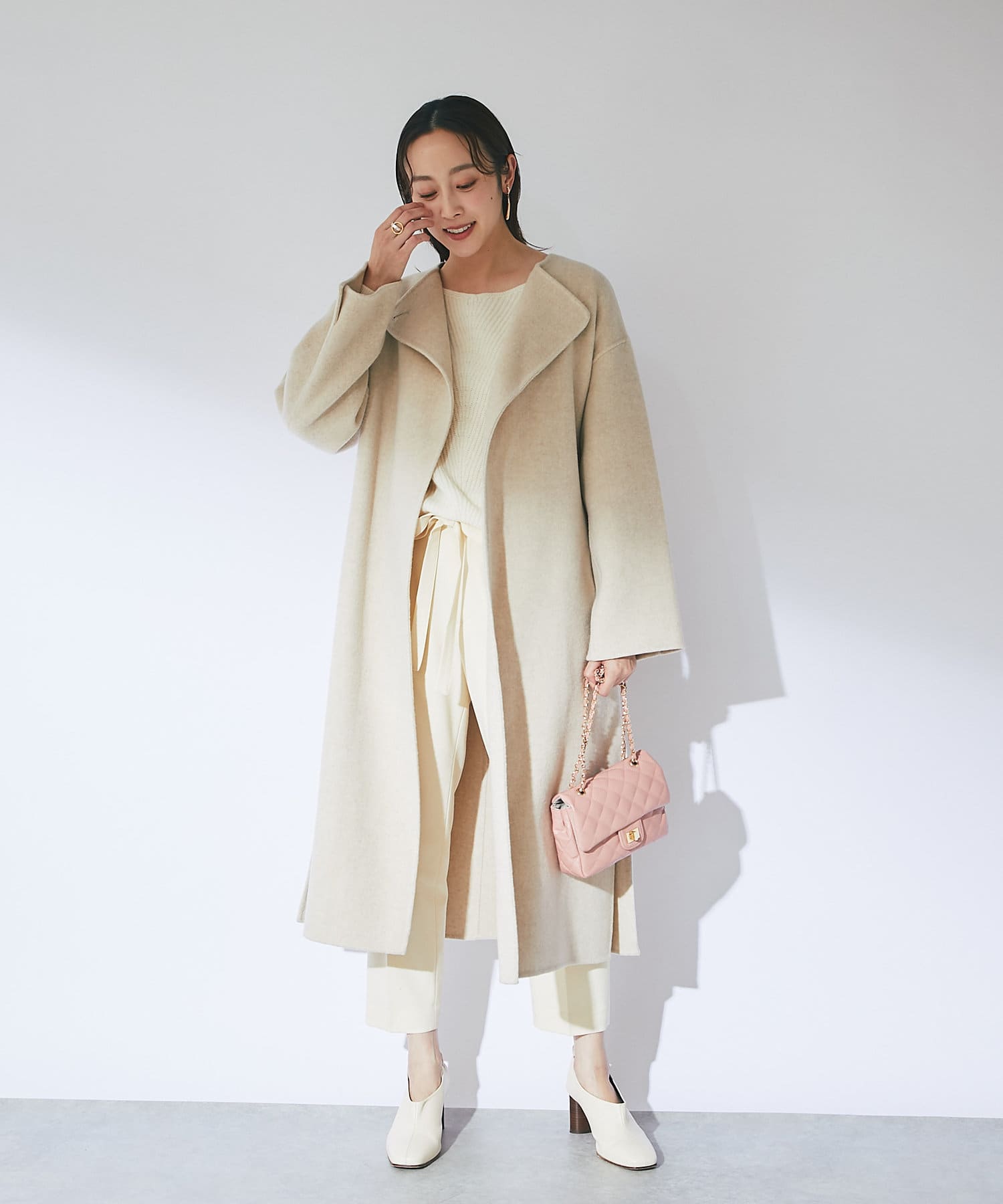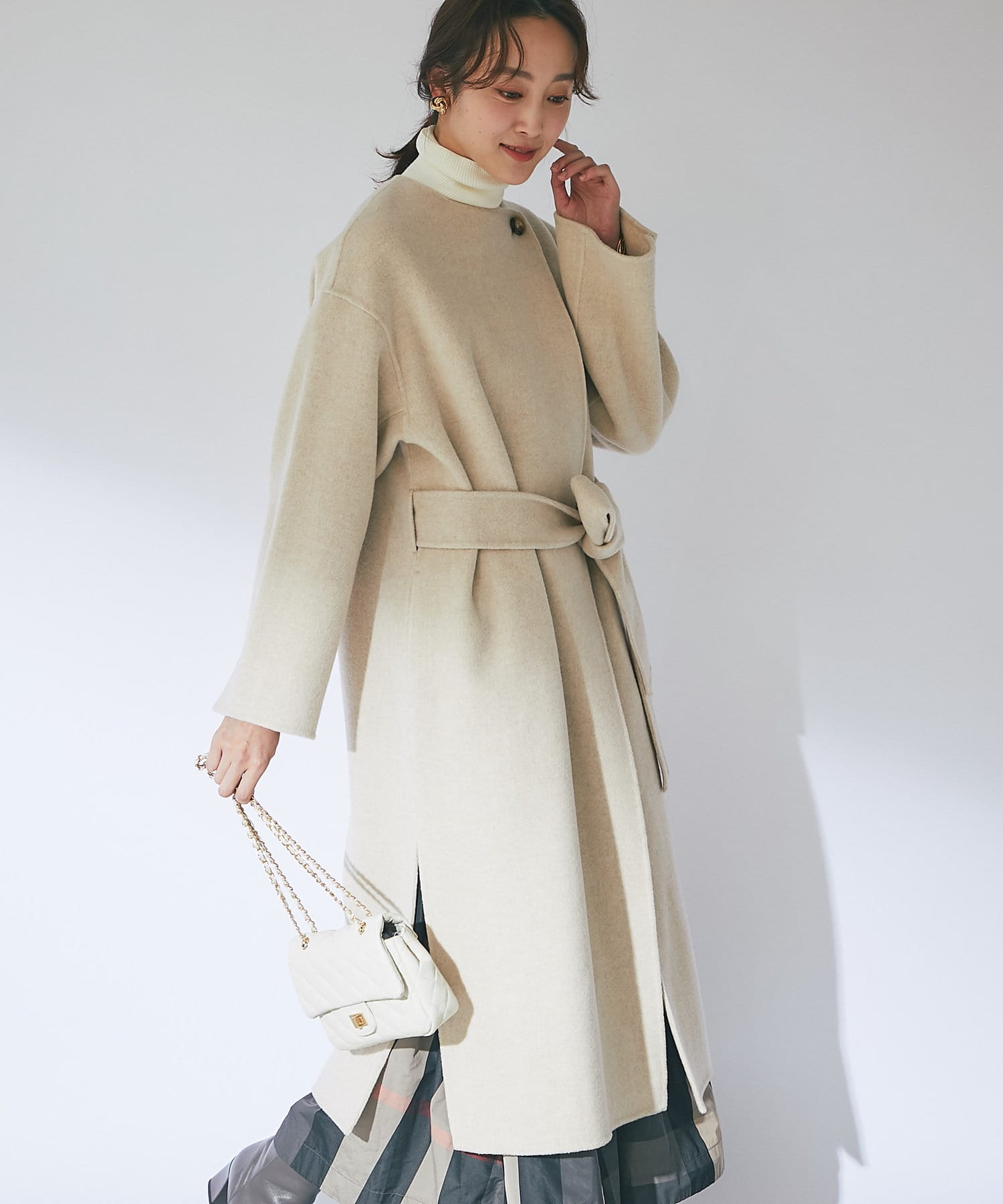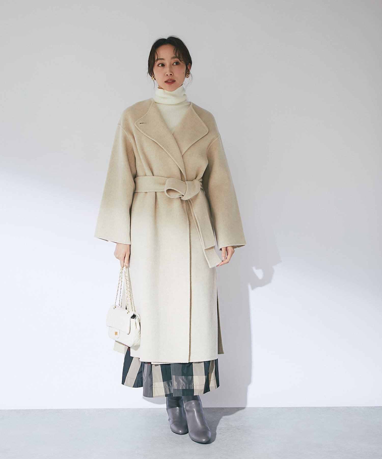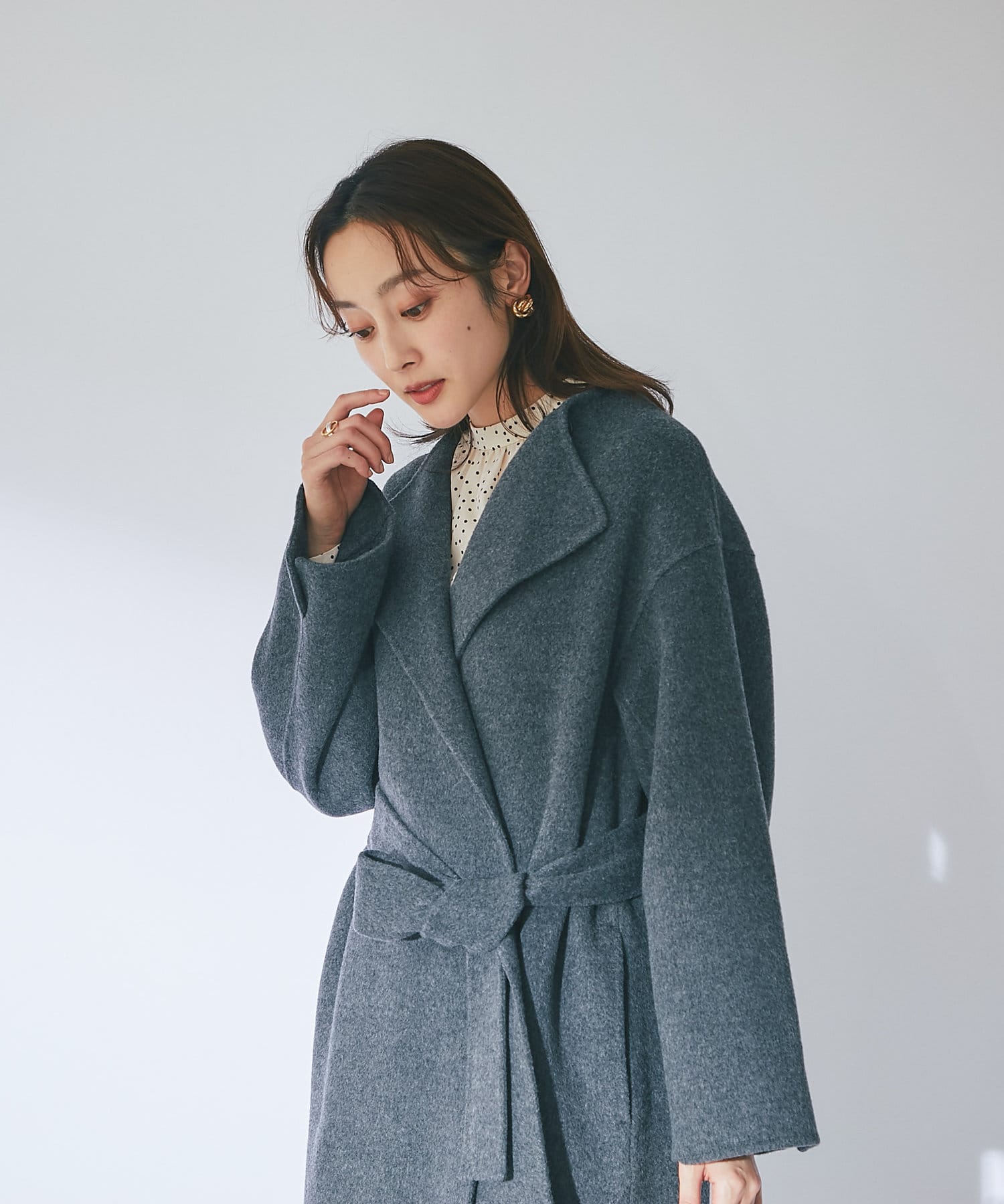 ロング丈のビーバーコートはウエストのベルトでスタイリングにメリハリを出せます◎