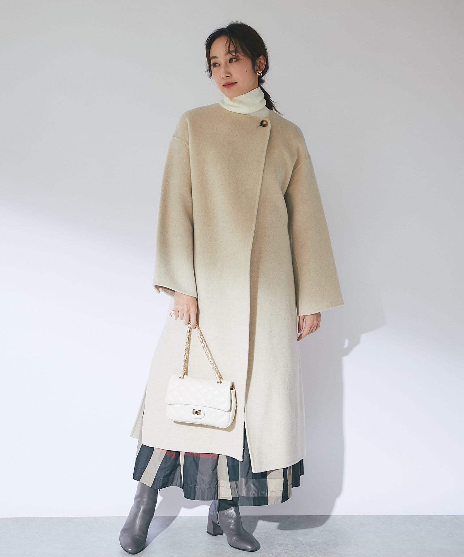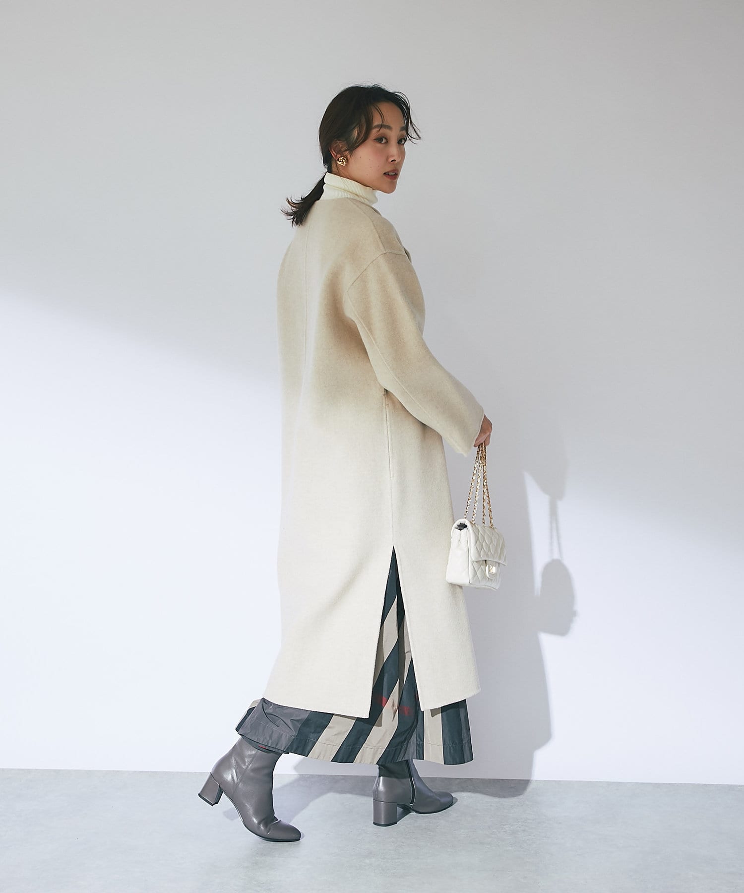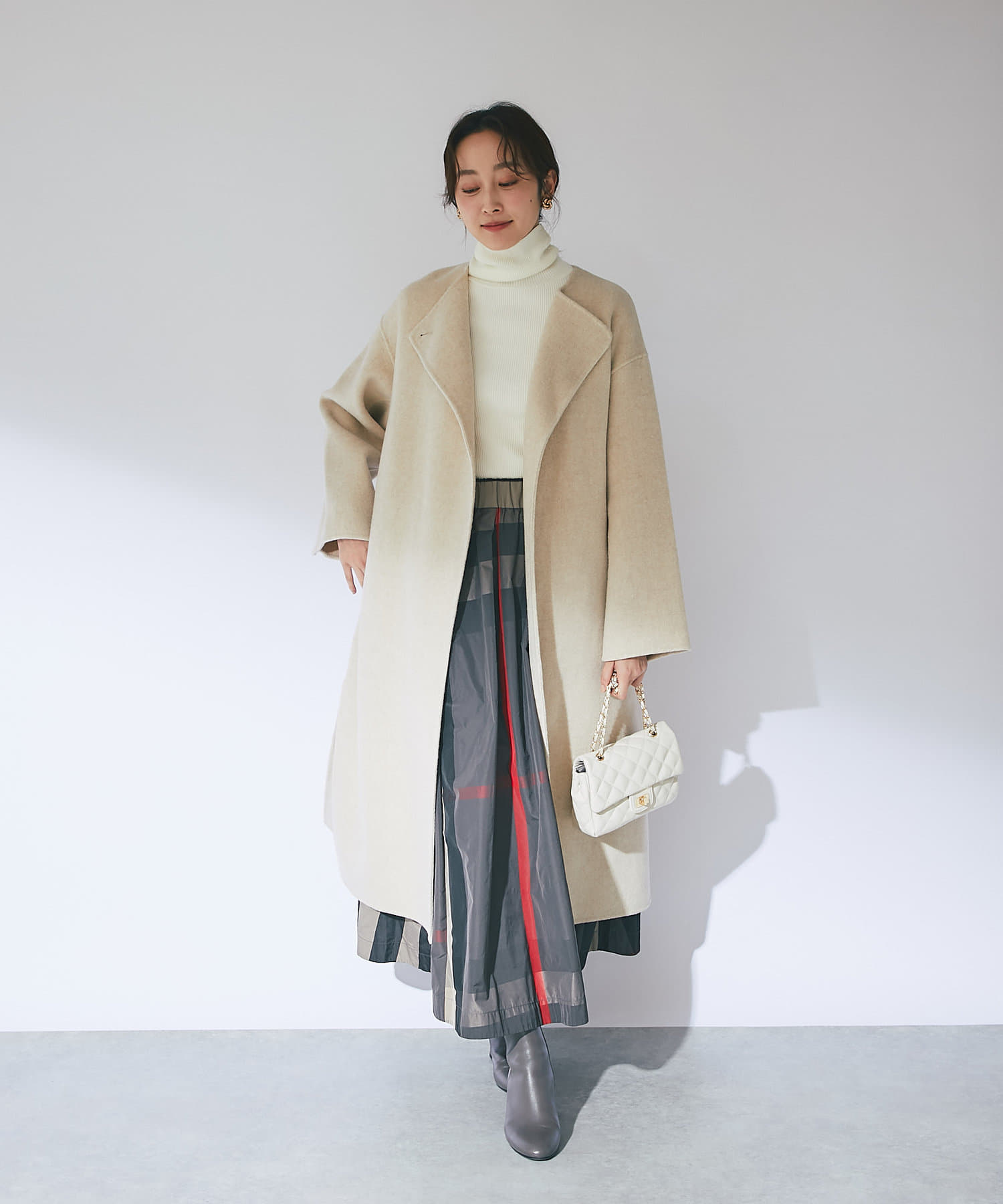 今シーズンも注目の表地一枚仕立てのロングコート。