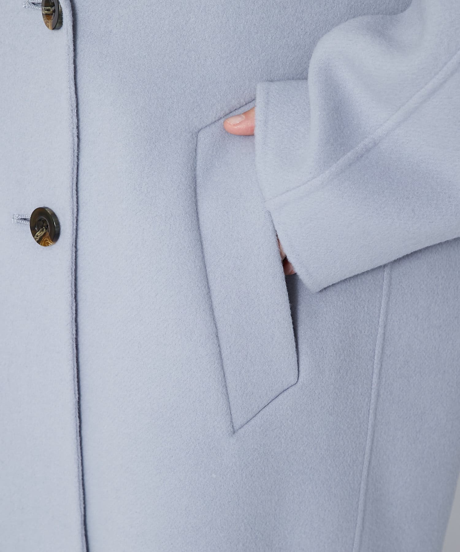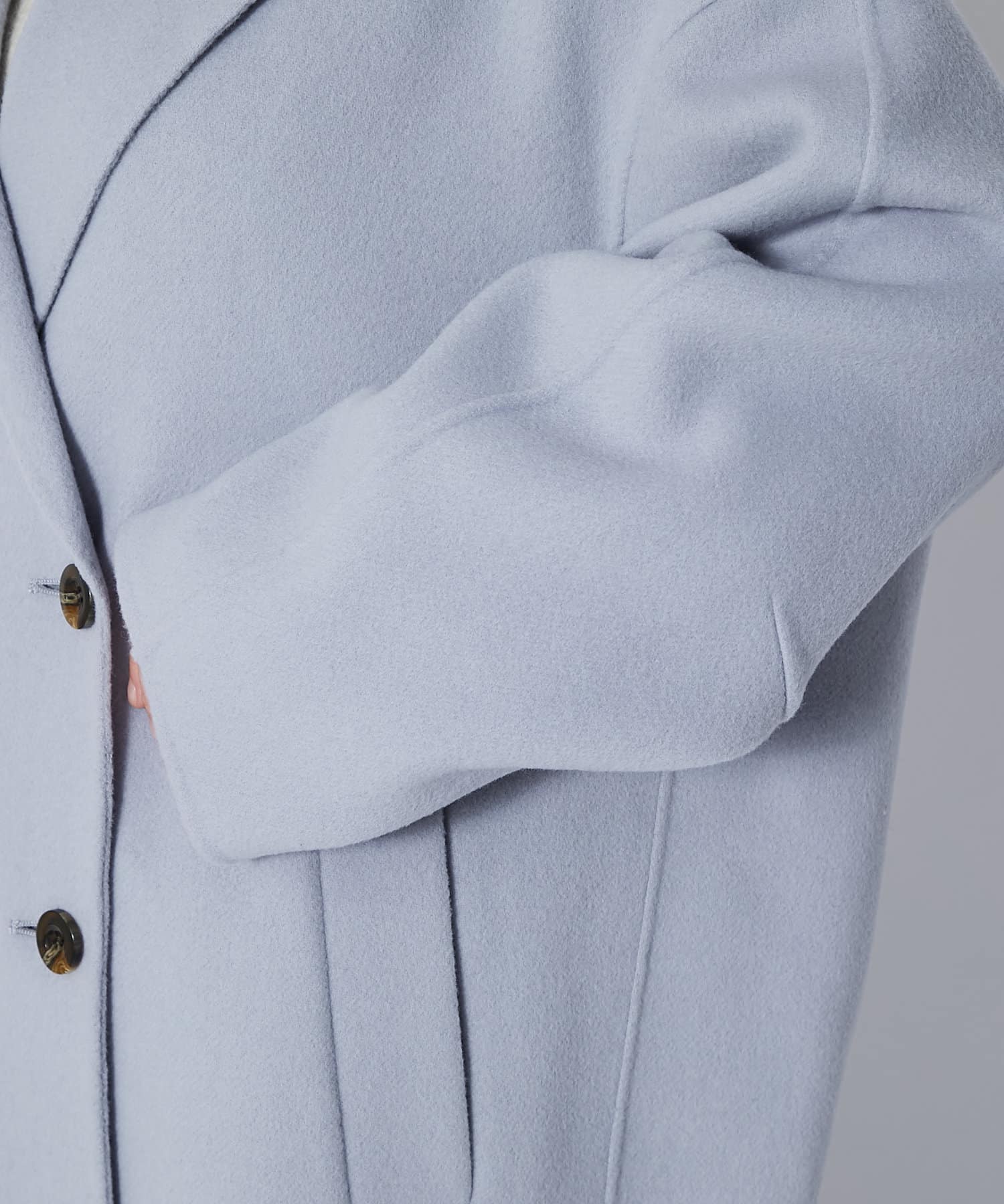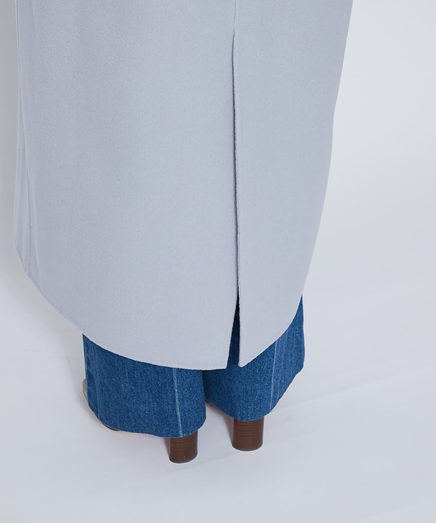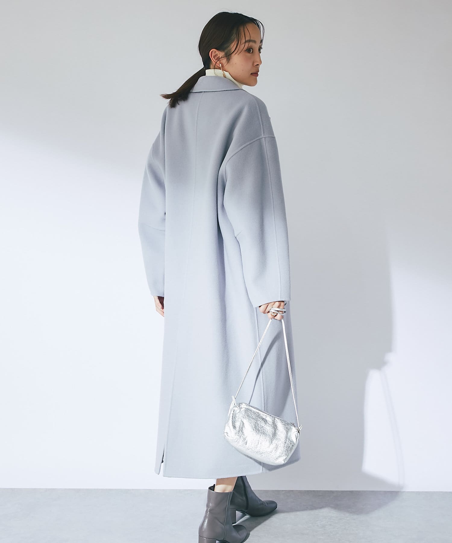シンプルで形の綺麗なロングコートは、お仕事やプライベートどちらのスタイリングにも合わせやすくオンオフ兼用でお使いいただけます。