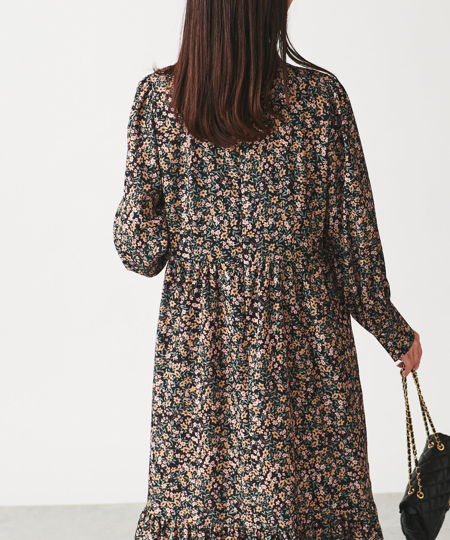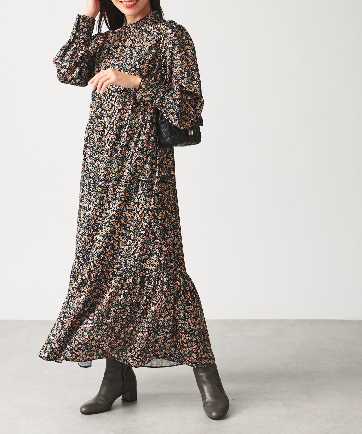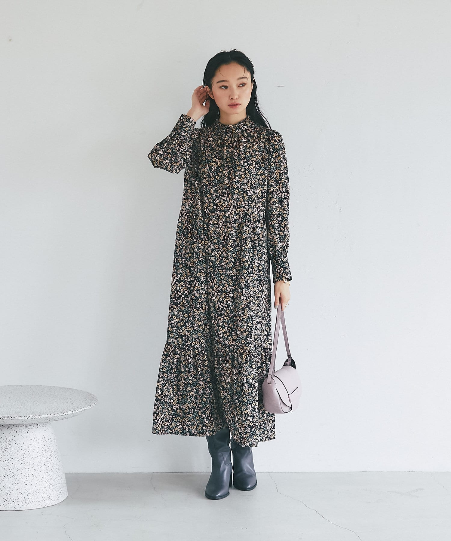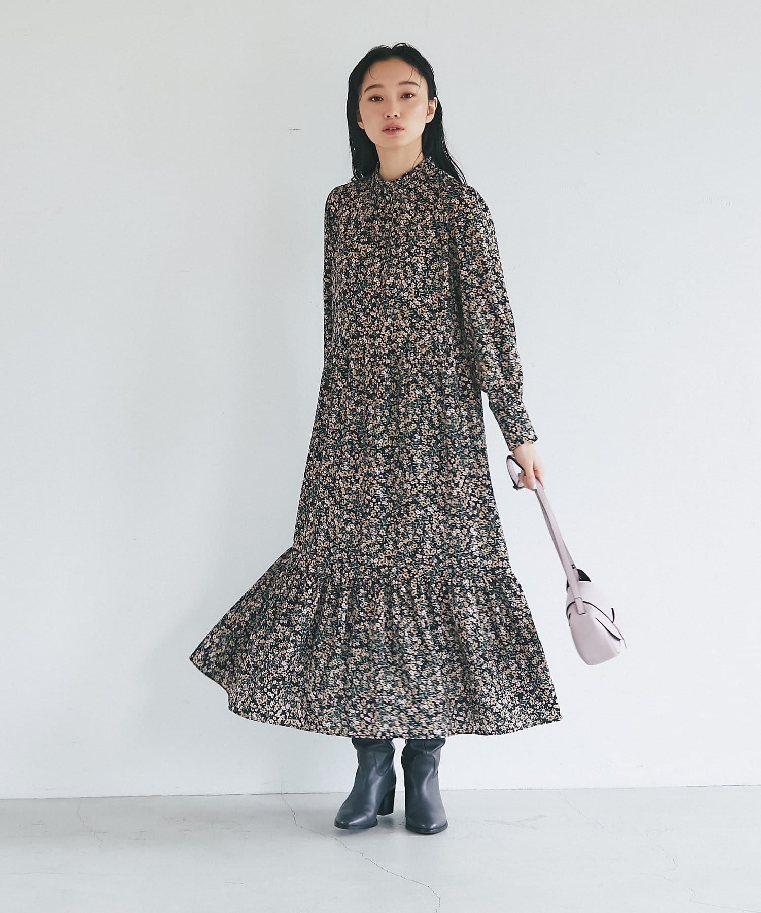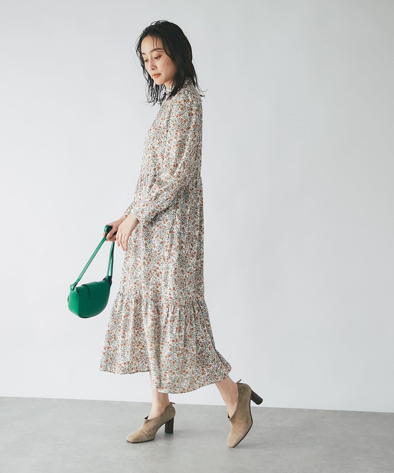 #大人カジュアル #きれいめカジュアル #上品カジュアル #フラワープリント #小花柄 #ワンピース #ティアード #ロング丈