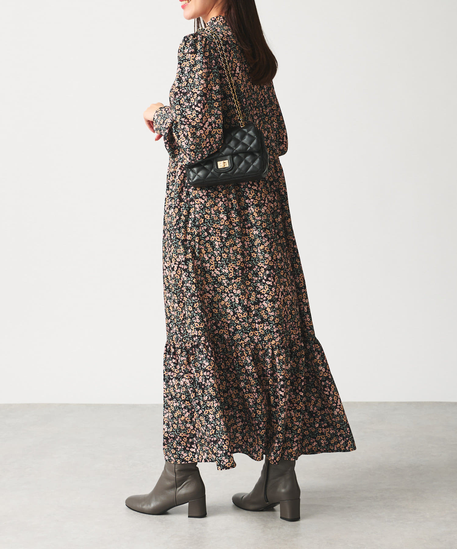 【女性らしさ溢れる】小花プリントティアードマキシワンピース