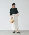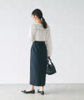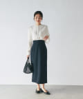 バイカラーのメローが縦のラインを強調する華奢見えナロースカート