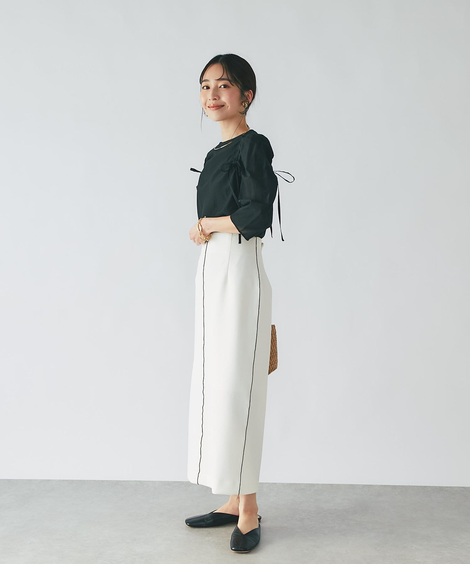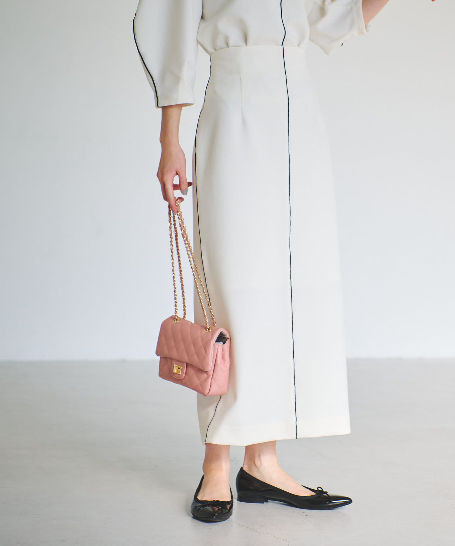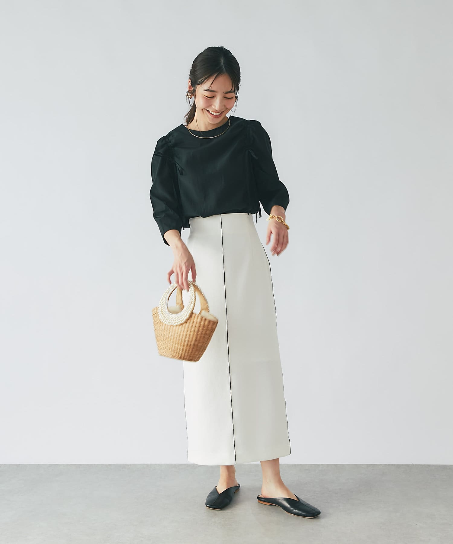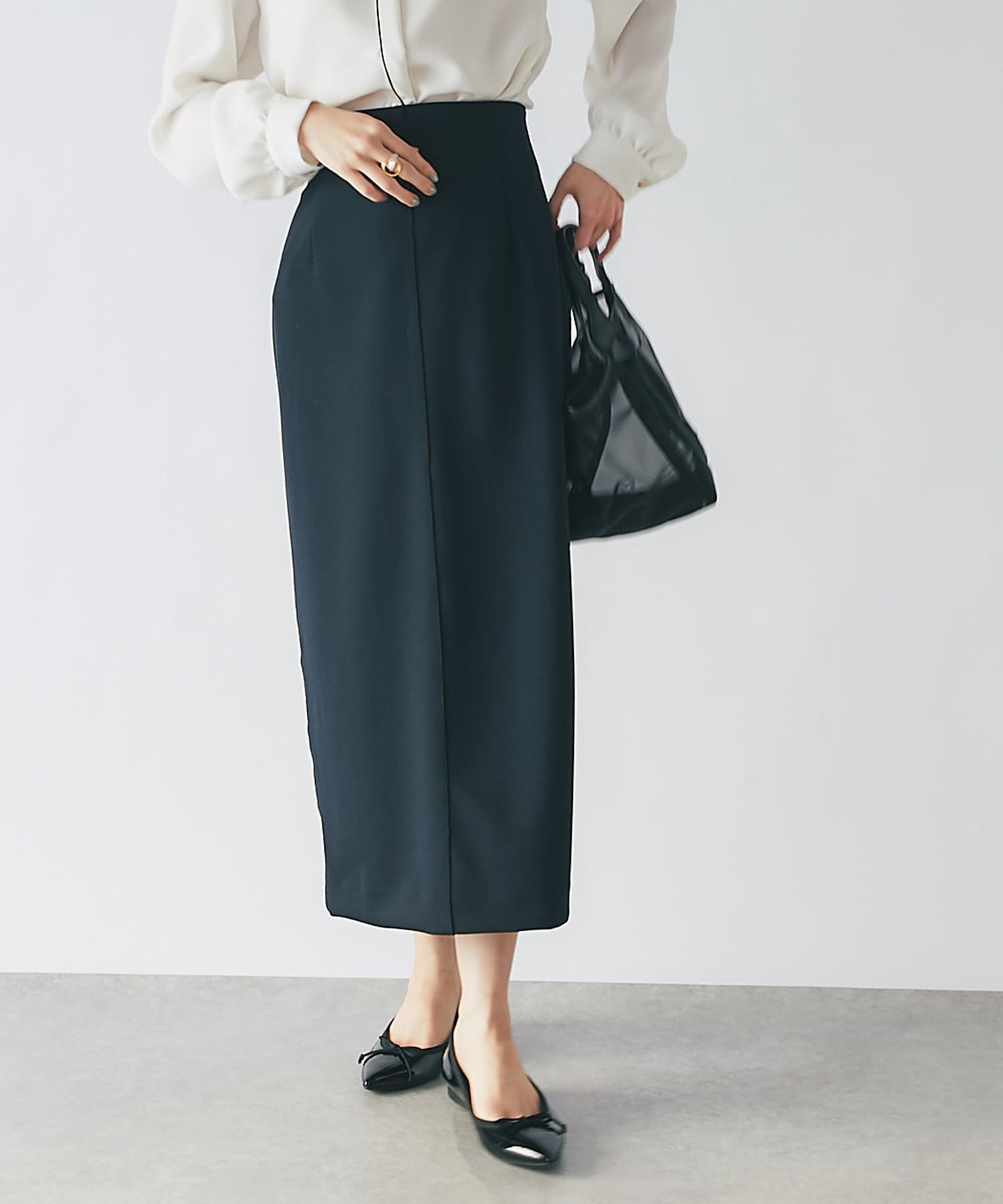 配色ステッチがポイントのシーズンレスなナロースカート。
