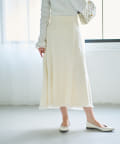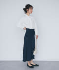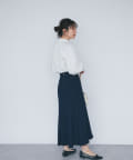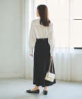 ハイウエストで腰回りはすっきりとしたシルエットなので、脚長効果にも期待できる一枚。