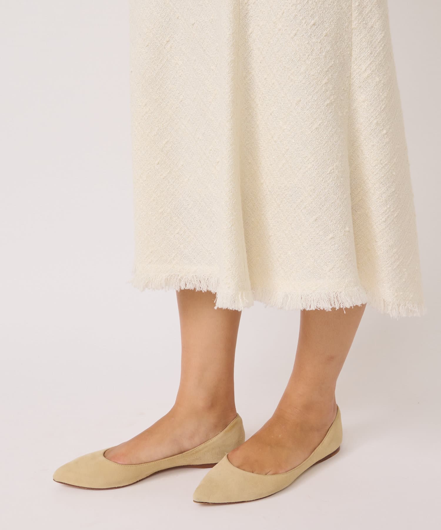 裾はフリンジを施し、後ろが長いバックテールライン。歩くたびに揺れる女性らしいシルエットです。