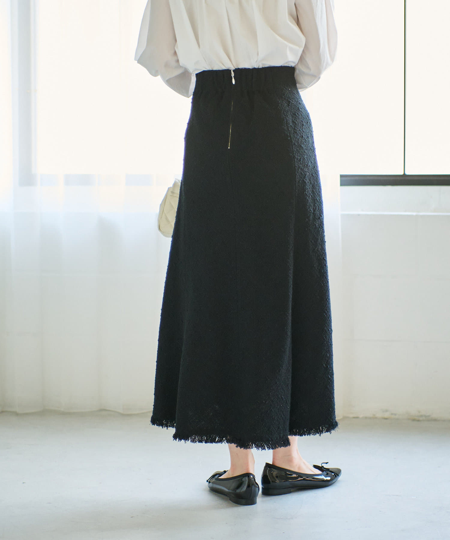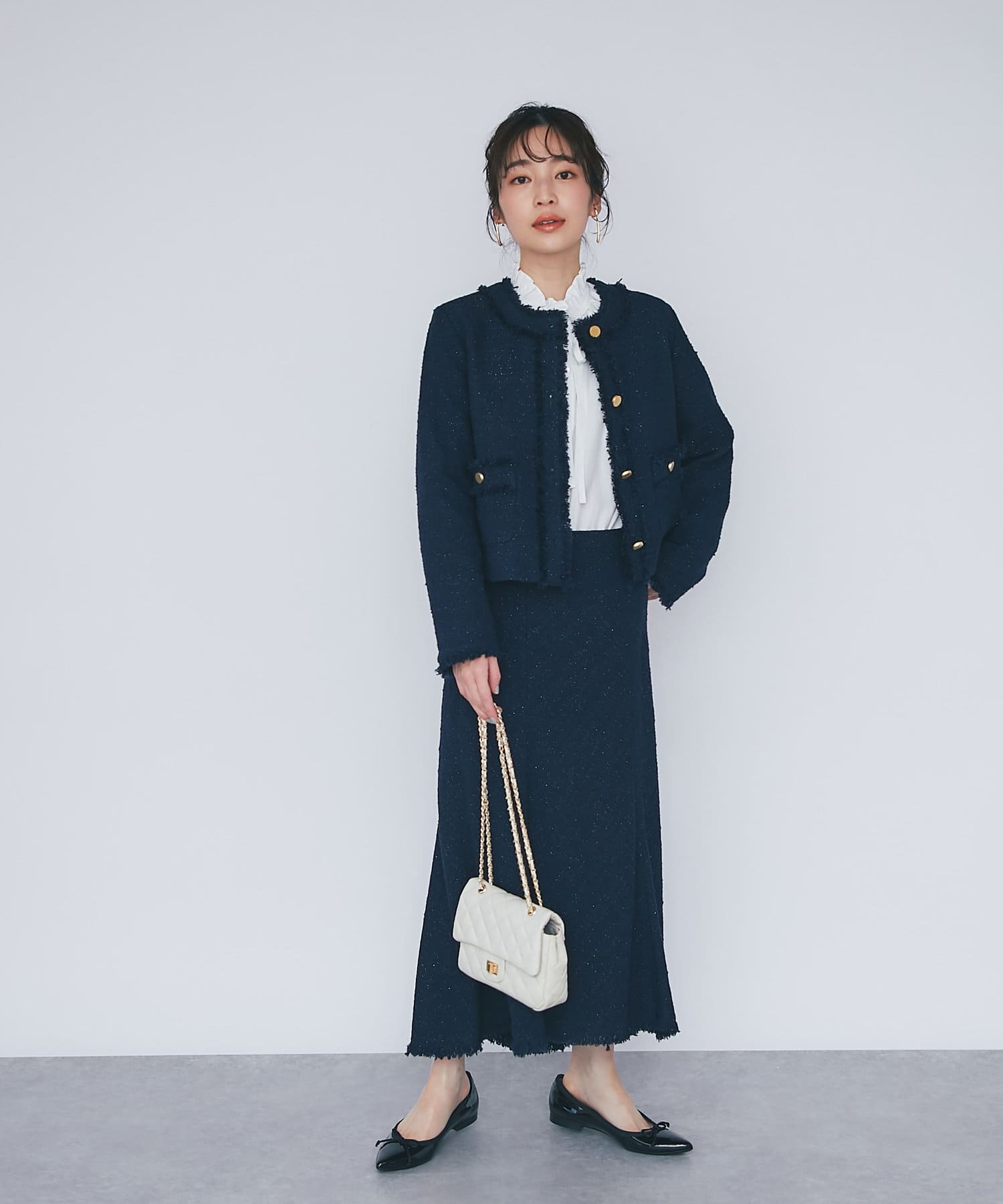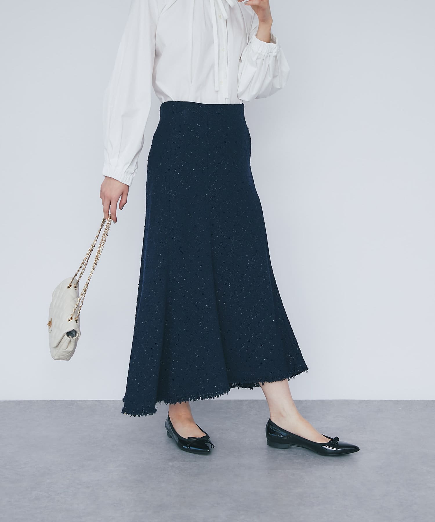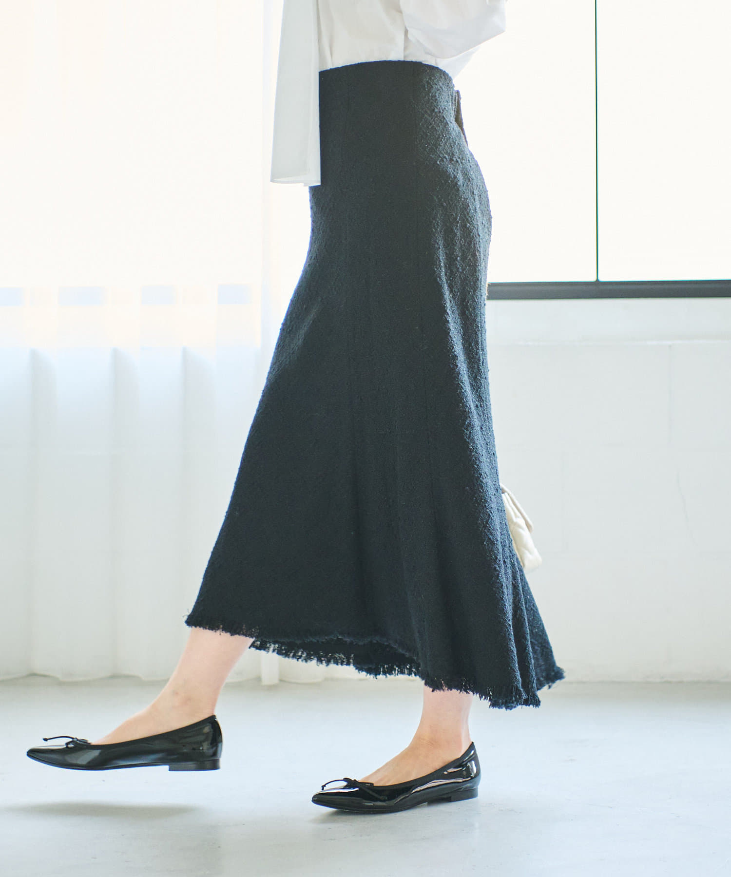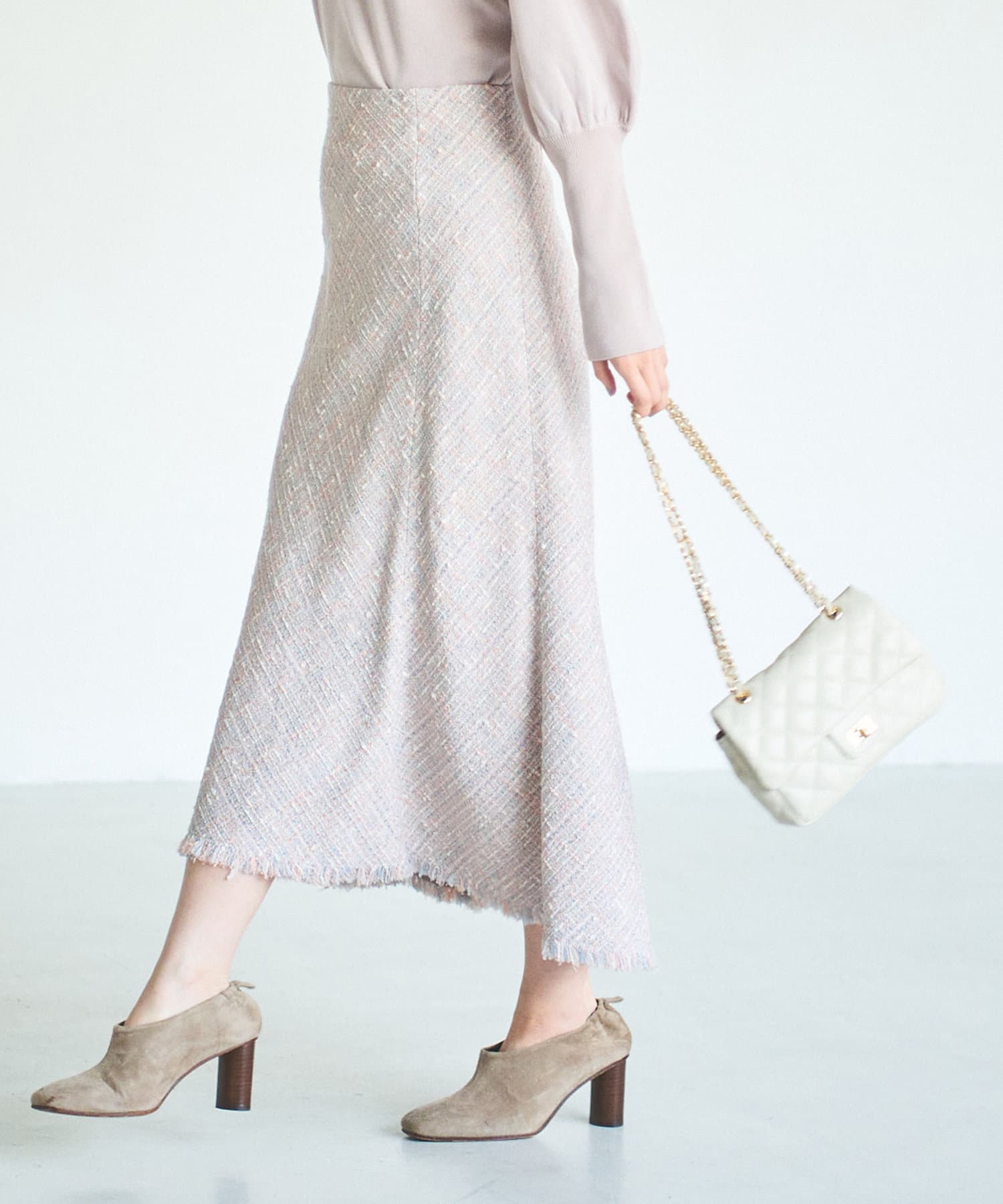 セットアップも可能なファンシーツイードのマーメイドスカート