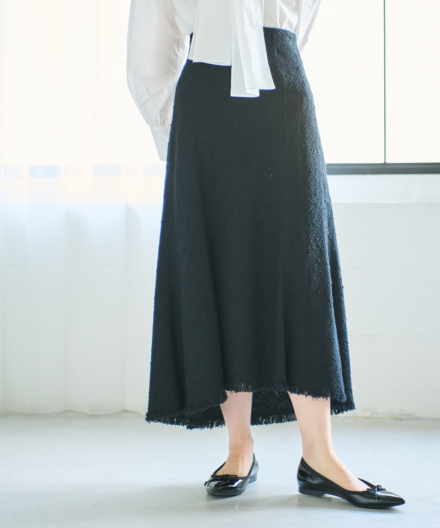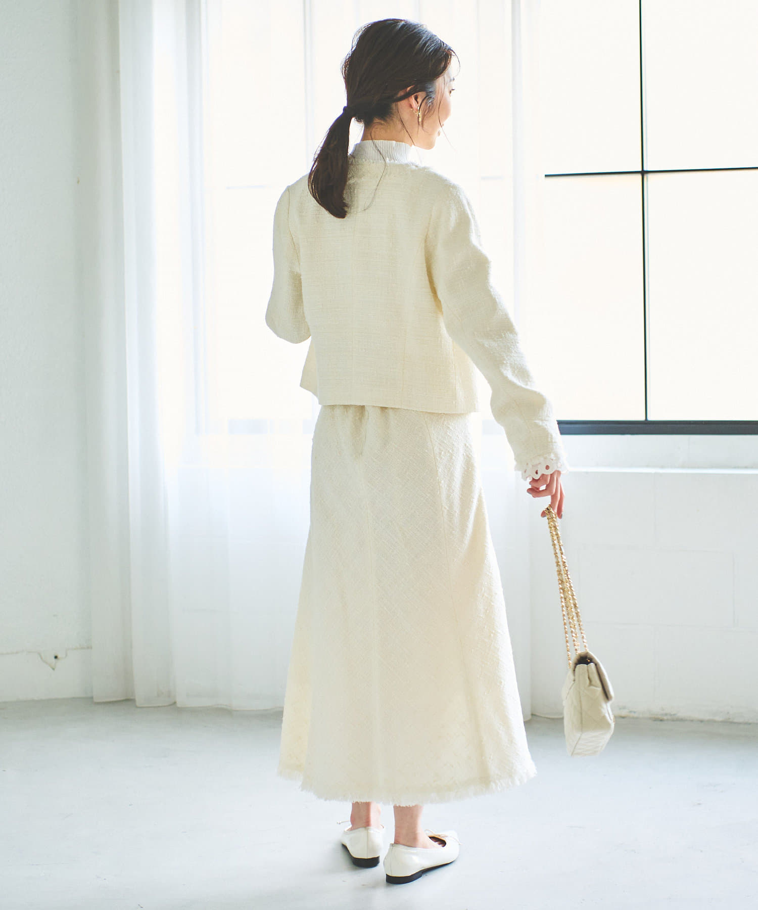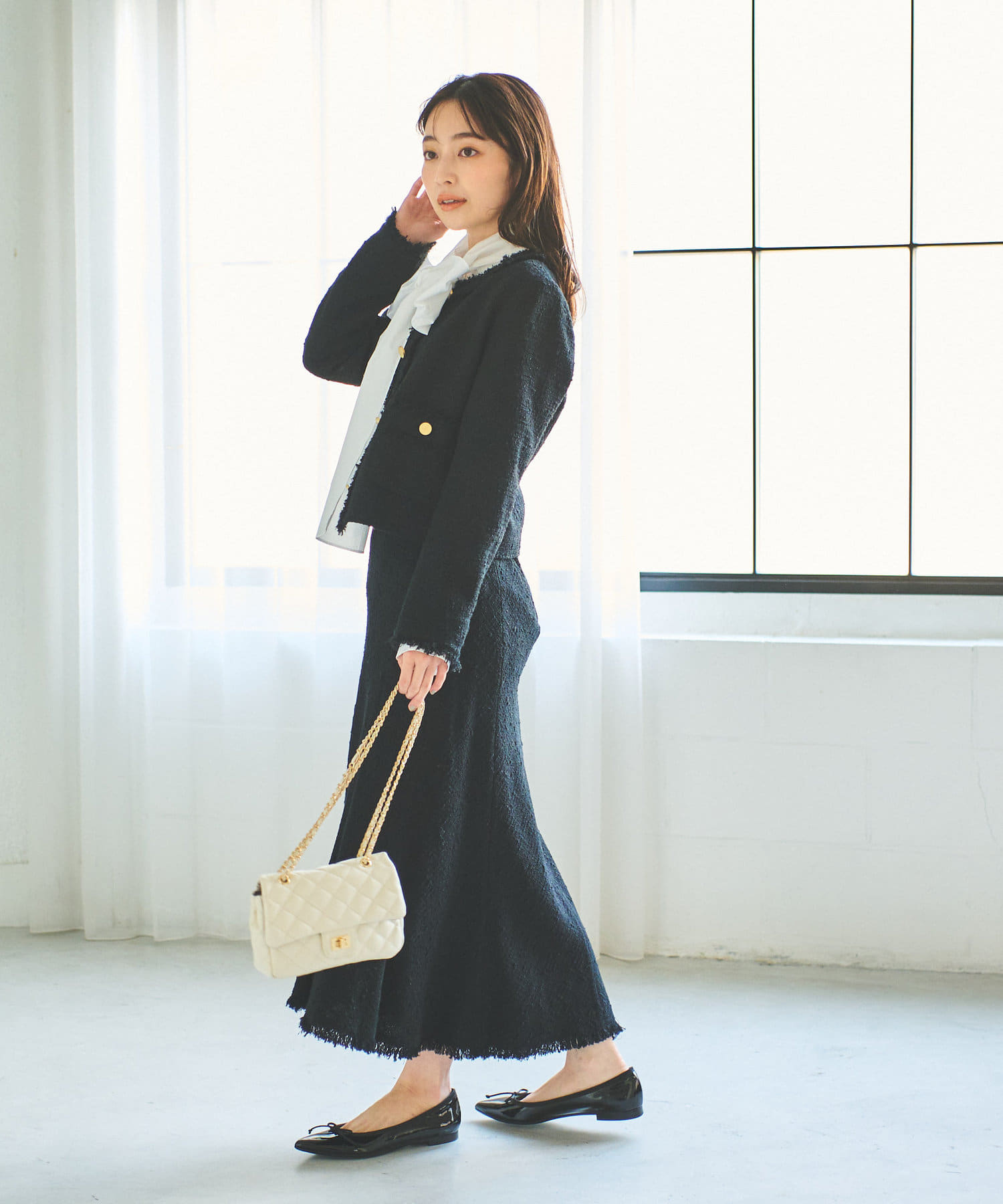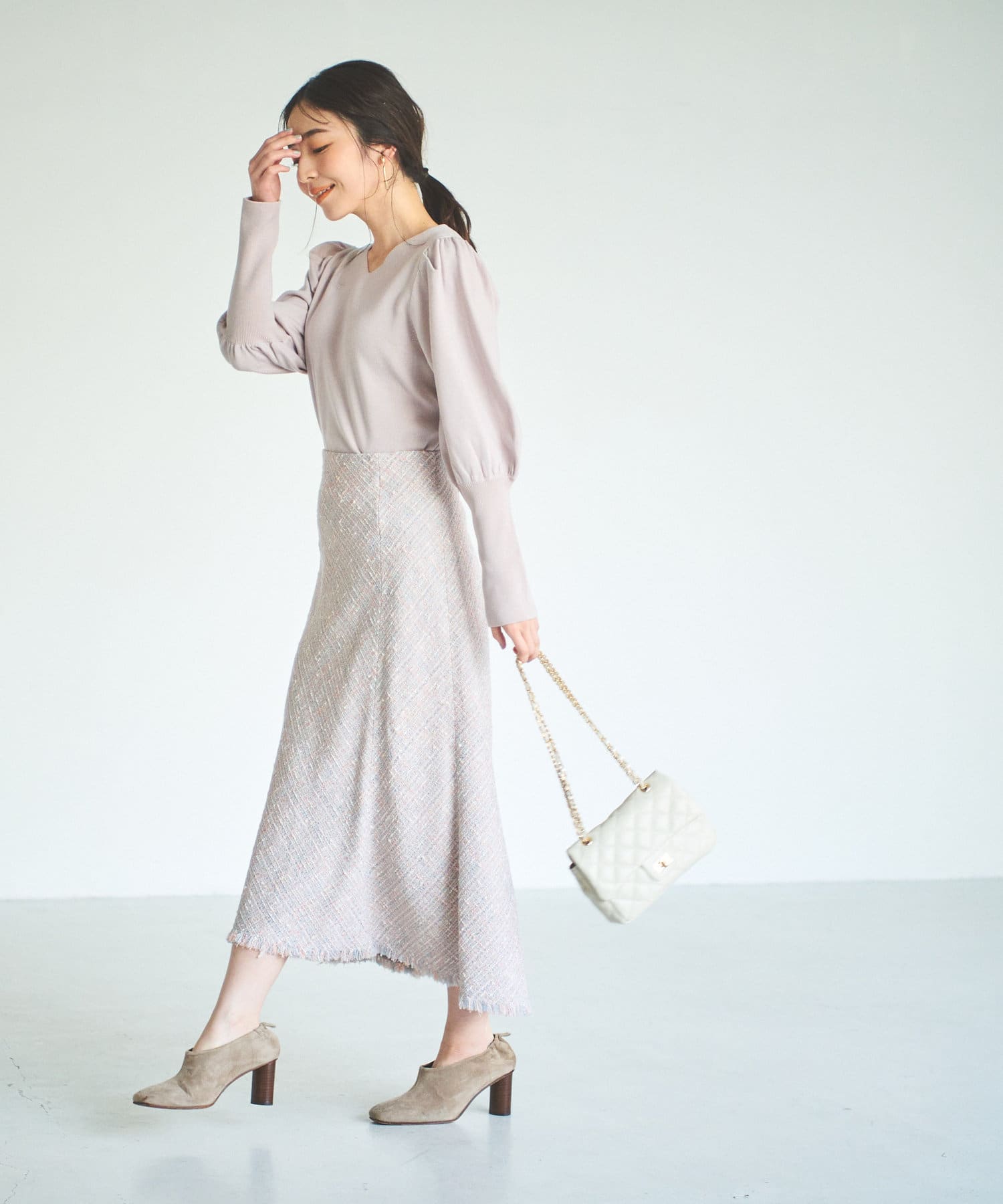 セットアップも可能なファンシーツイードのマーメイドスカート