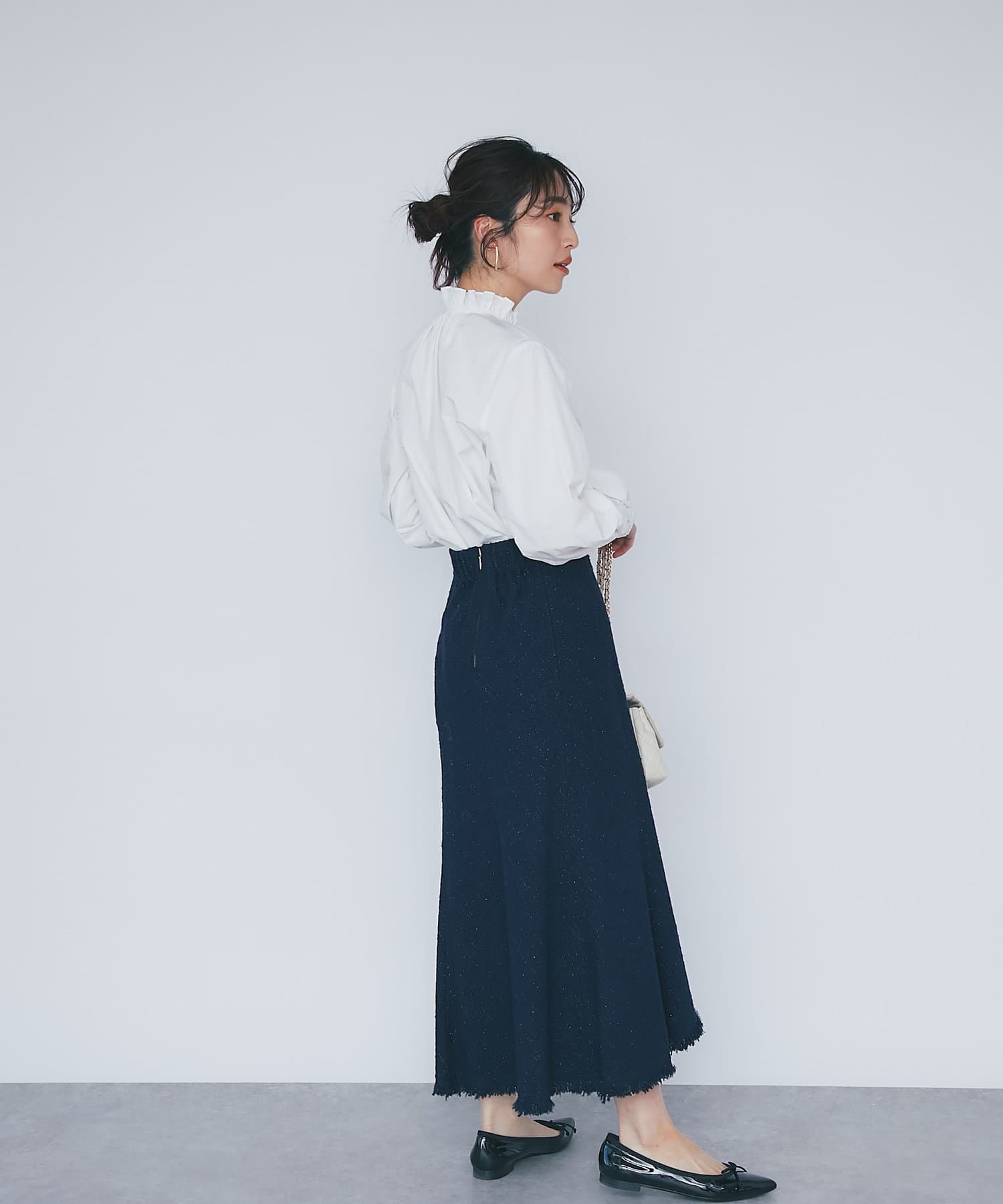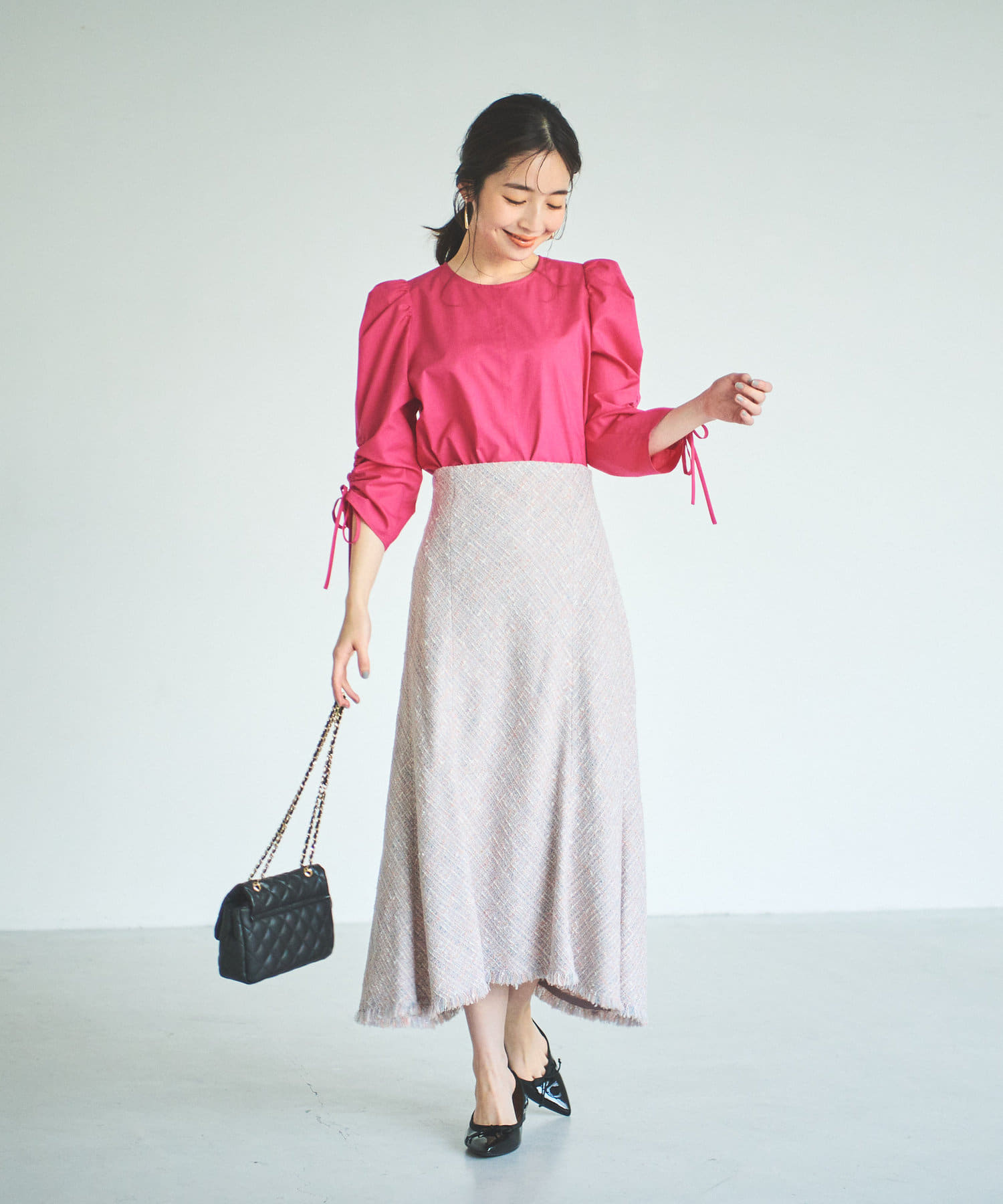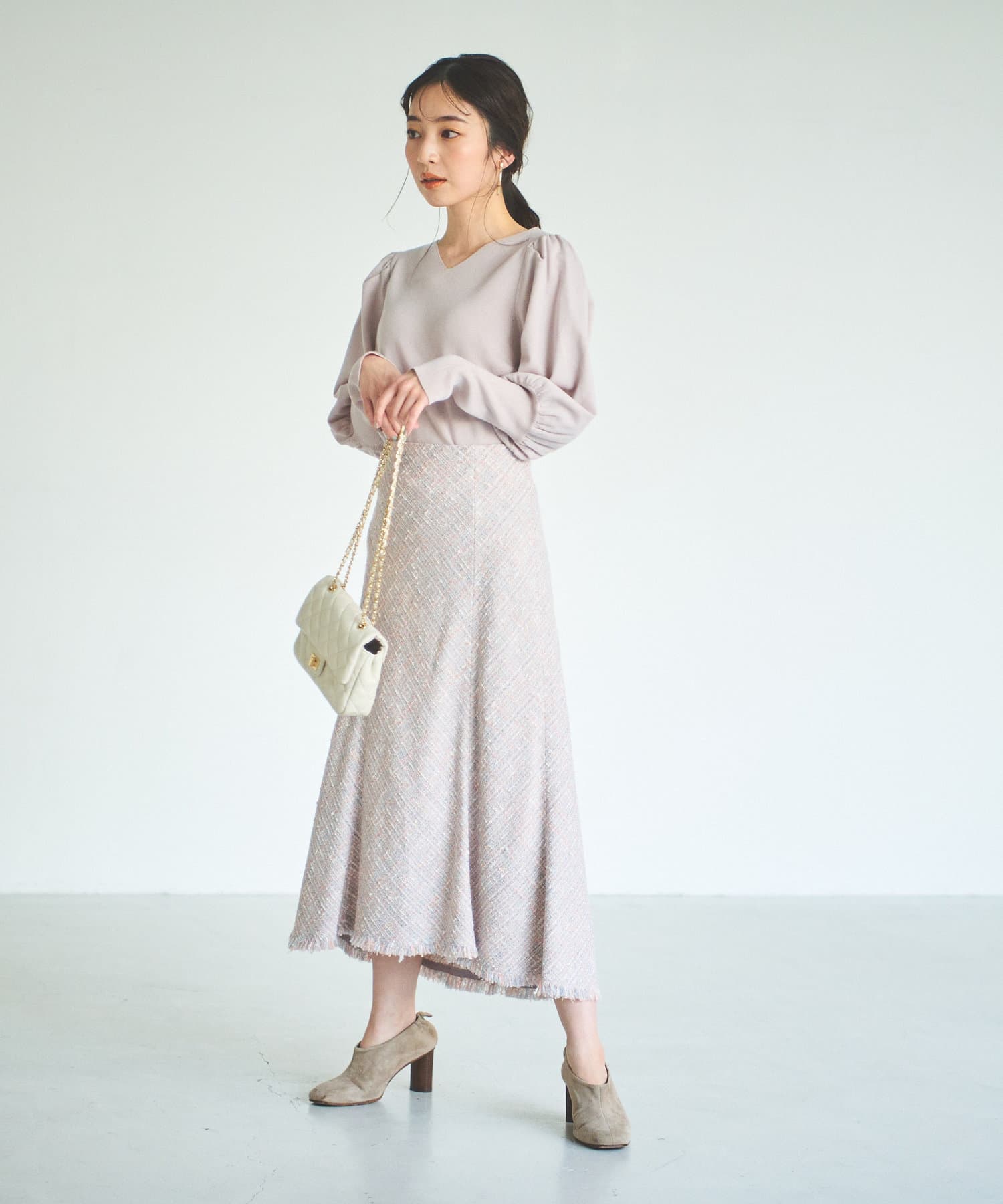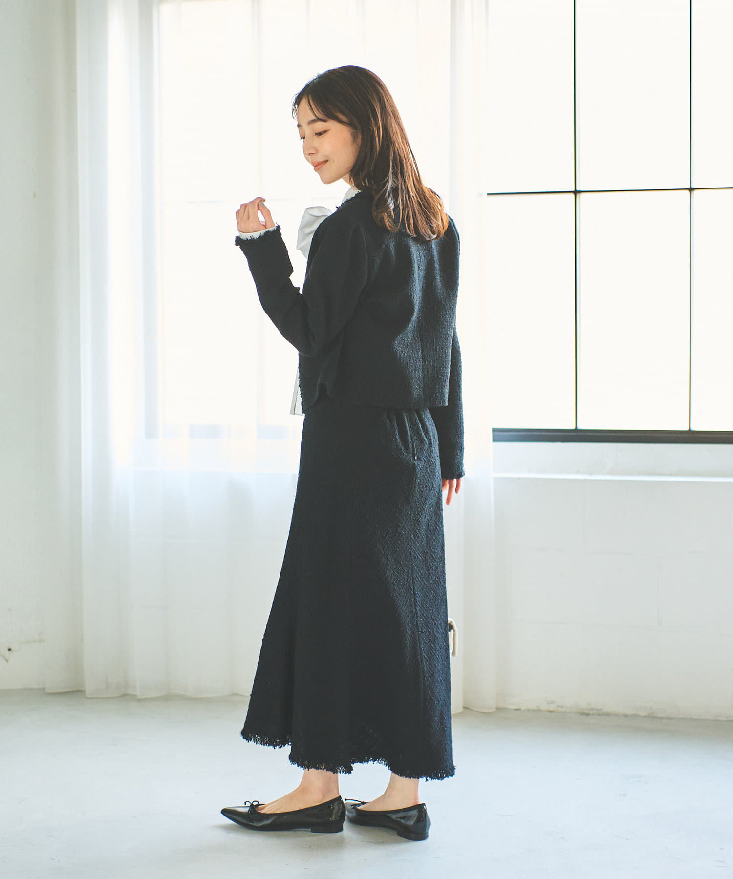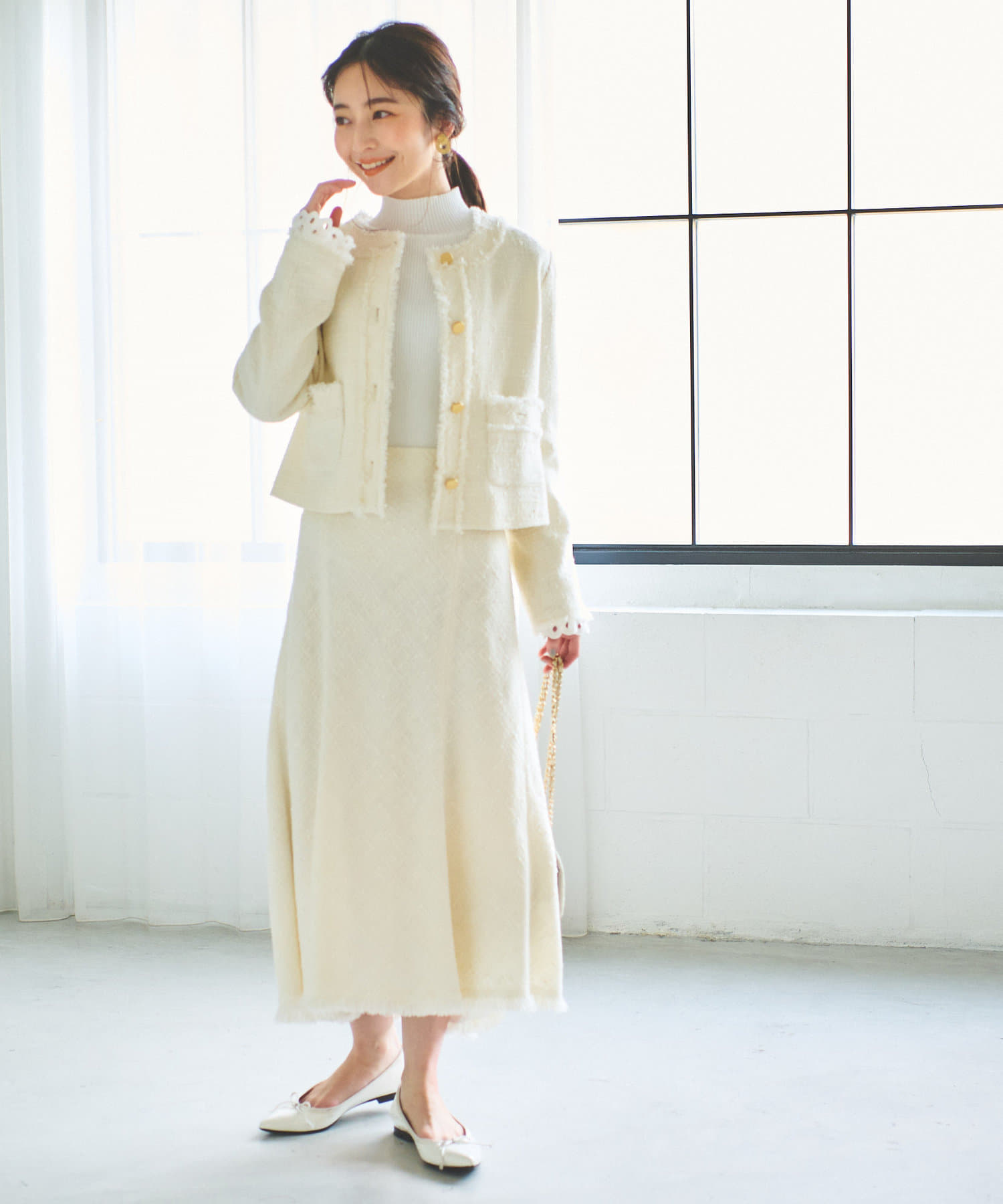 セットアップも可能なファンシーツイードのマーメイドスカート
