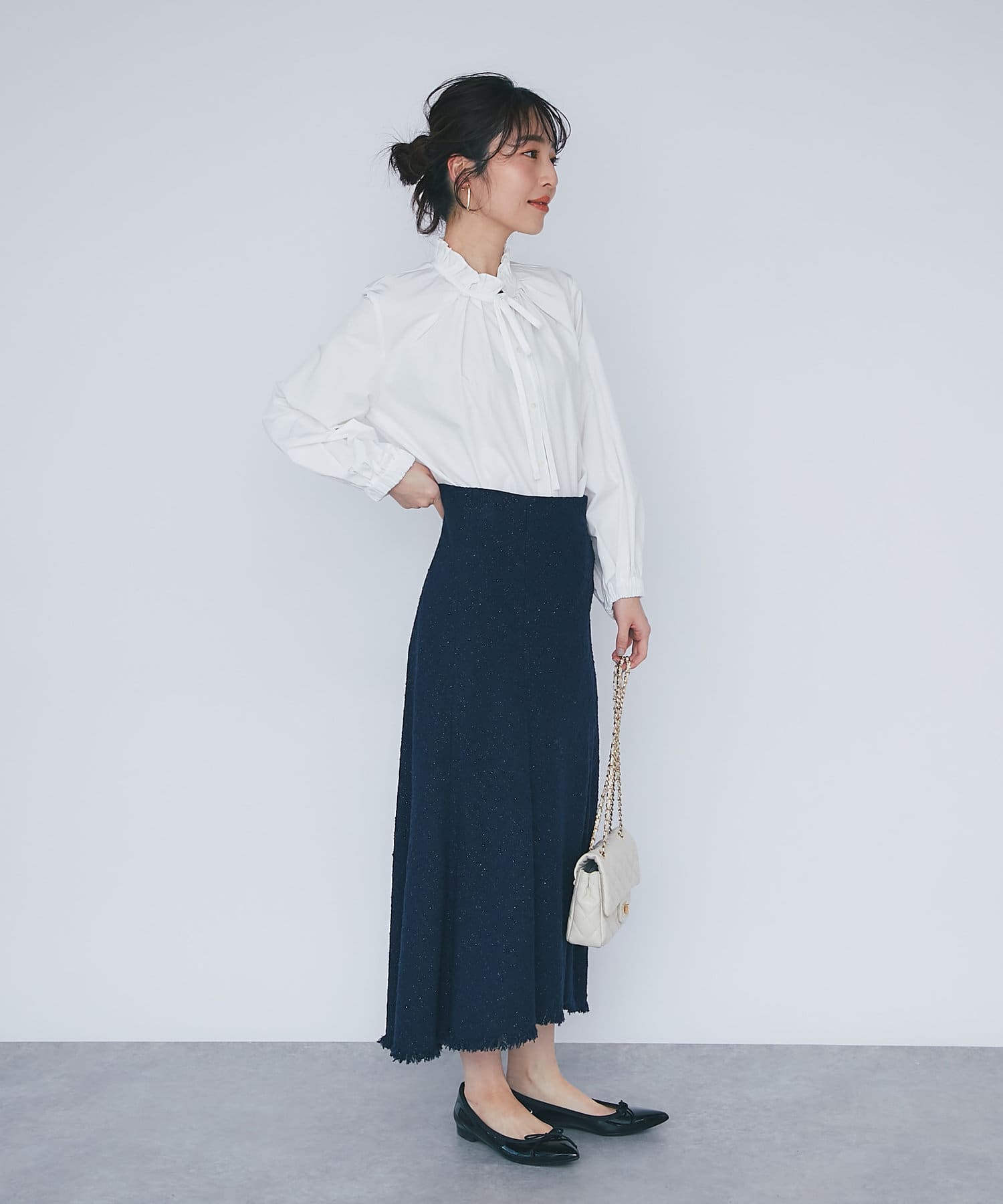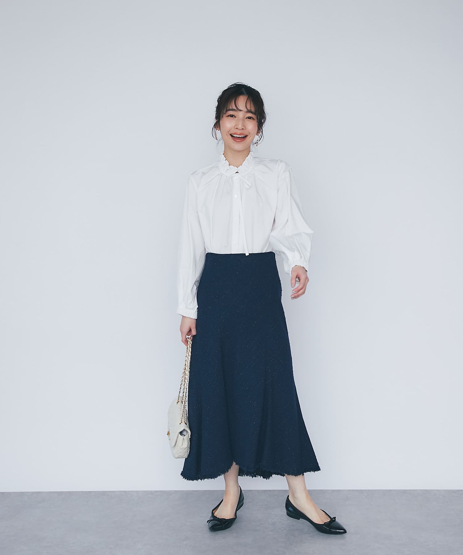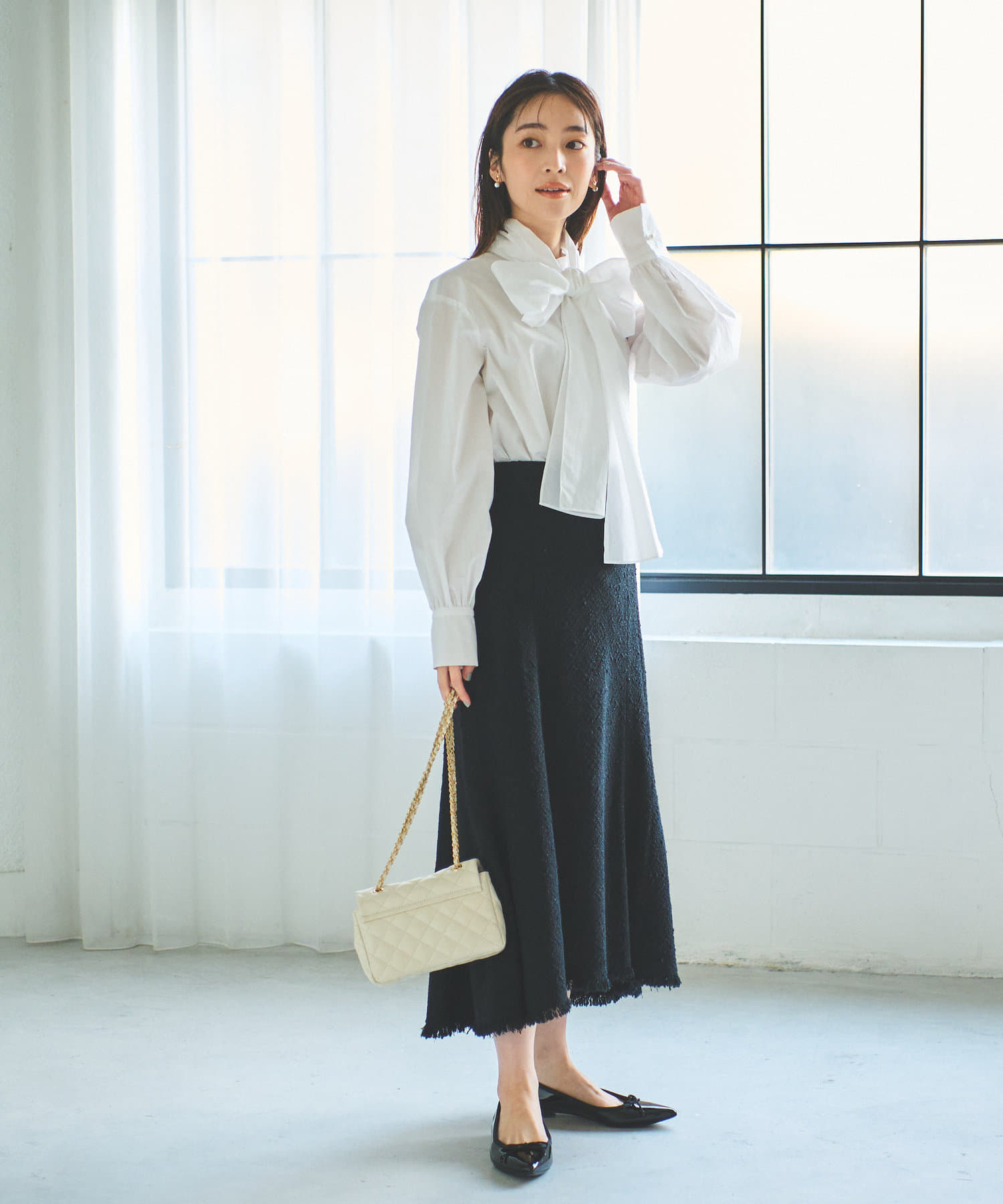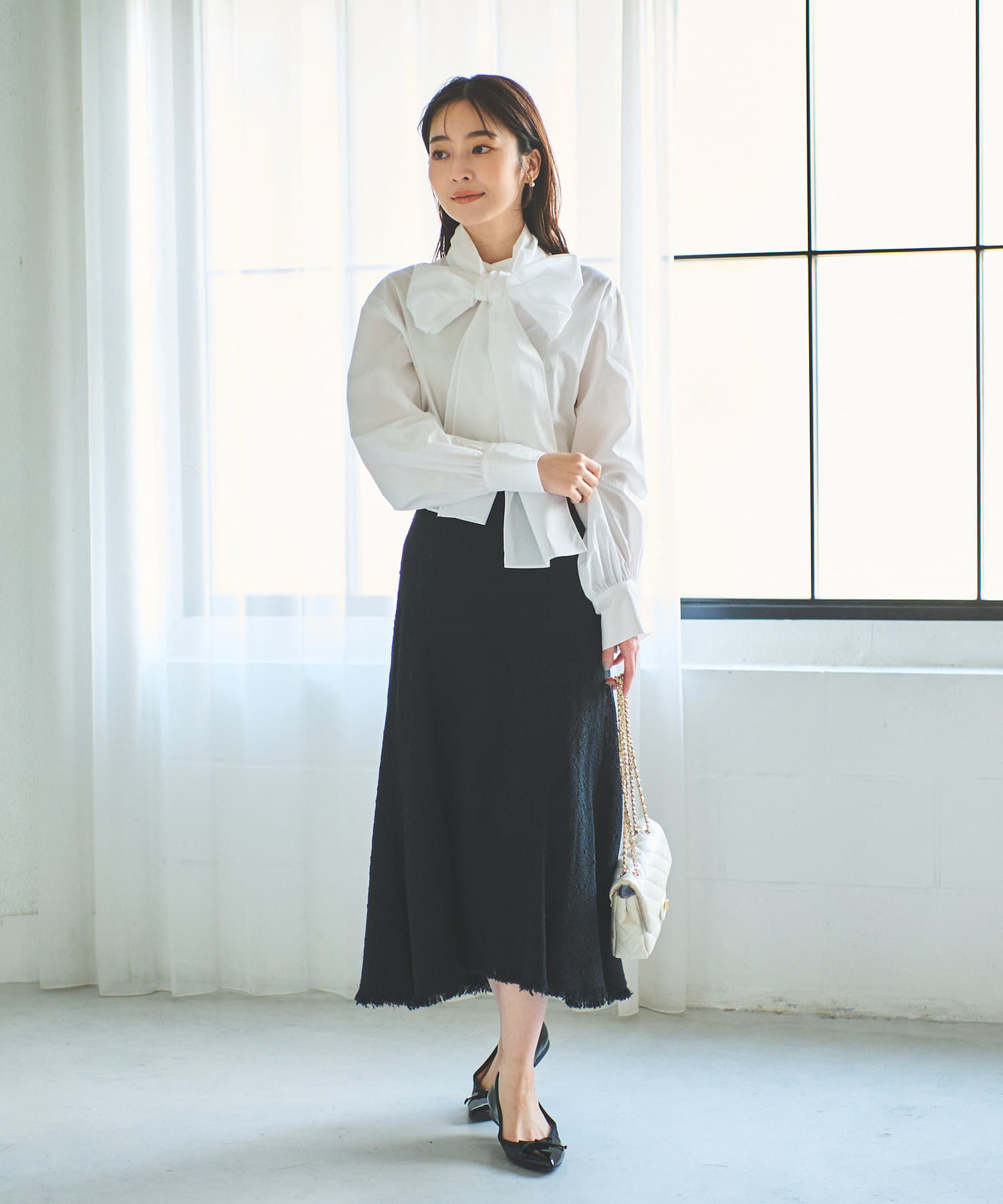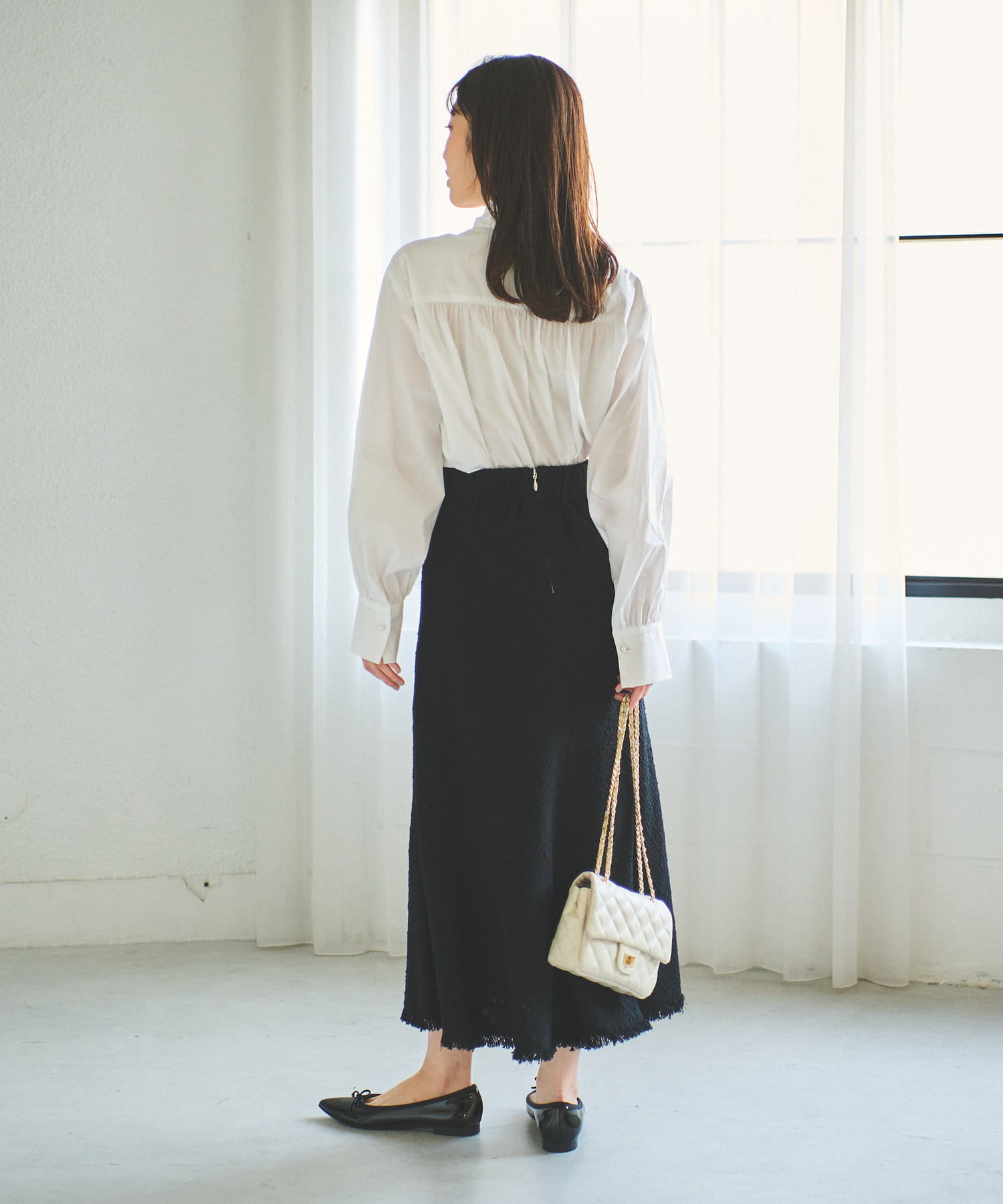 セットアップも可能なファンシーツイードのマーメイドスカート