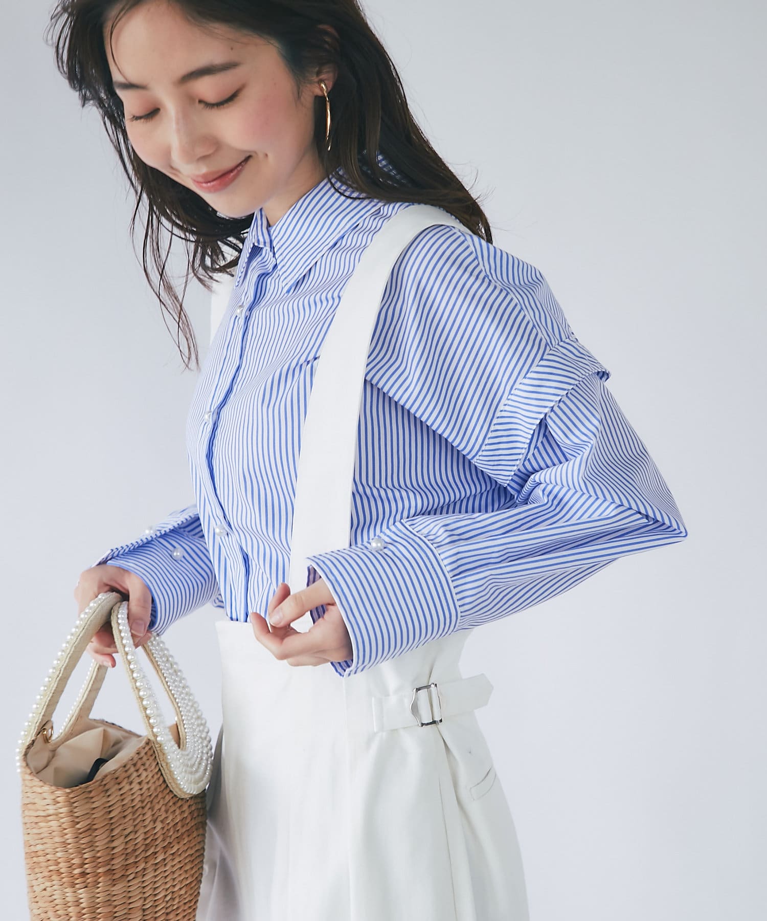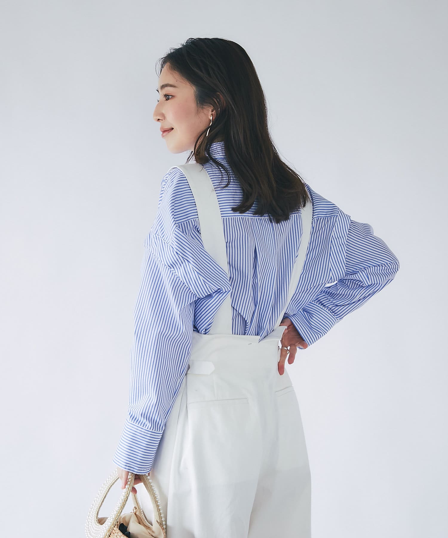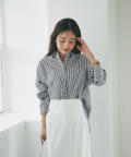 【追加オーダー決定・新色追加】パールボタンストライプオーバーシャツ