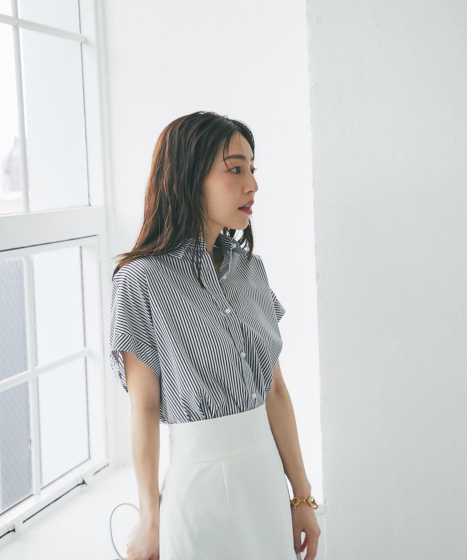 ストライプが新鮮な主役級シャツ。