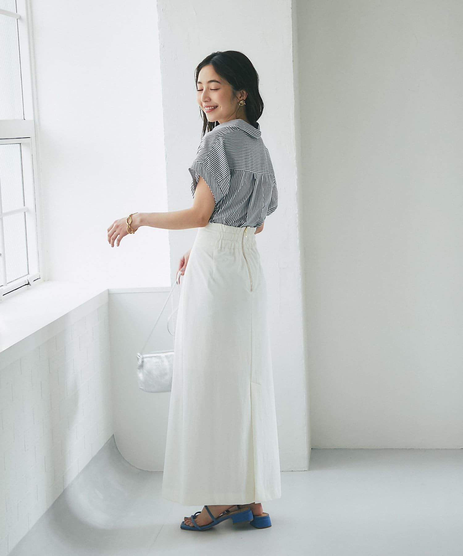 スカートにインして着ても、デニムやバギーパンツに合わせてももちろん、