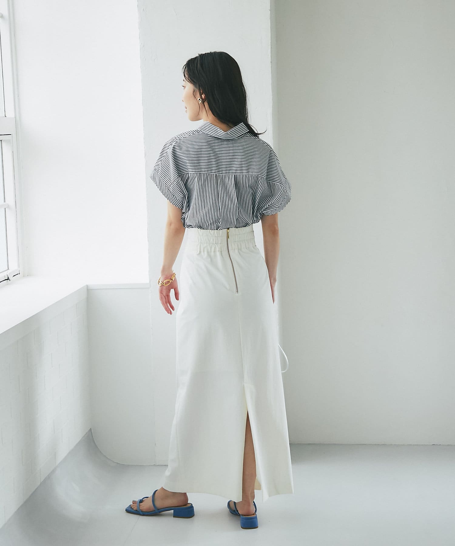 チュニックとしてミニ丈ボトムに合わせても新鮮です。