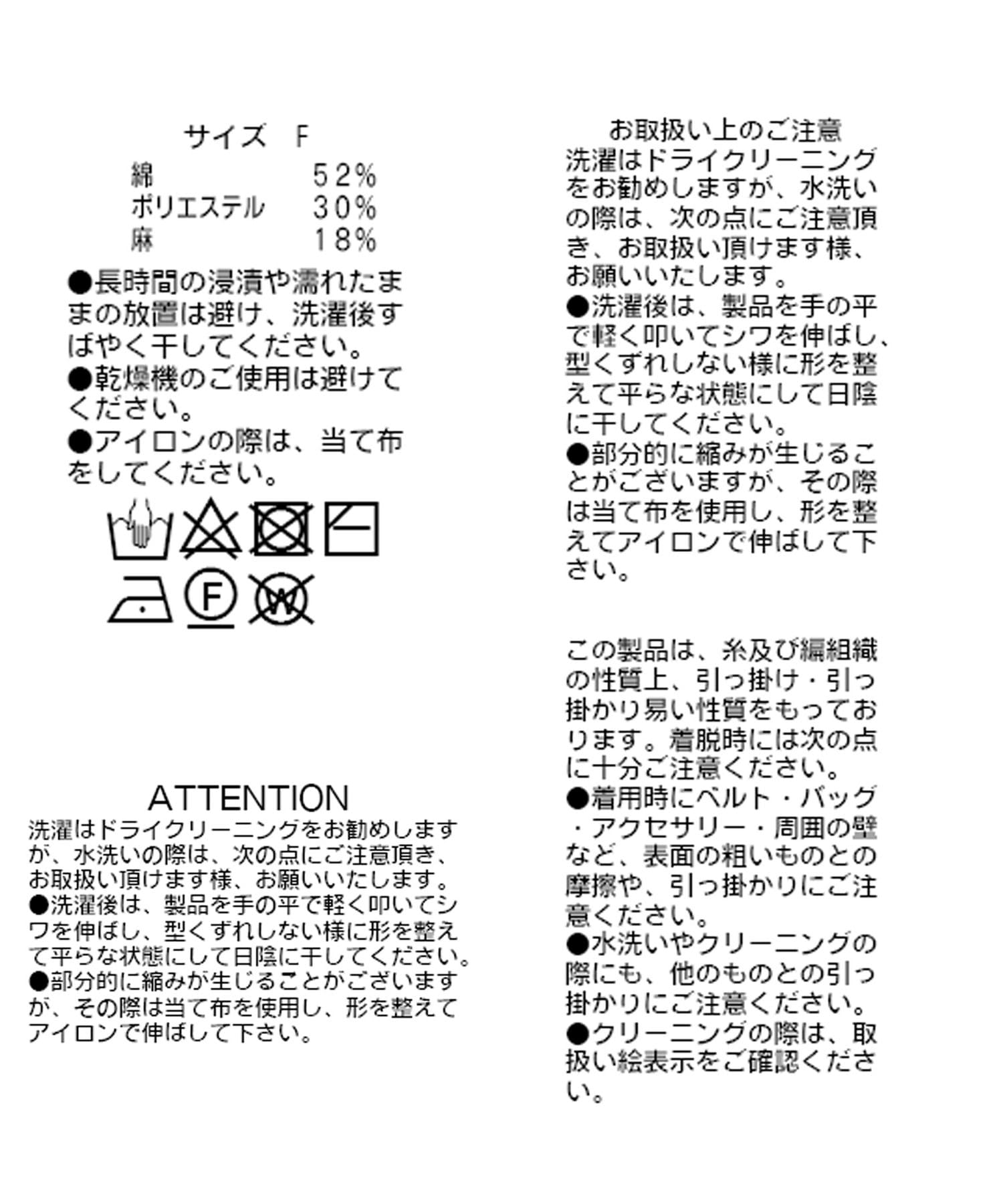 品番 LBZ1031105A0009 素材 綿 52% ポリエステル 30% 麻 18% 原産国 中国 サイズ F カテゴリ トップス > ニット/セーター タイプ レディース ギフト ラッピング 可 取り扱い 本体:手洗い可能 アイテムサイズ