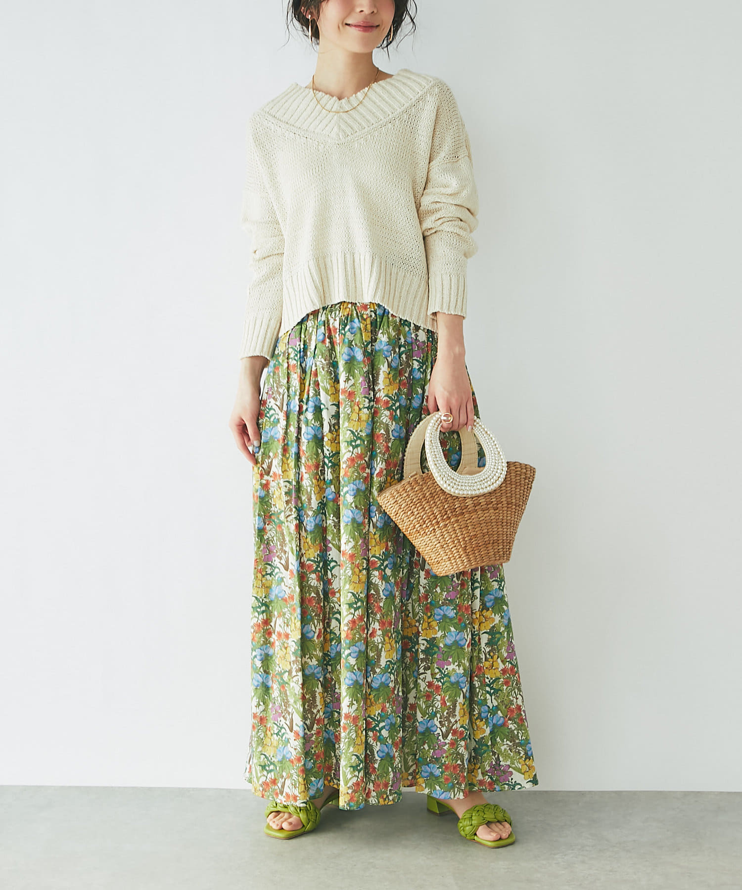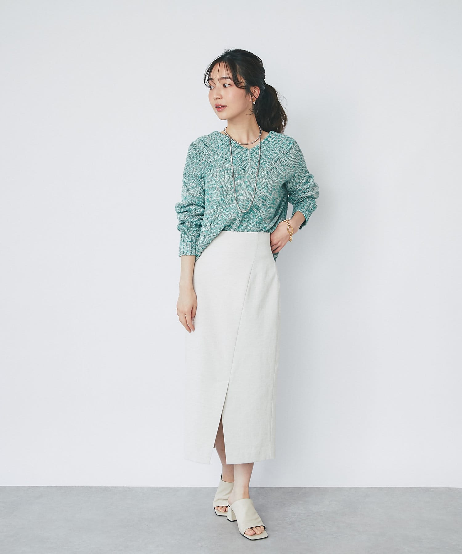 #大人カジュアル #きれいめカジュアル #きれいめコーデ #上品カジュアル #ニット #春ニット #ざっくりニット #シンプル #クロップド丈 #カラーアイテム #カラーニット #リリヤーン #ミドルゲージ