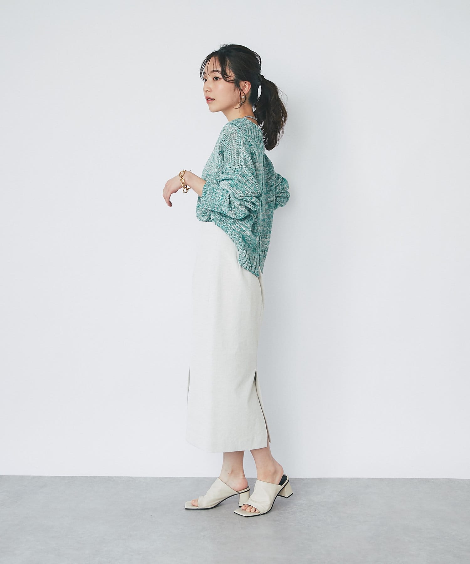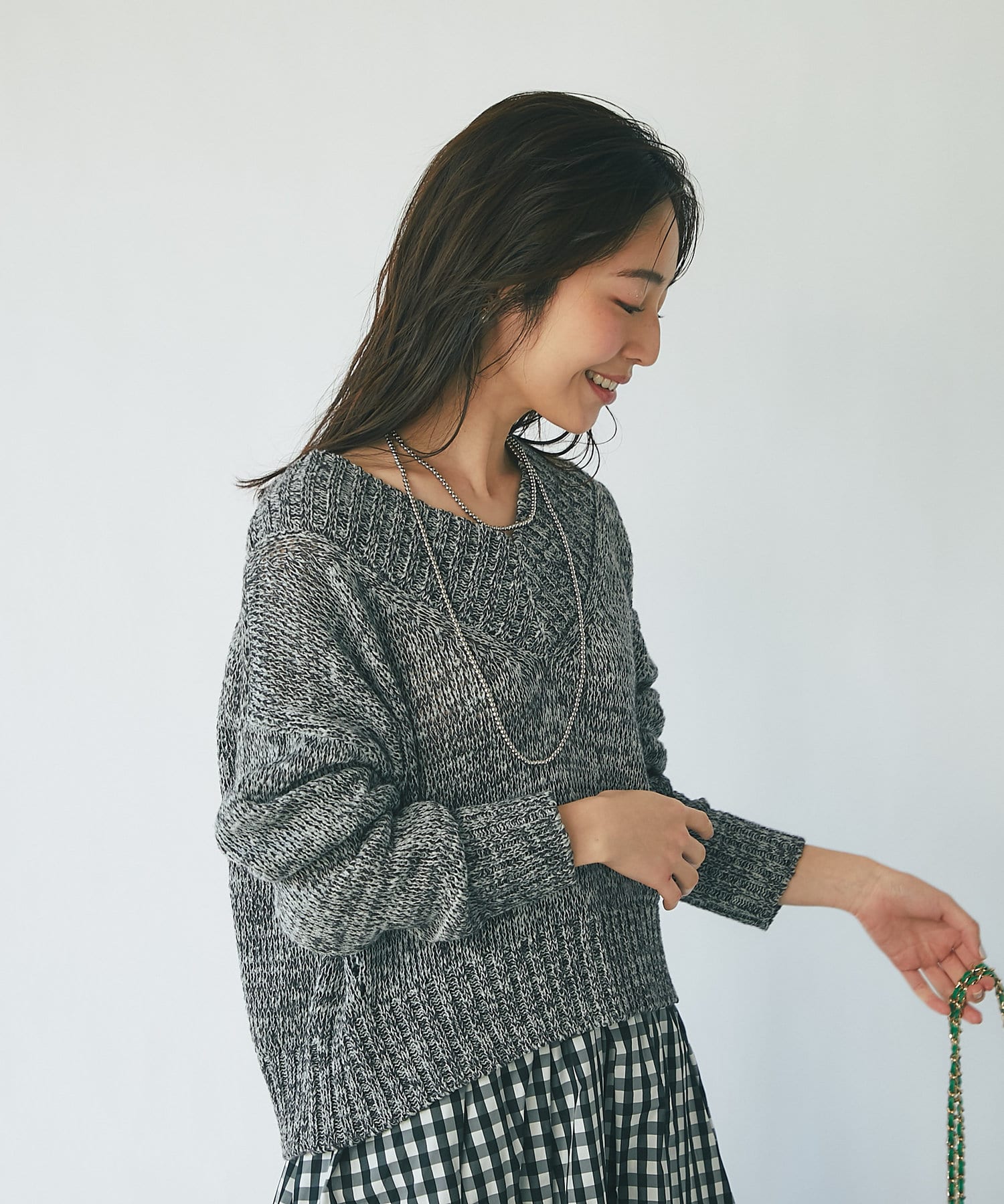 リリーヤーンと綿麻糸をミックスした杢調で、ミドルゲージですが軽やかな印象です。