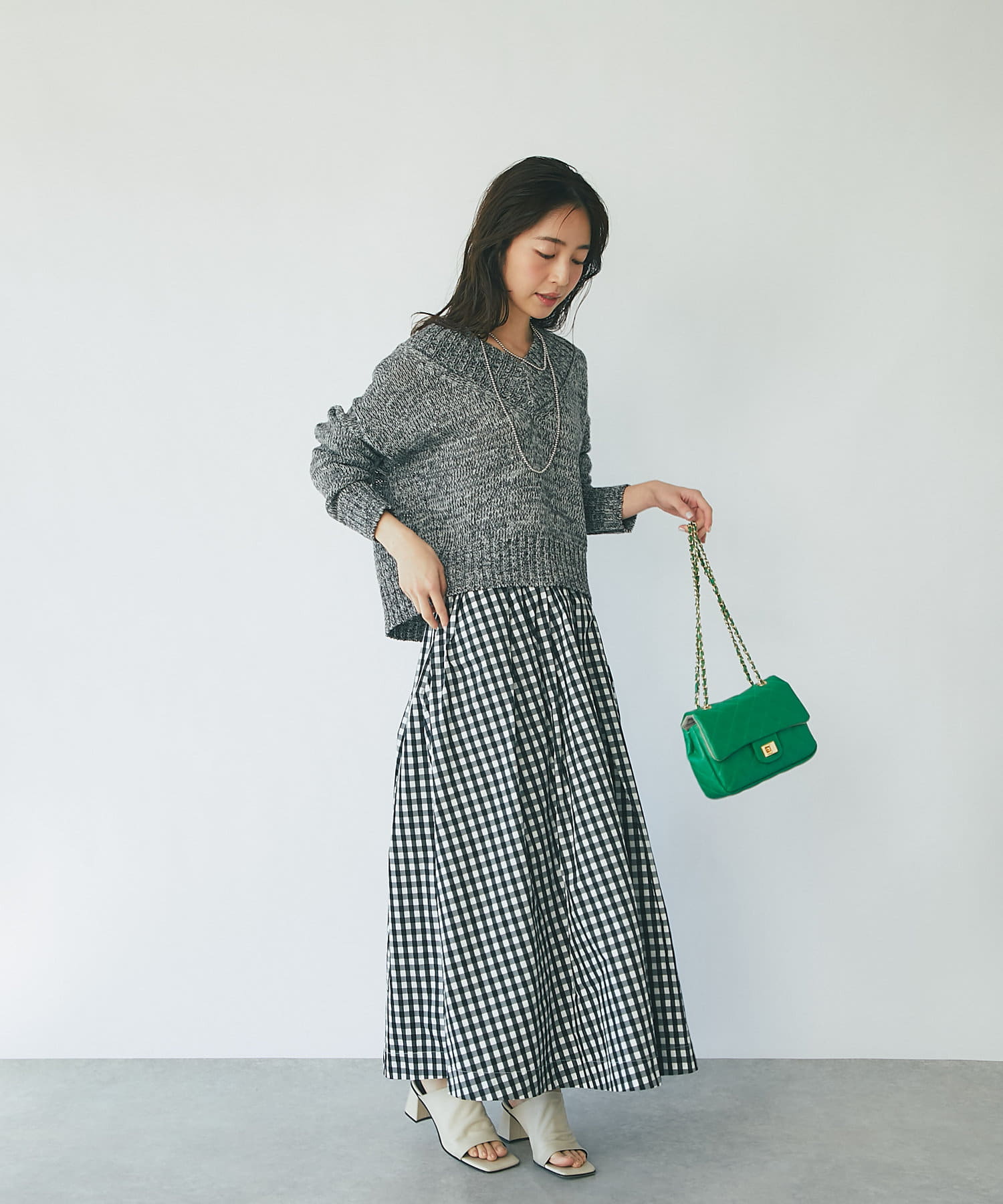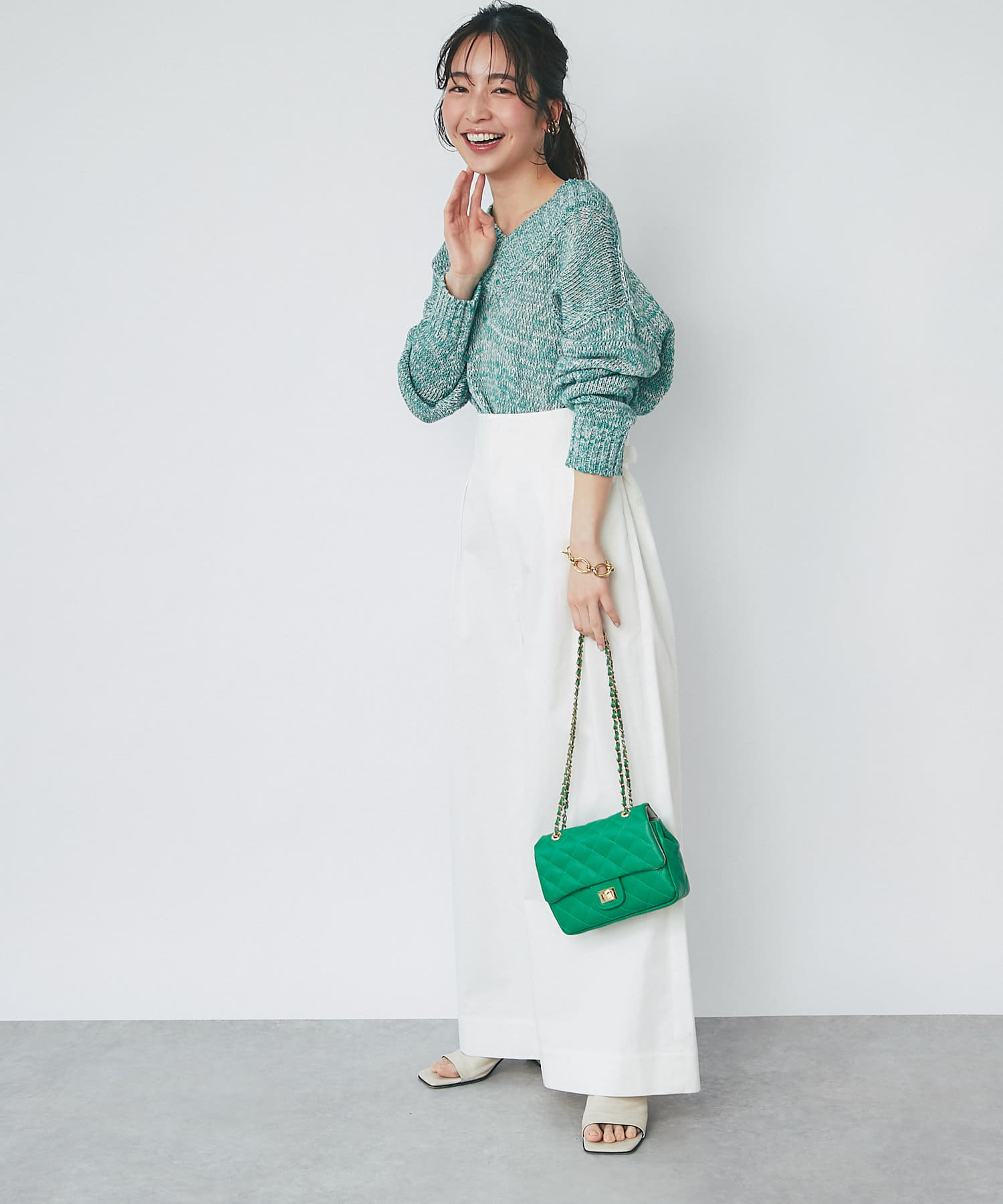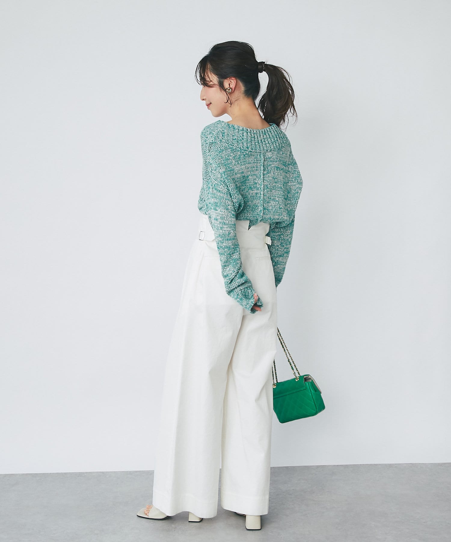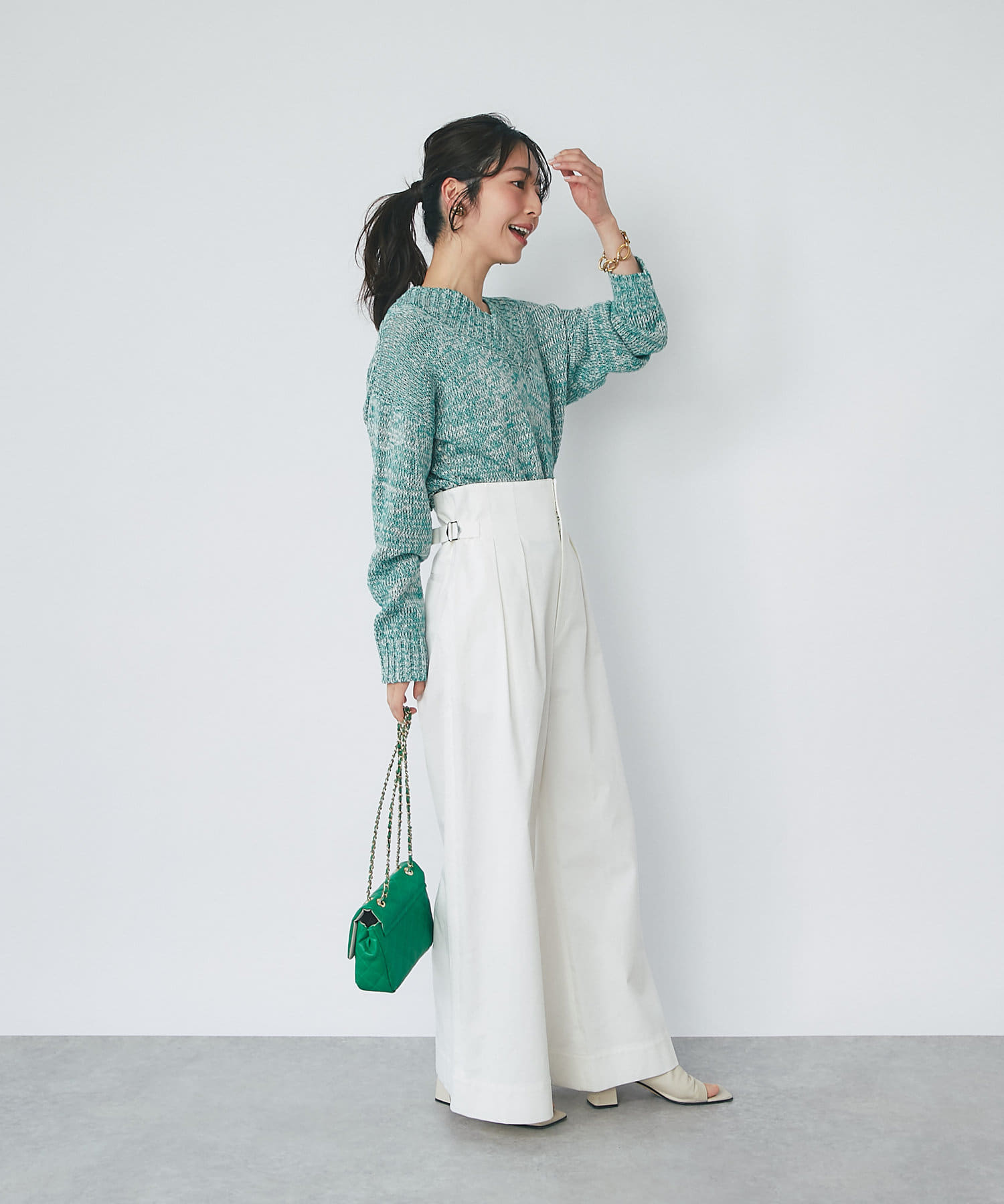 コンパクトな着丈なので、ハイウエストのボトムと相性がよく