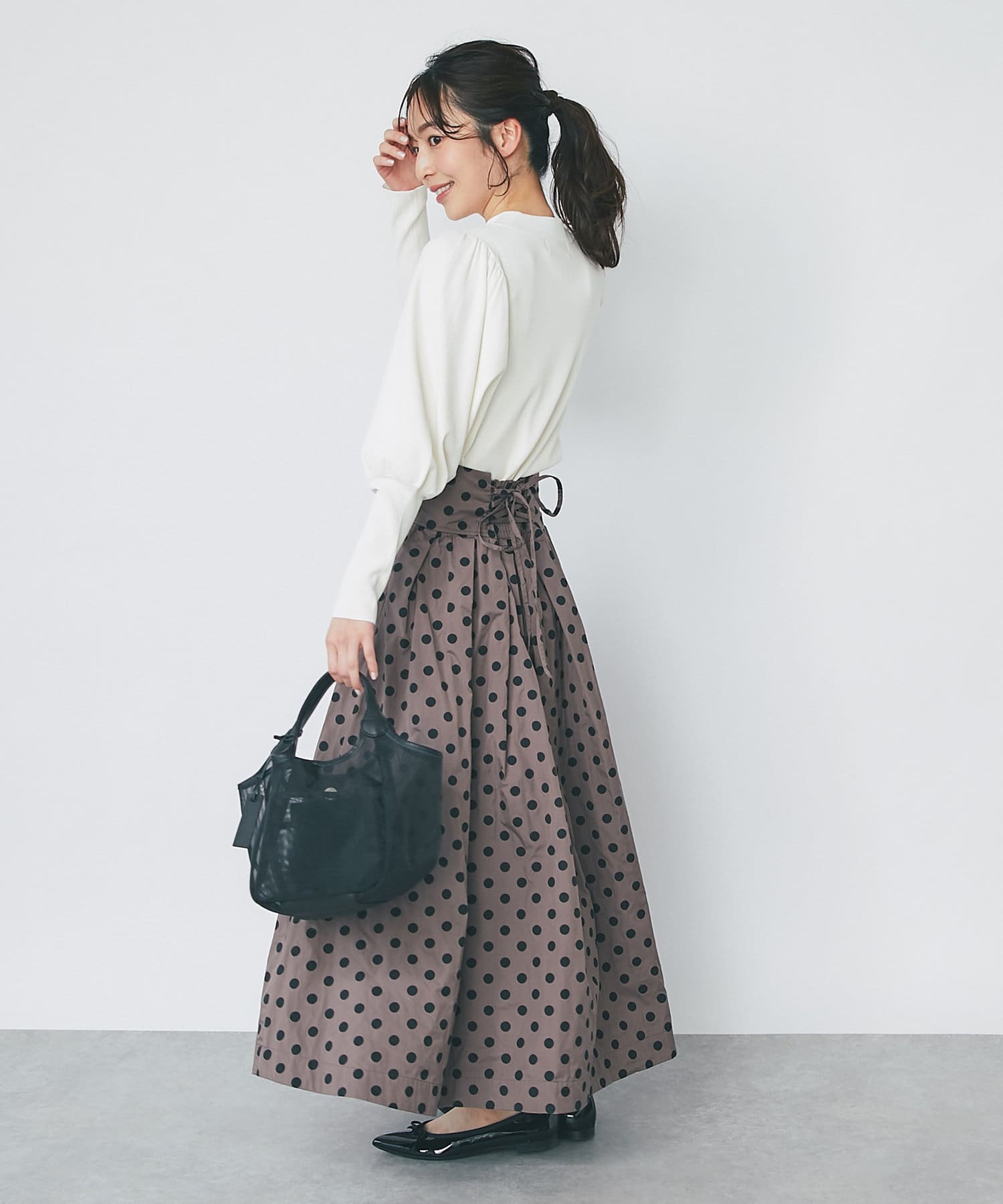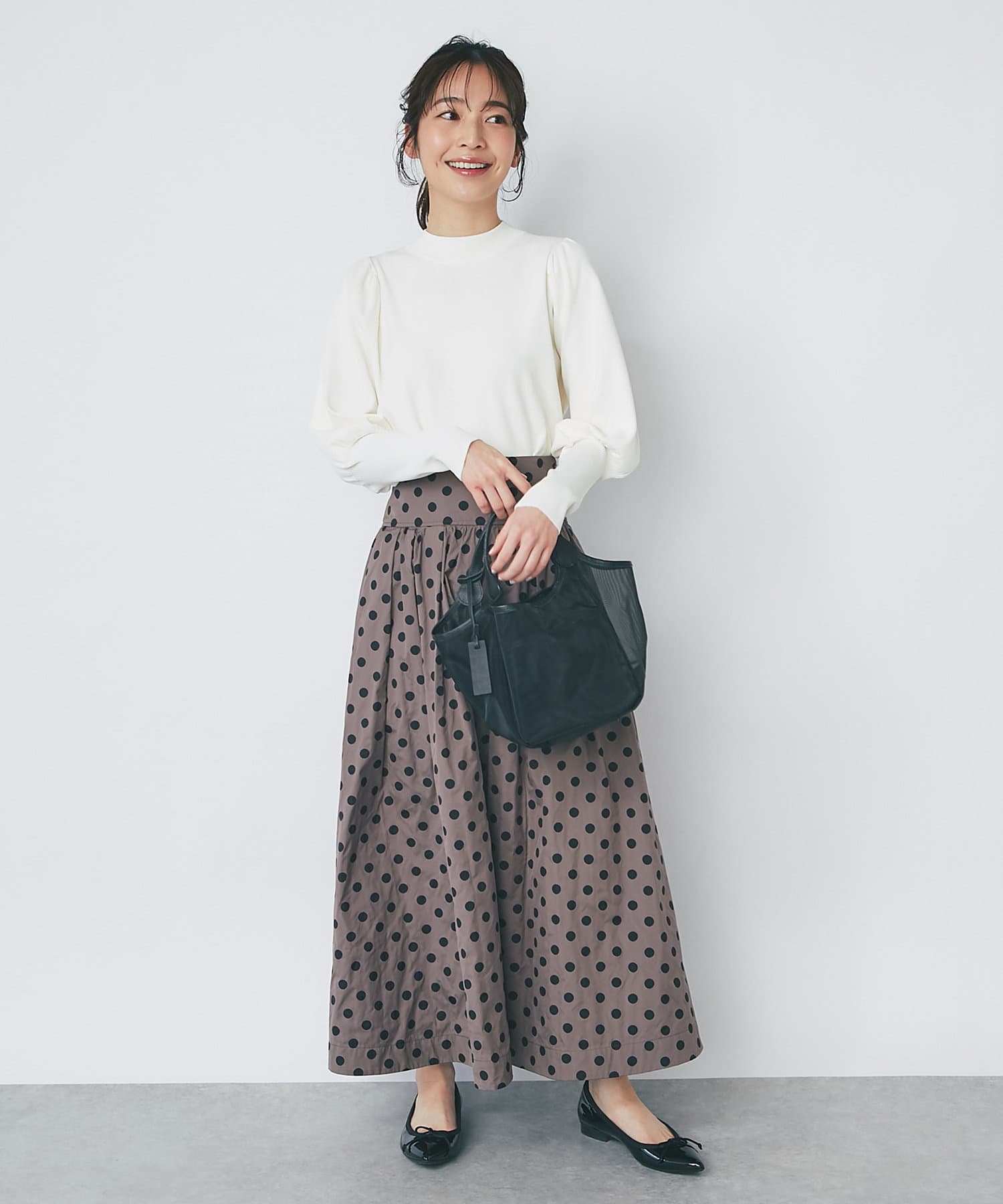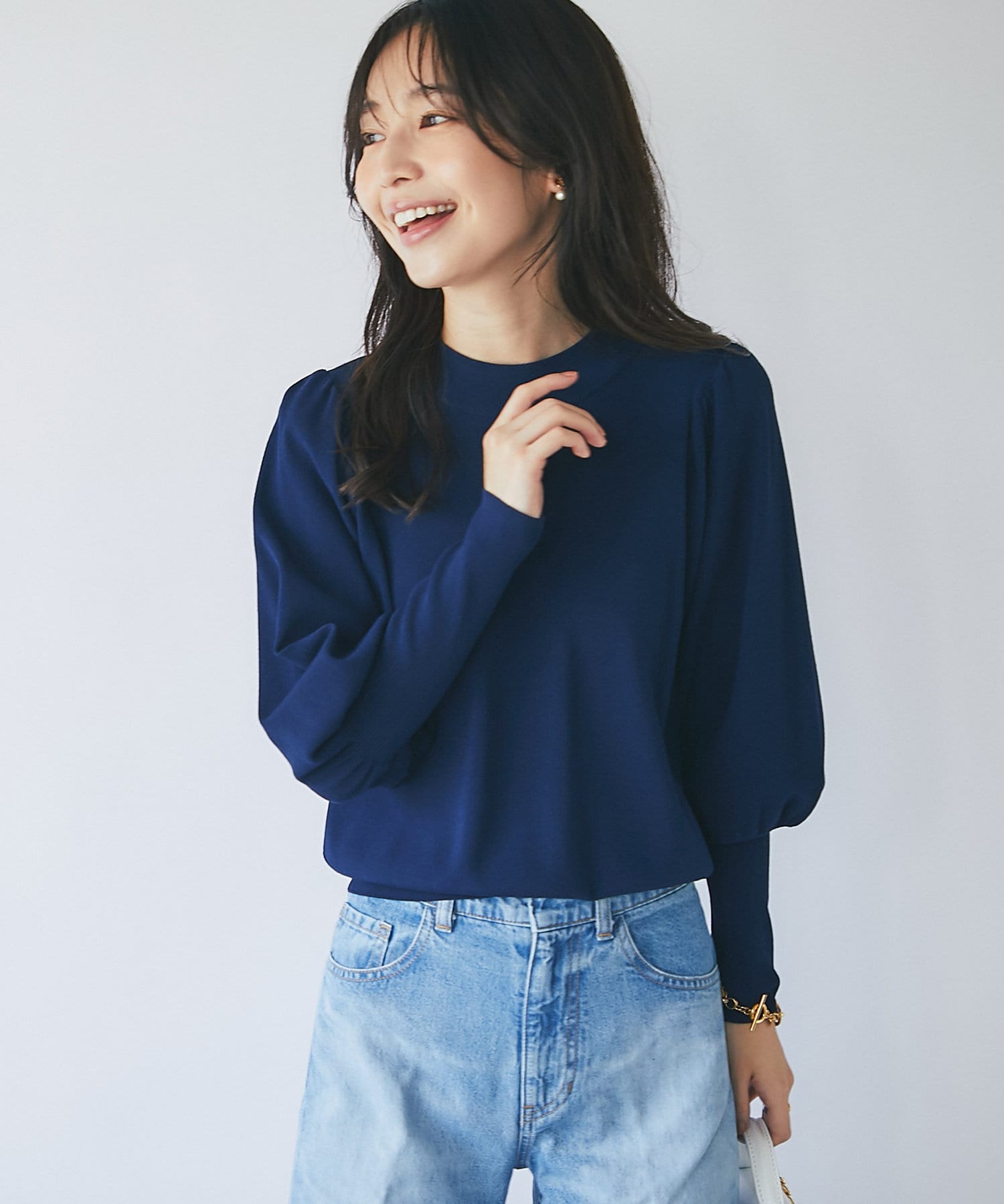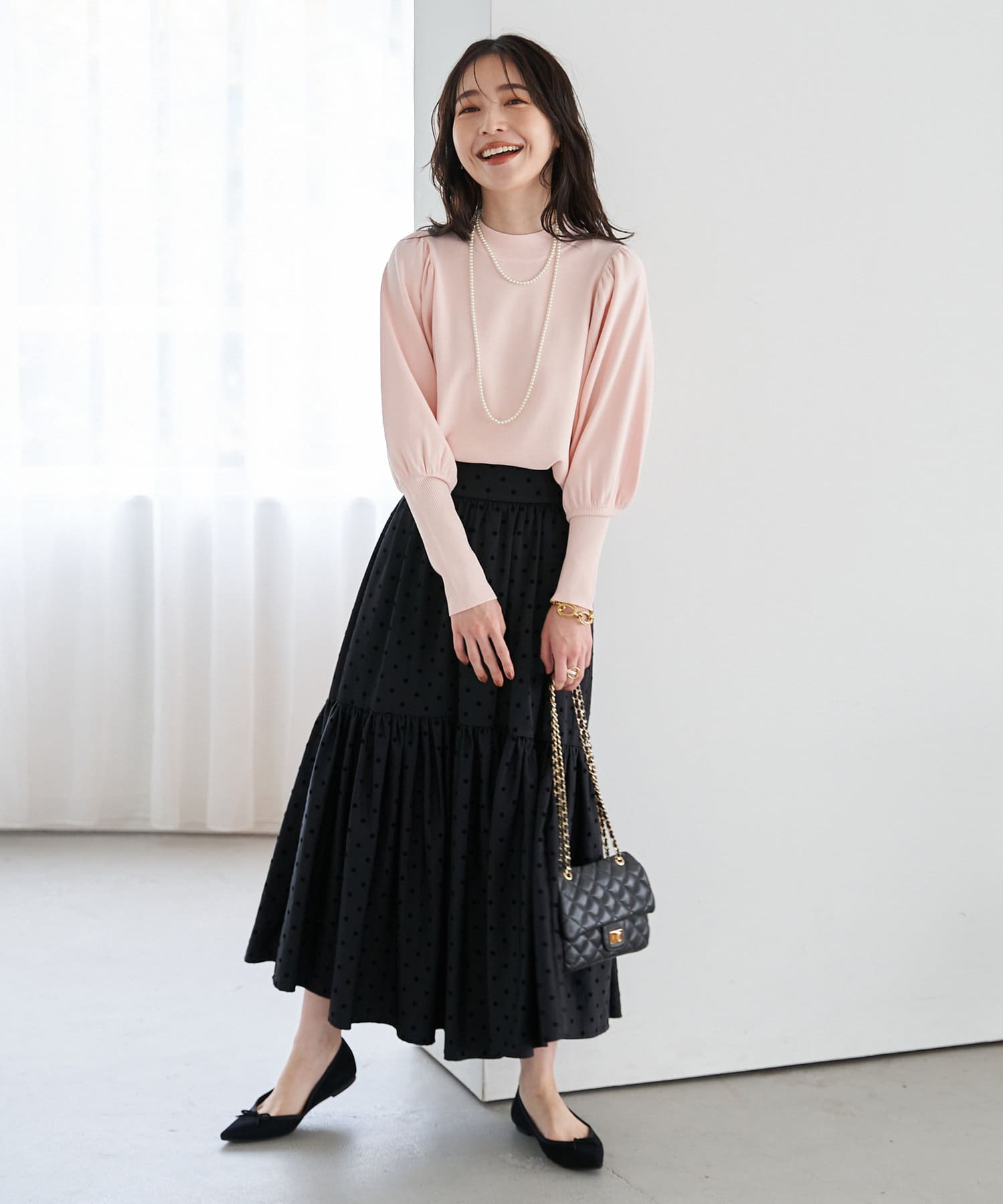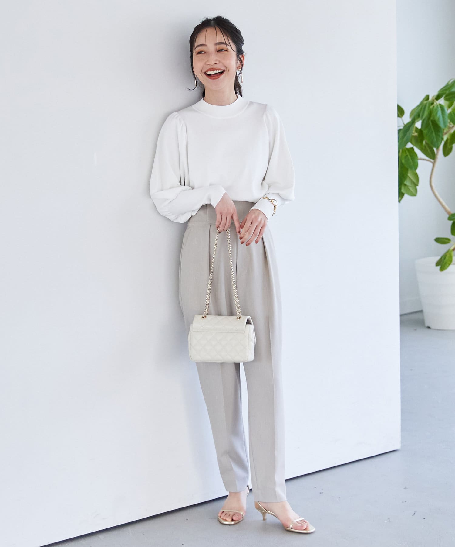 ボトムインもしやすい素材感で女性らしいシルエットが叶います。