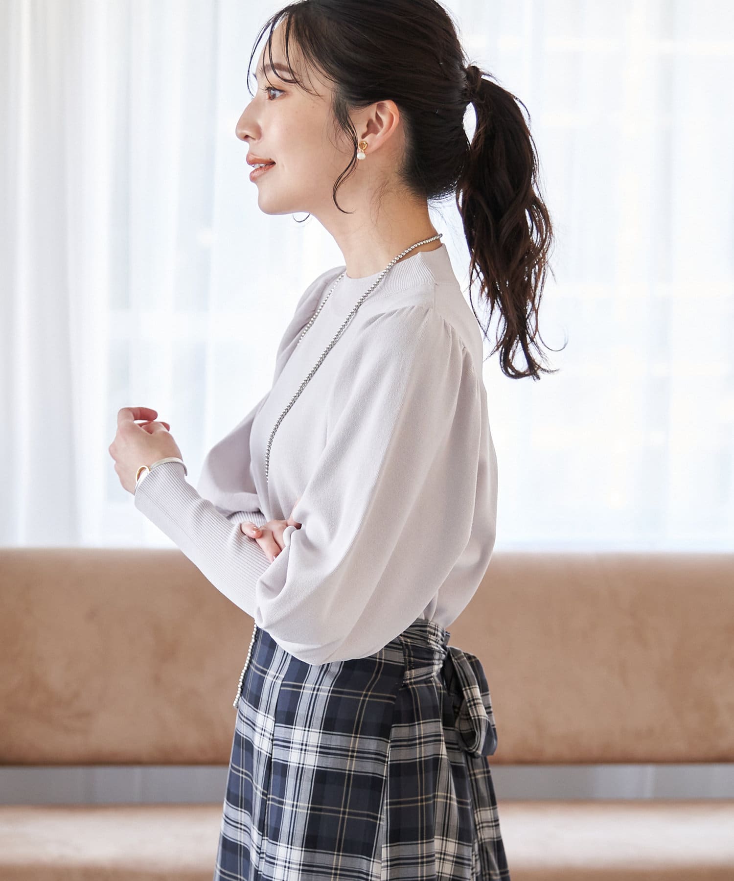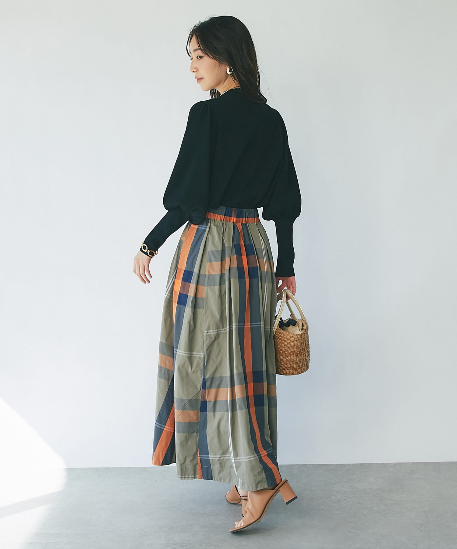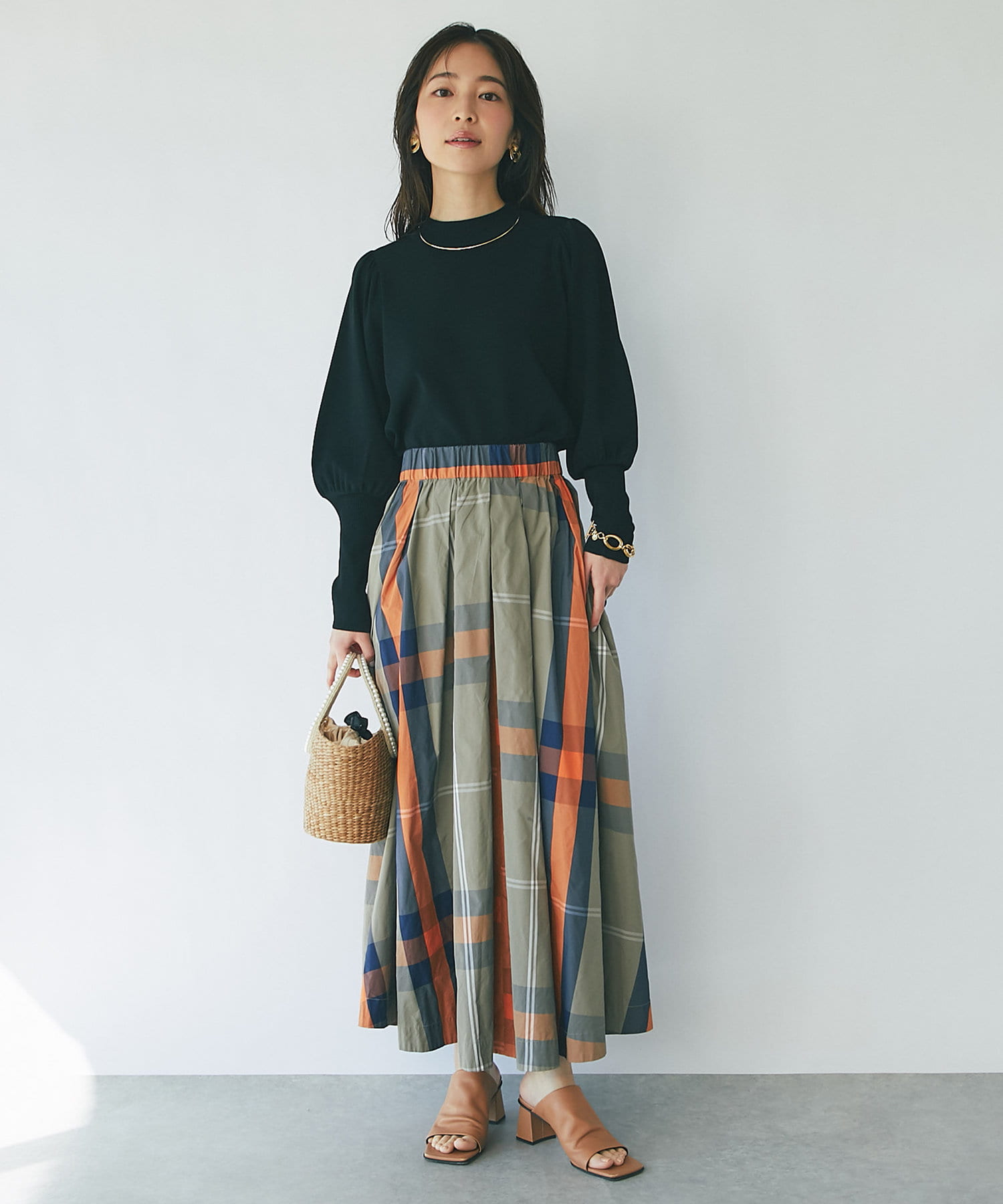 ギャザースカートなどボリューム感のあるスカートや、ハイウエストのボトムなどと相性抜群。
