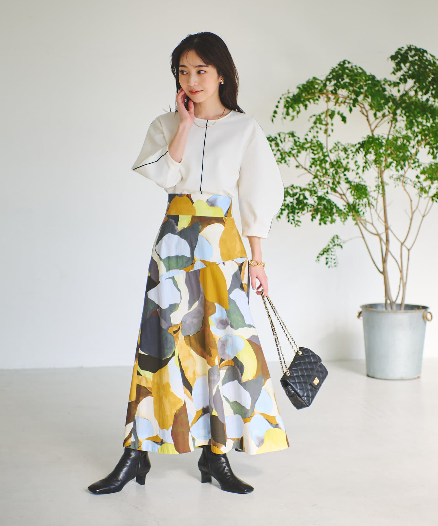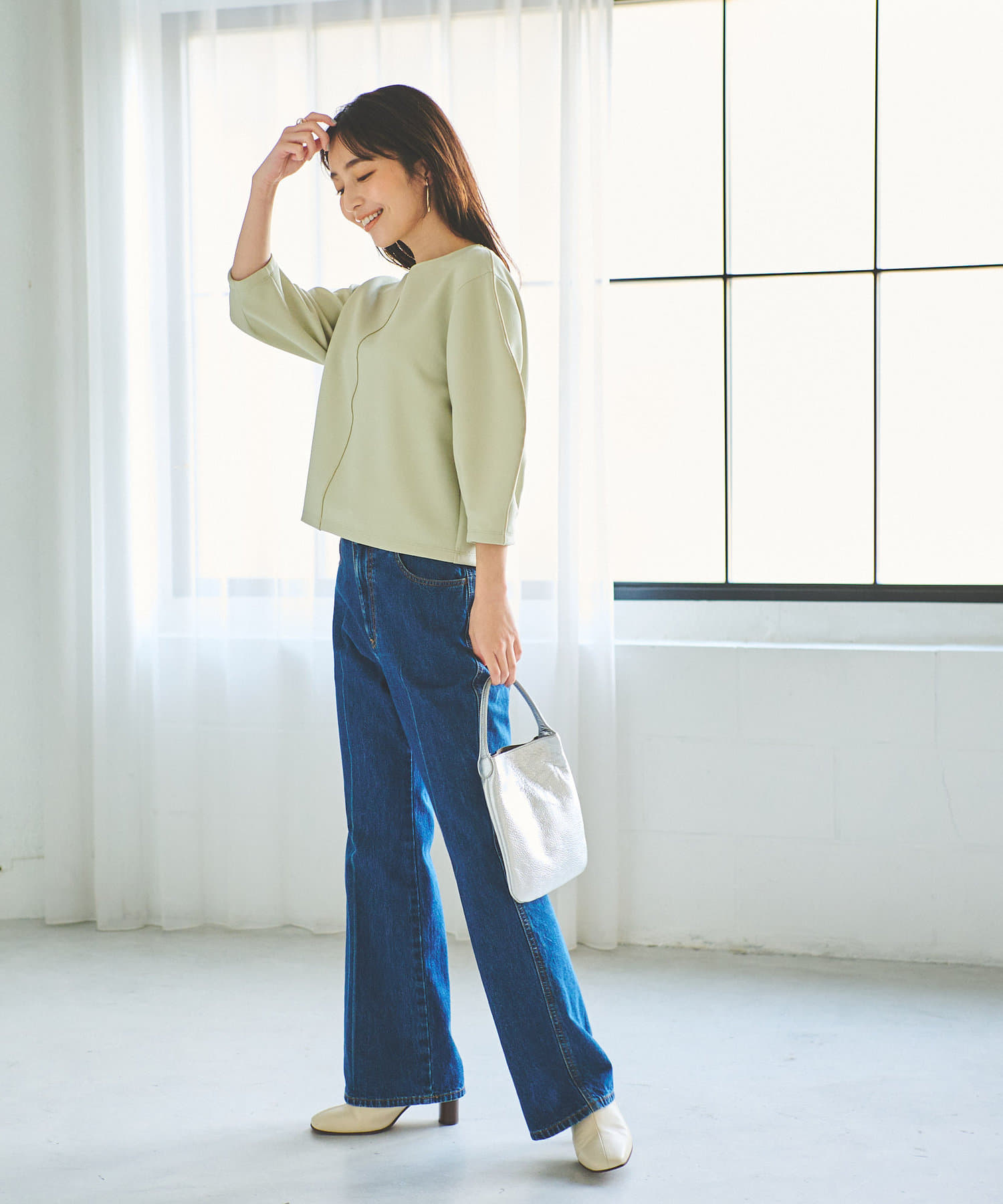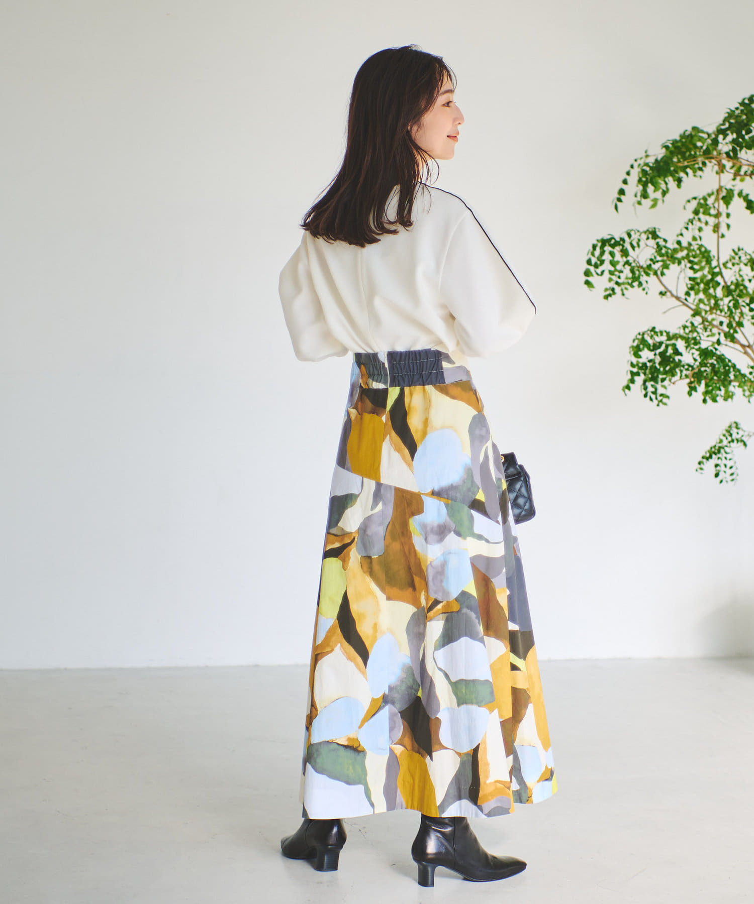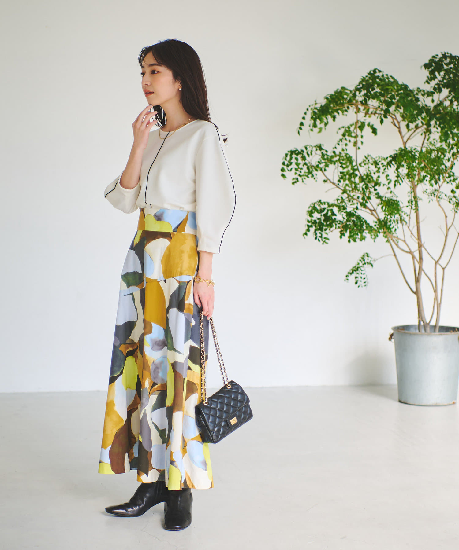 シンプルなデザインなので、柄物ボトムとも好相性です。