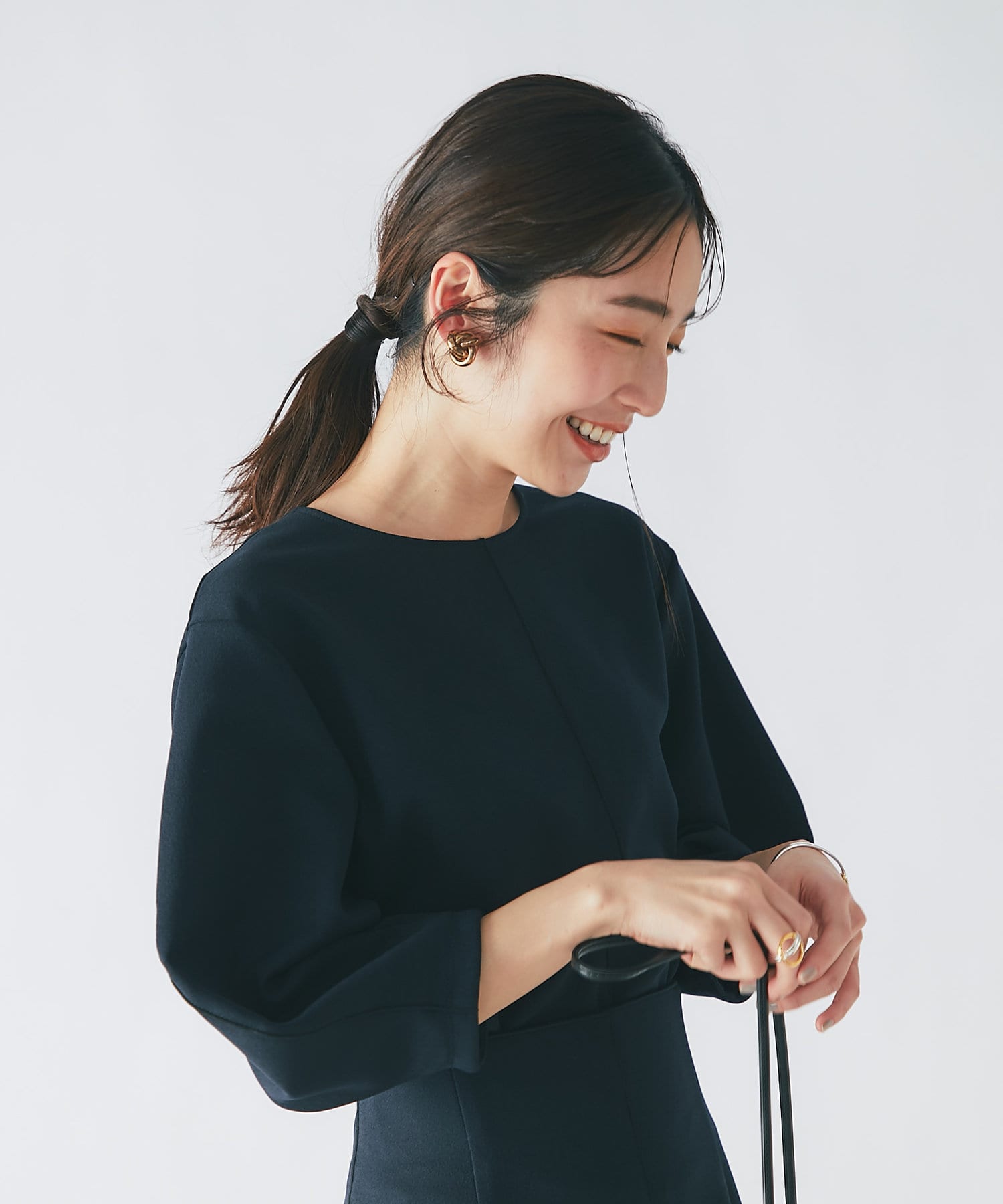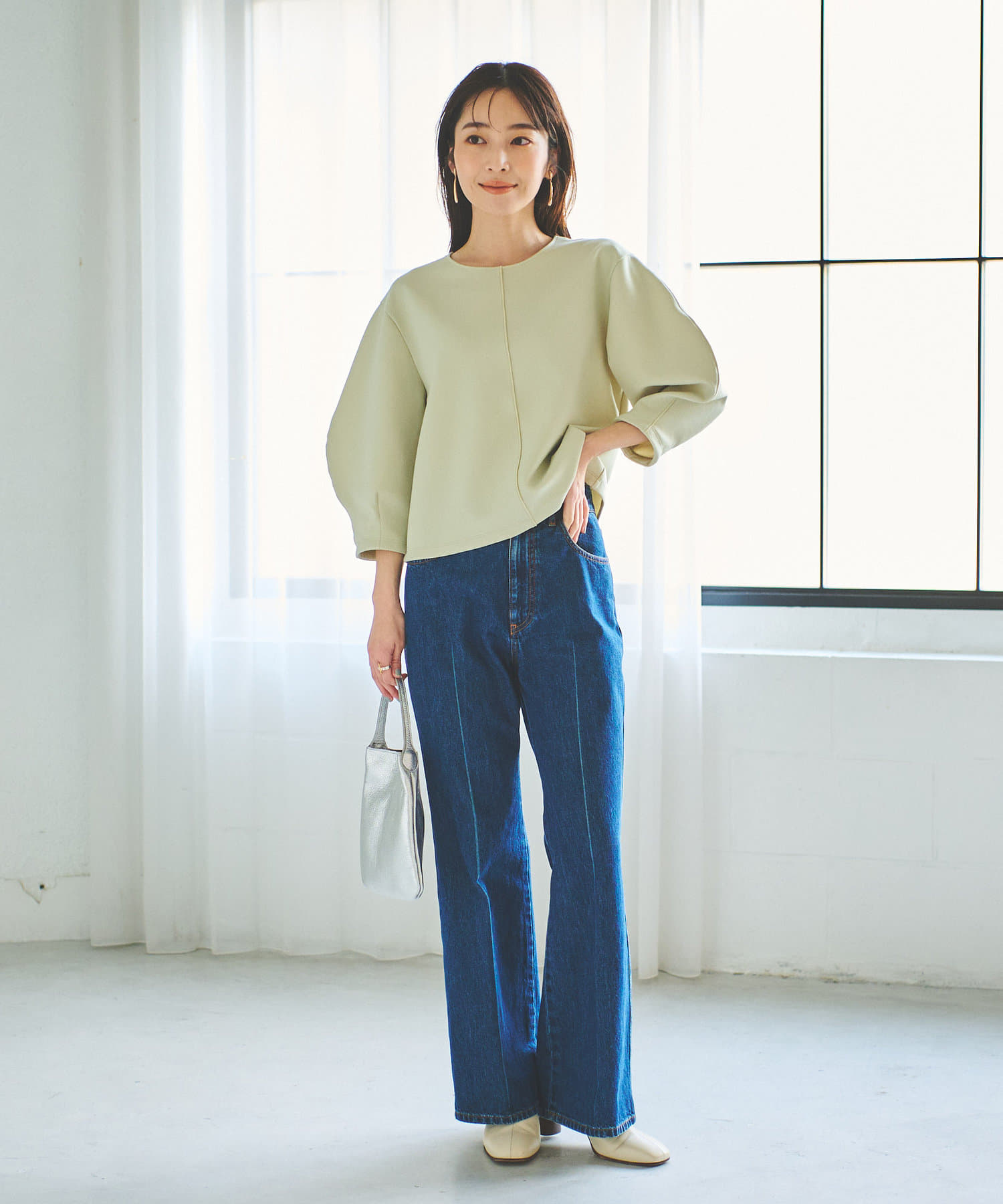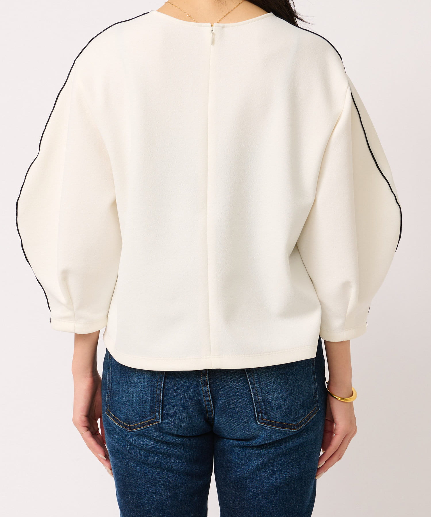 ランタンのような丸みのあるボリュームスリーブが目を引くカットソー。