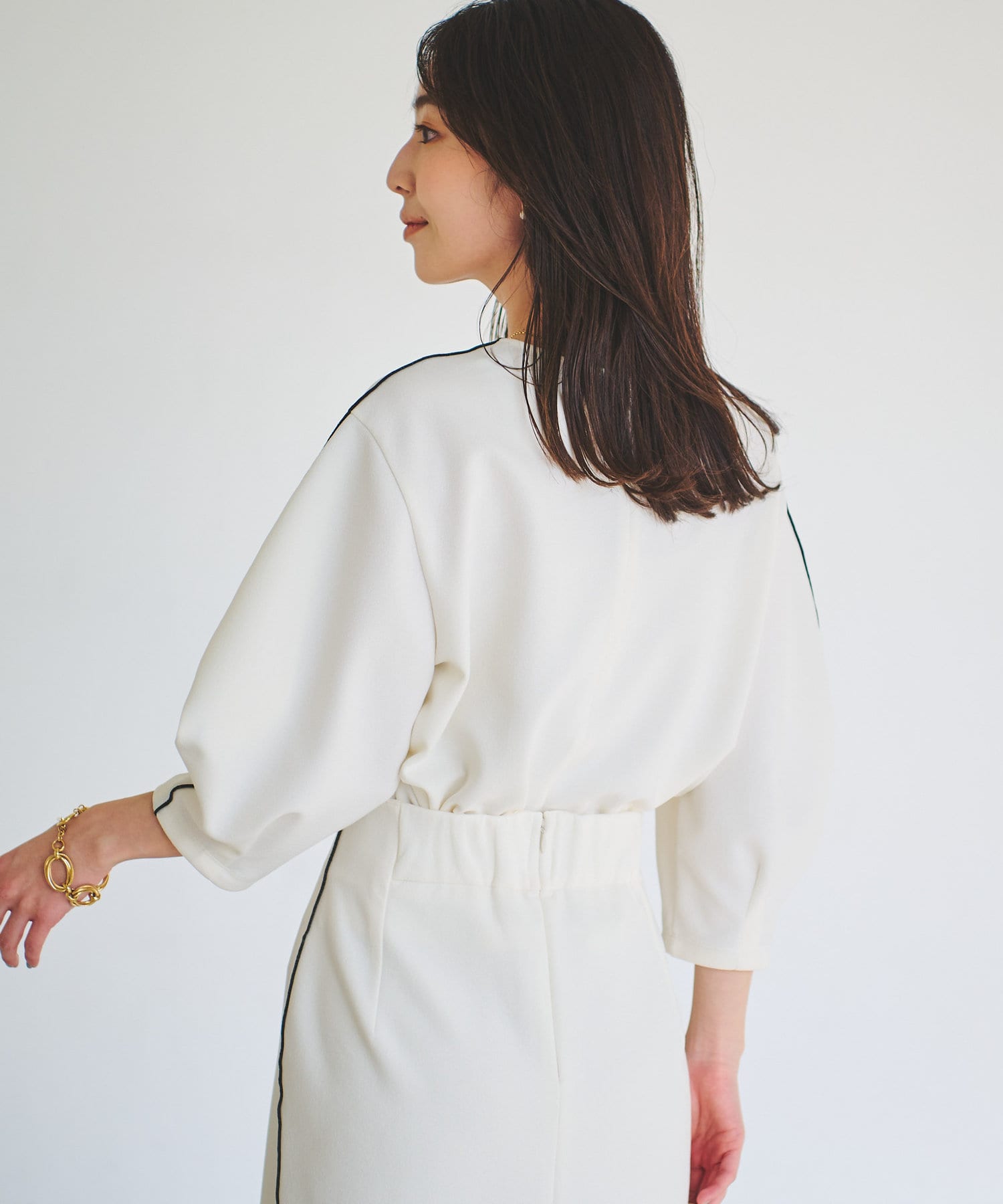 【セットアップ可能】バイカラーメローボリュームスリーブカットソー