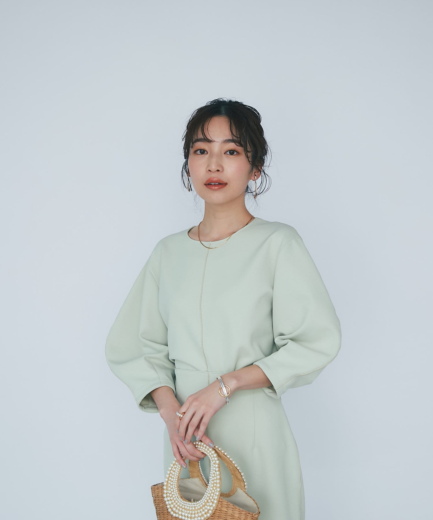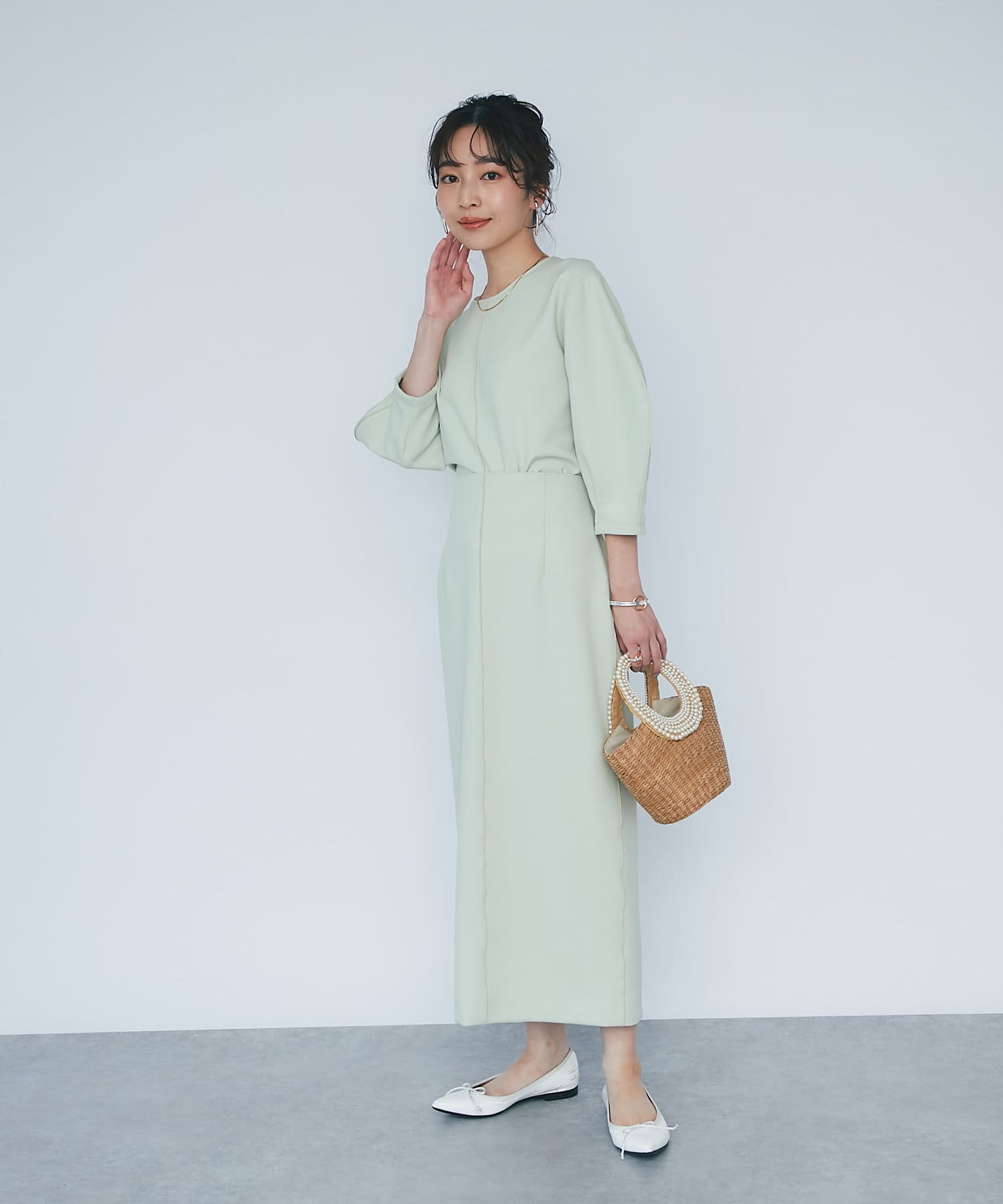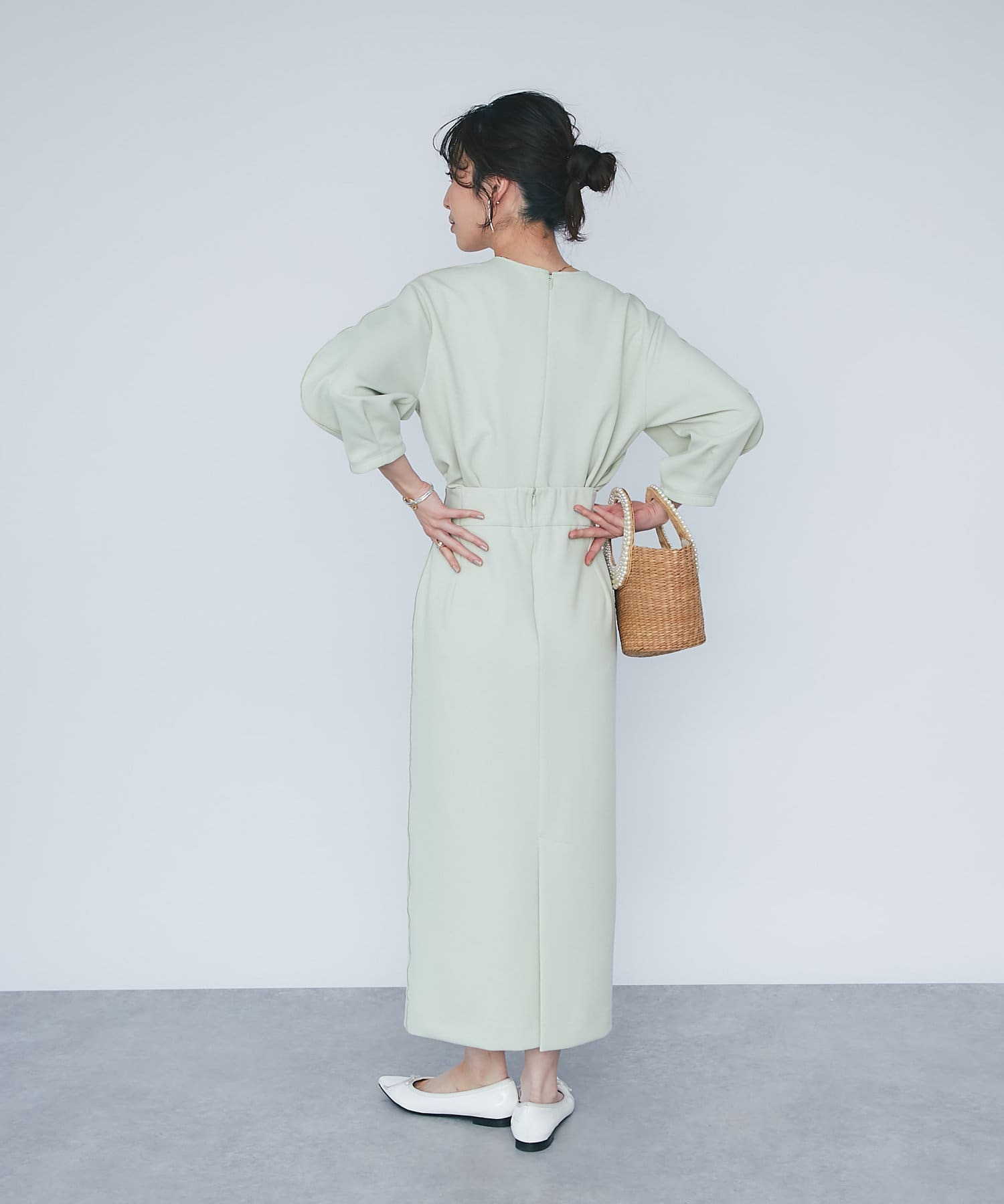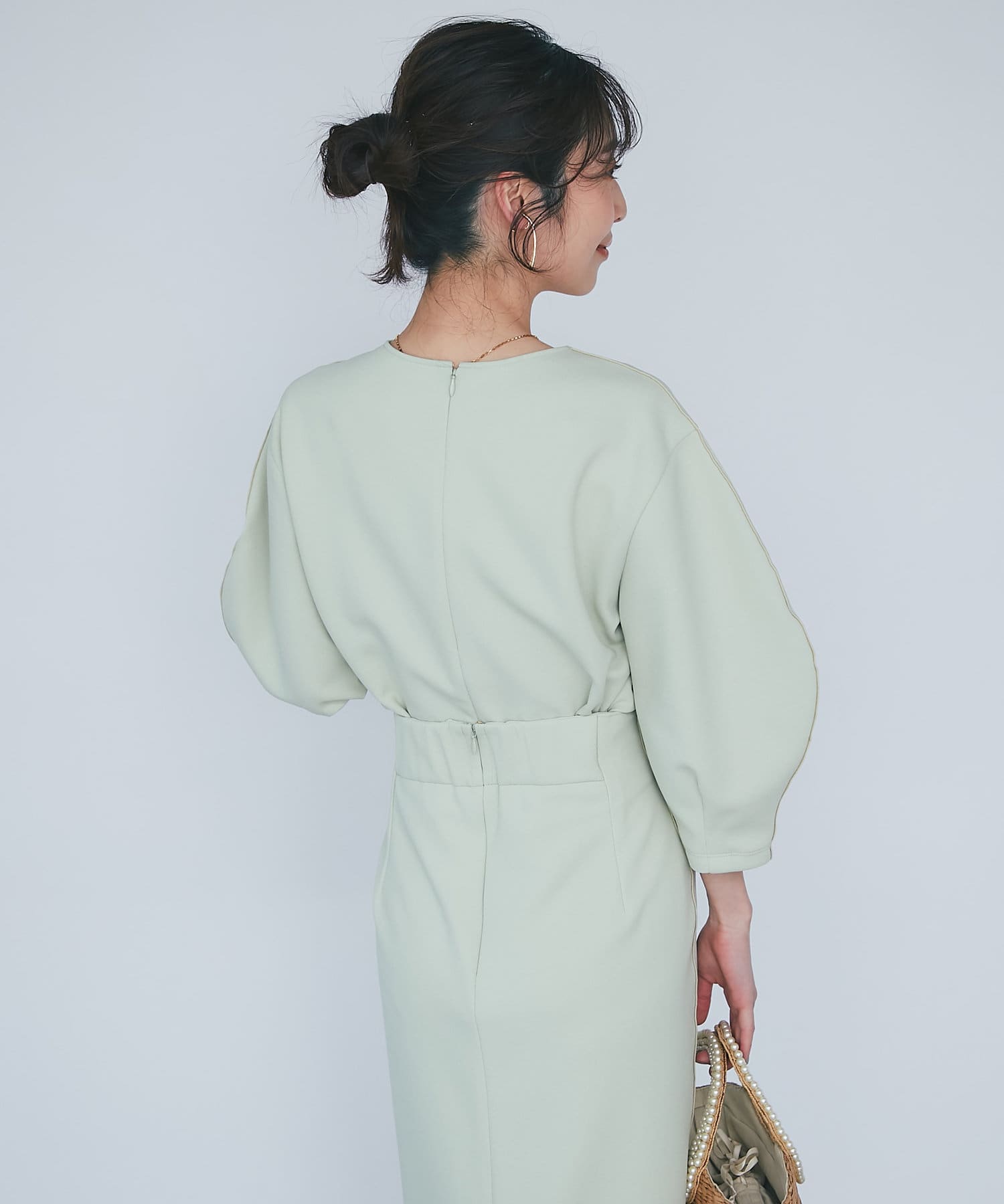 バックはコンシールファスナーで着脱しやすく、上品な仕上がりに。