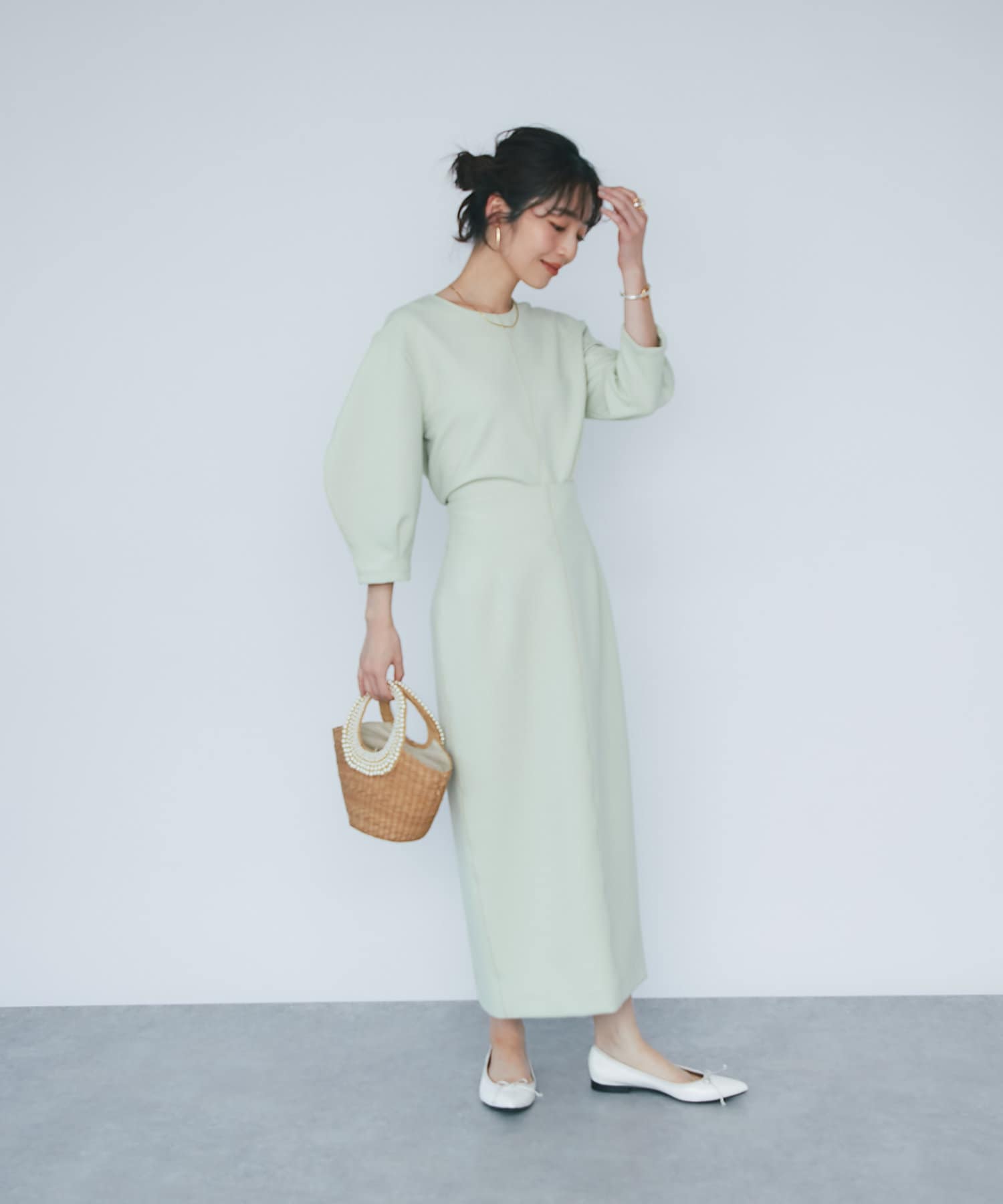 #大人カジュアル #きれいめカジュアル #上品カジュアル #上品 #セットアップ #バイカラー #メロー #ボリュームスリーブ #カットソー #オンスタイル #オフィスカジュアル #きちんと感