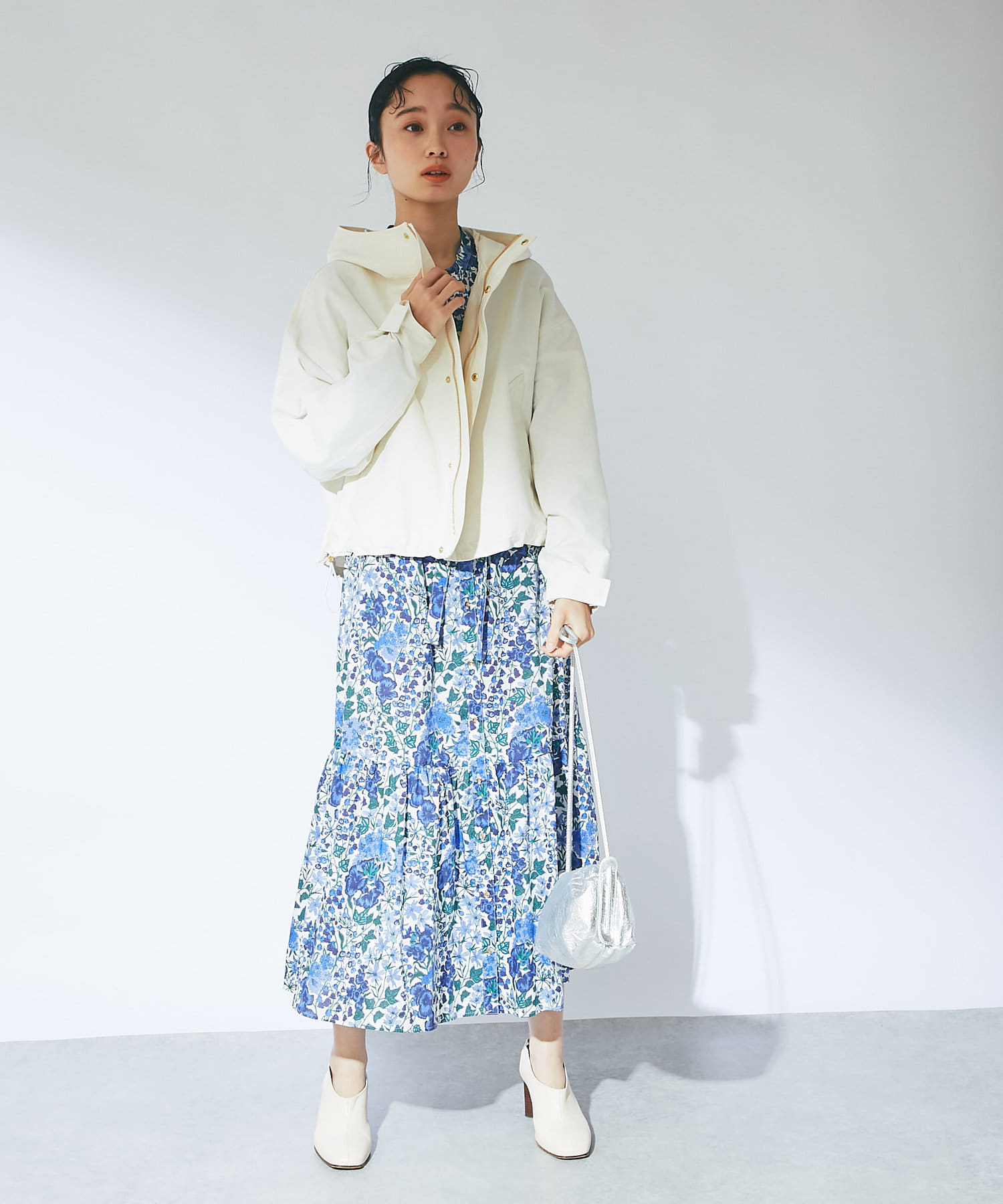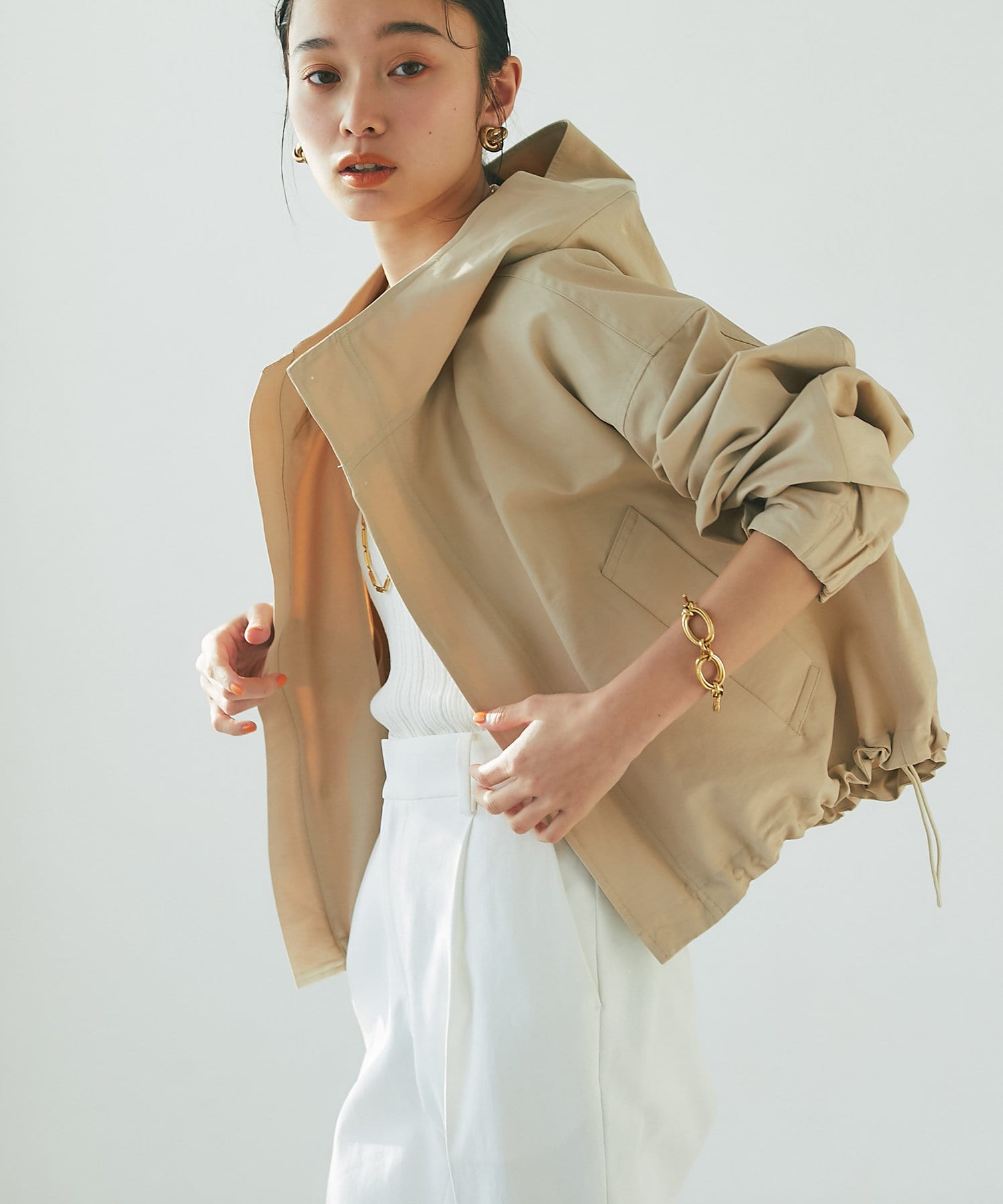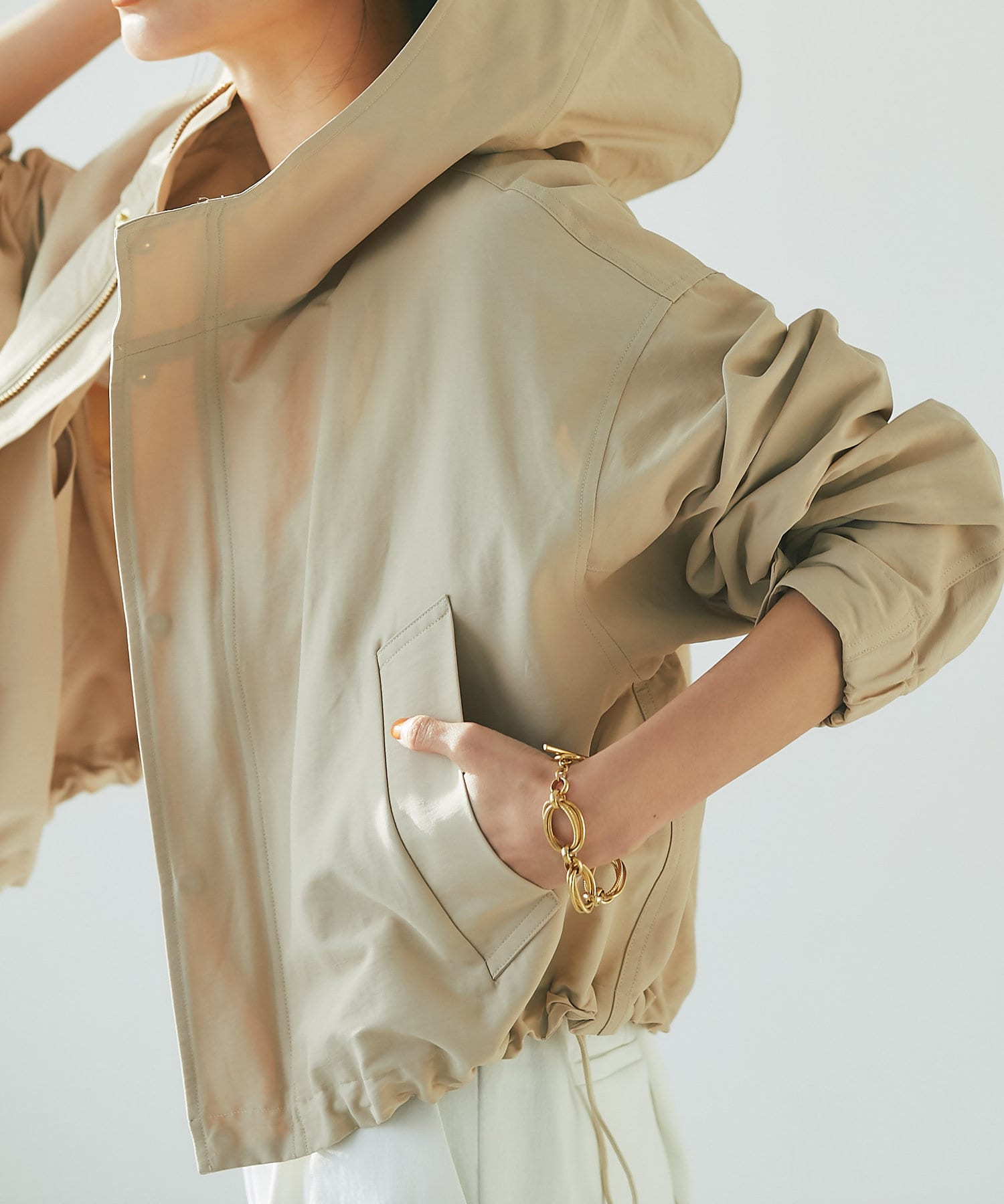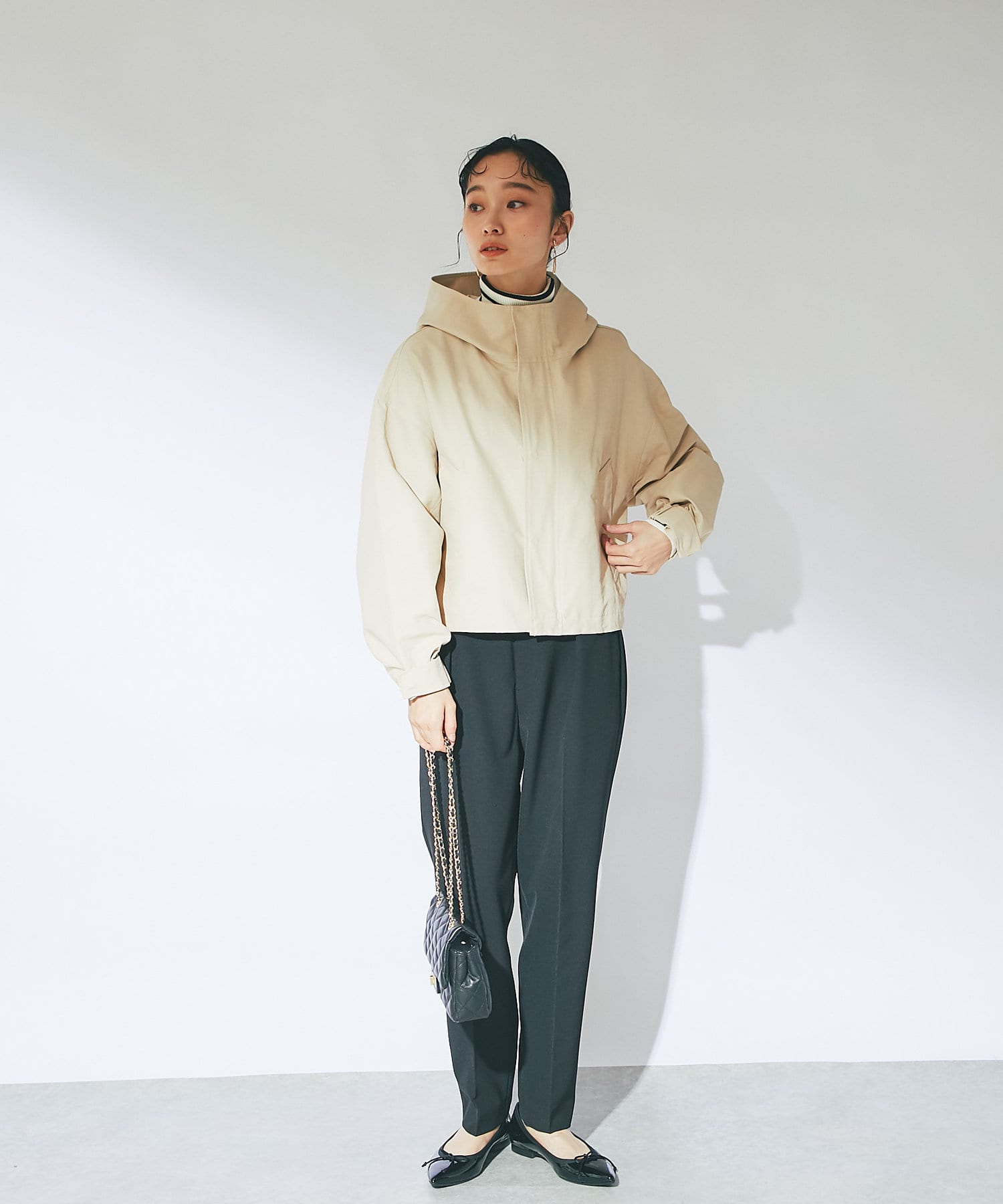 #大人カジュアル #きれいめカジュアル #上品カジュアル #フーディ #ショートブルゾン #ブルゾン #アウター #春アウター #コットンナイロン #ドロスト #ワイドシルエット