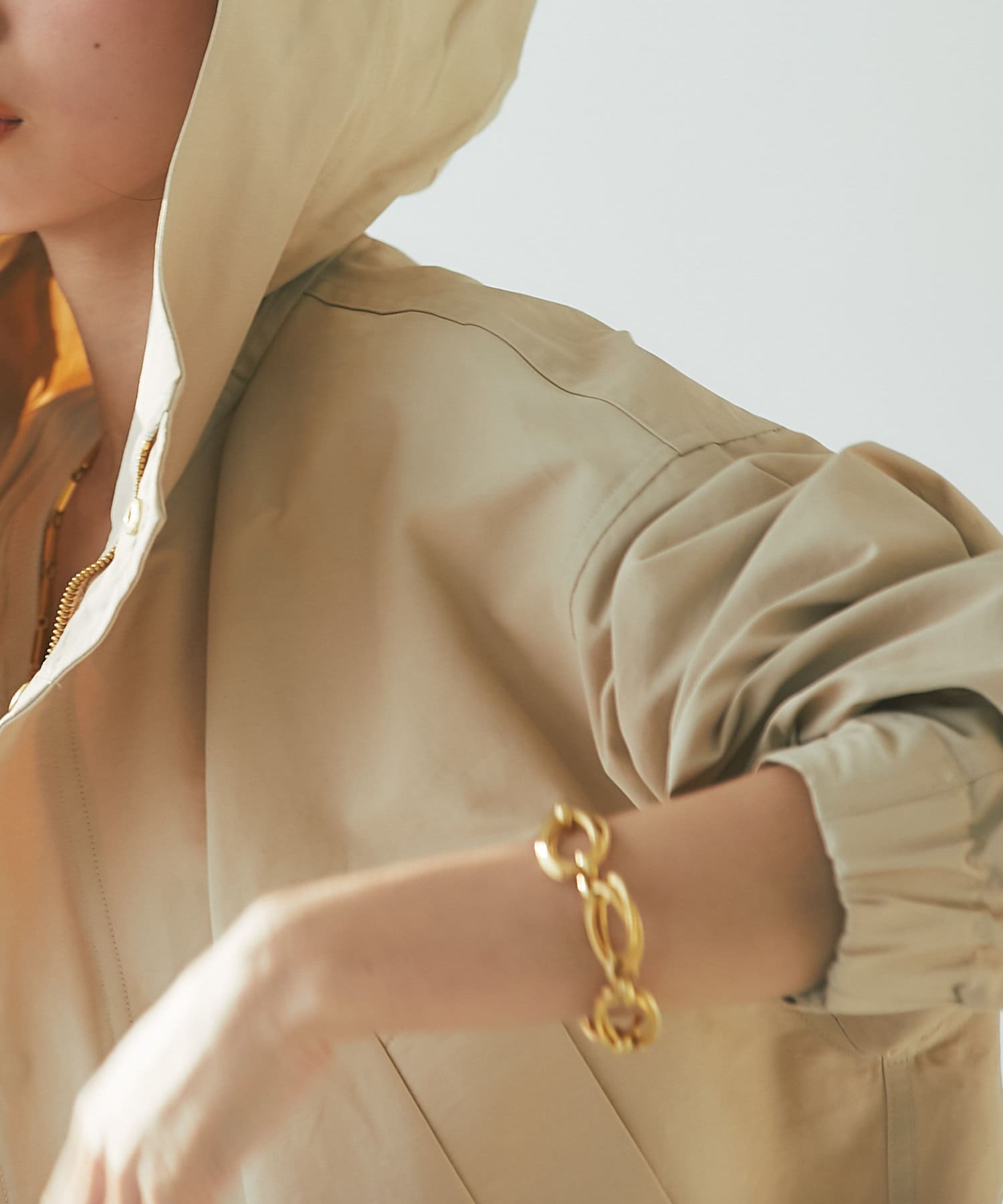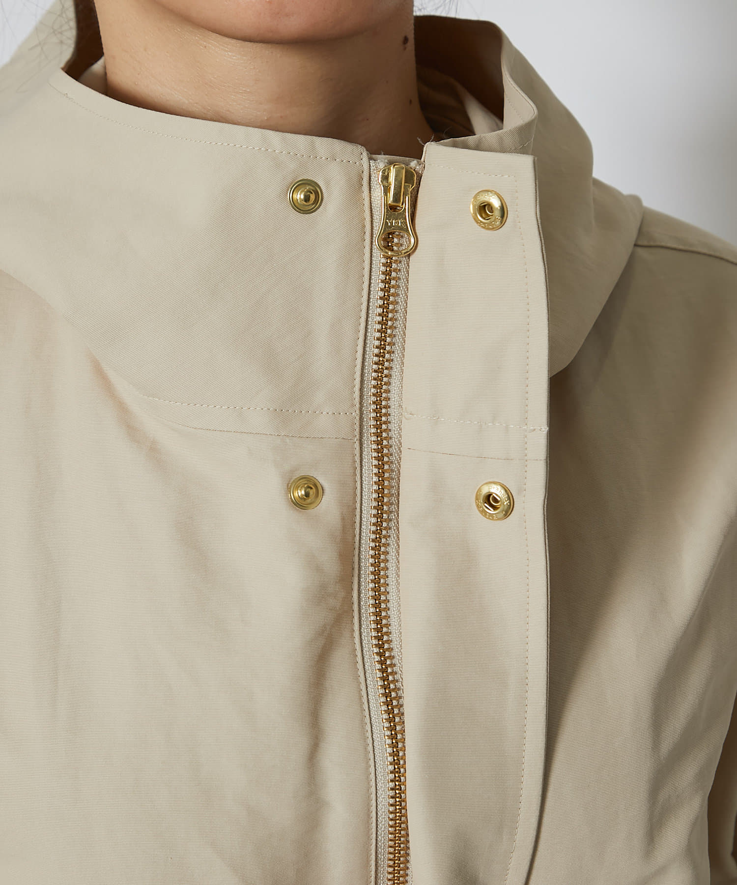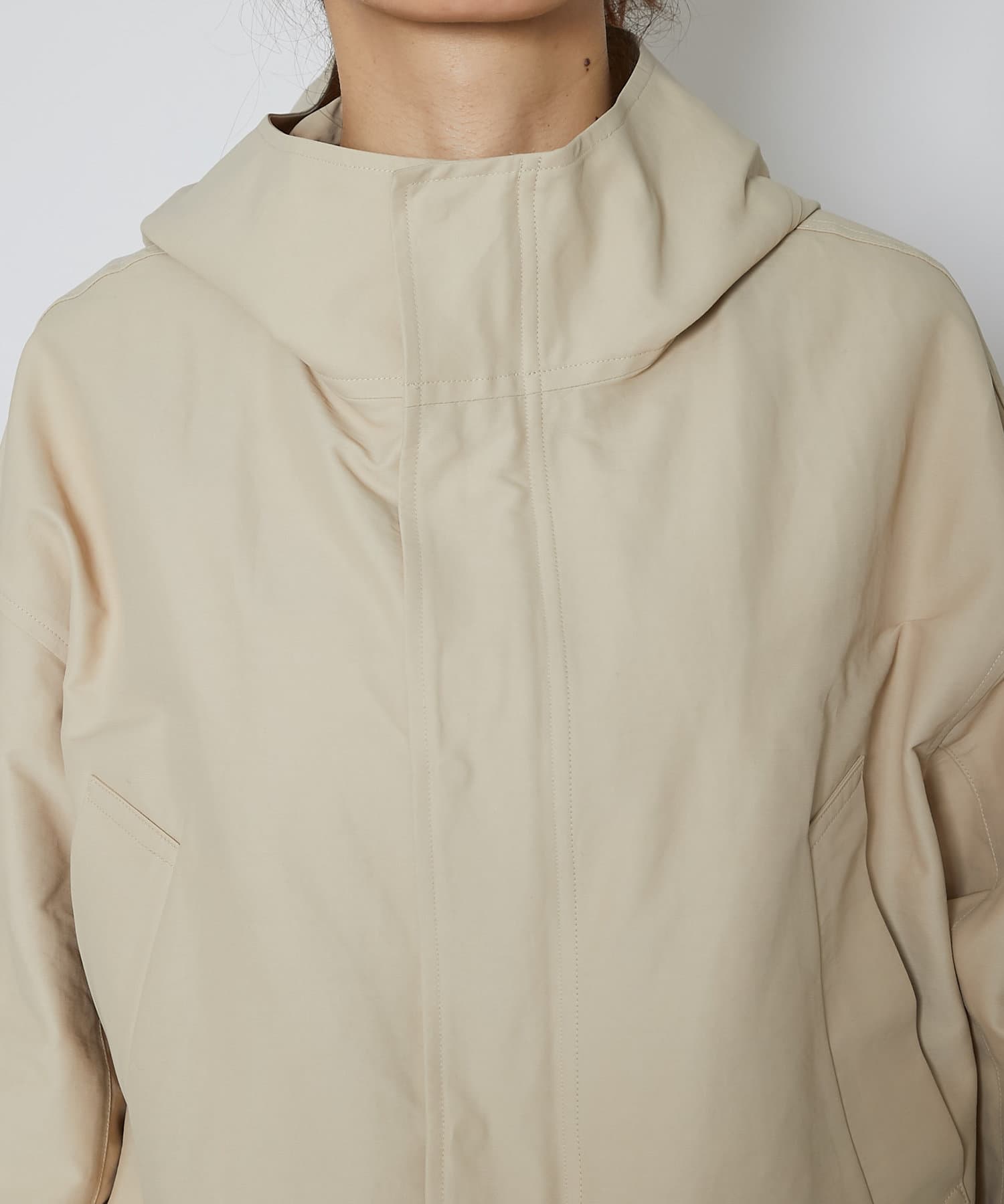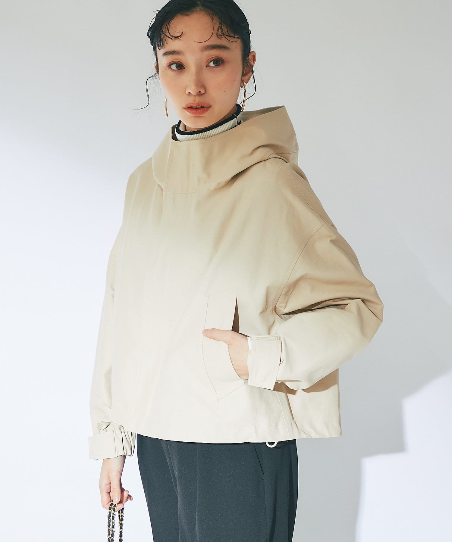 • 高めの襟からなるフードで小顔効果にも期待できるデザインです。