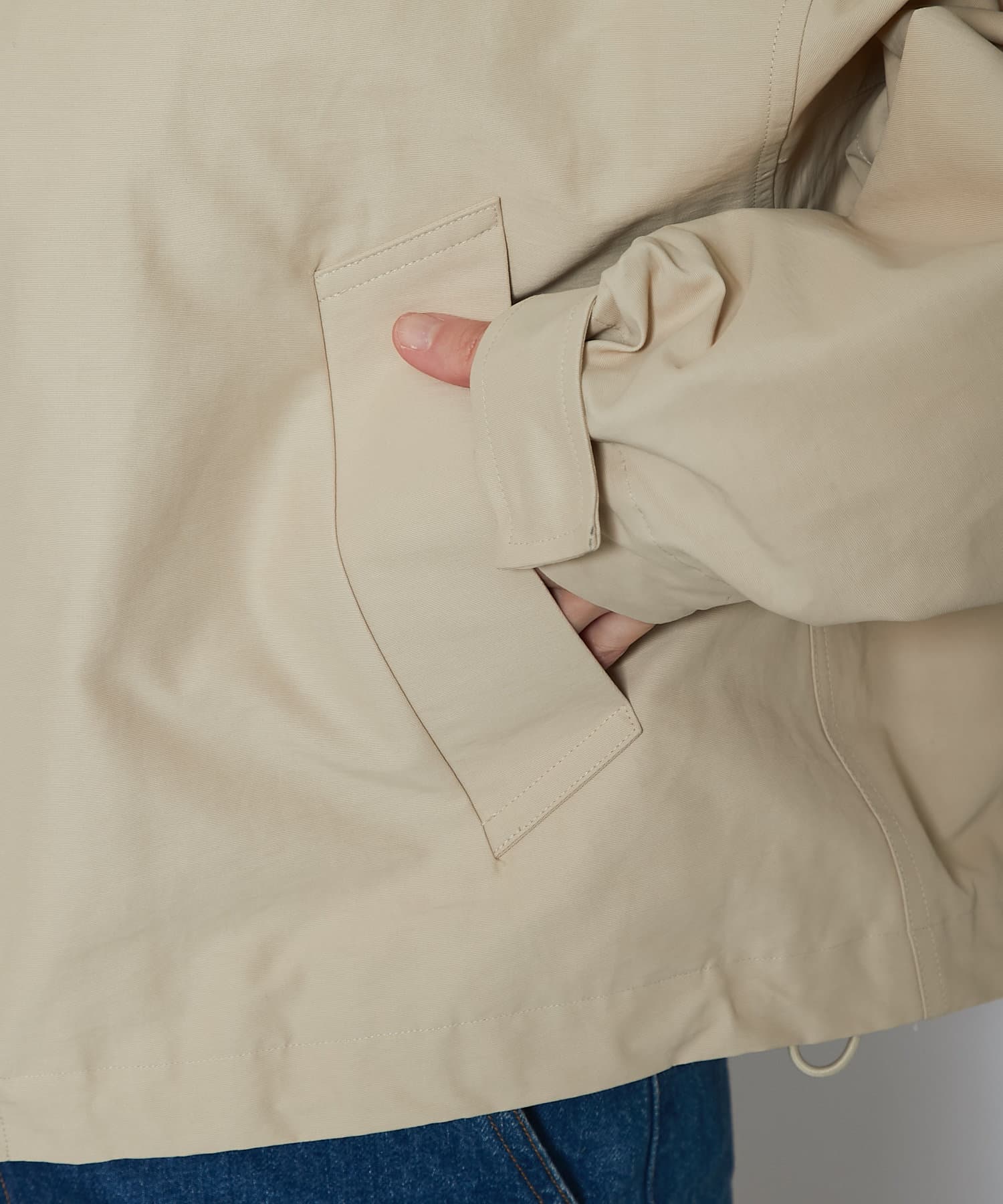 • ハリのある生地を使用しているのでフードがくたっとしないのも嬉しい。