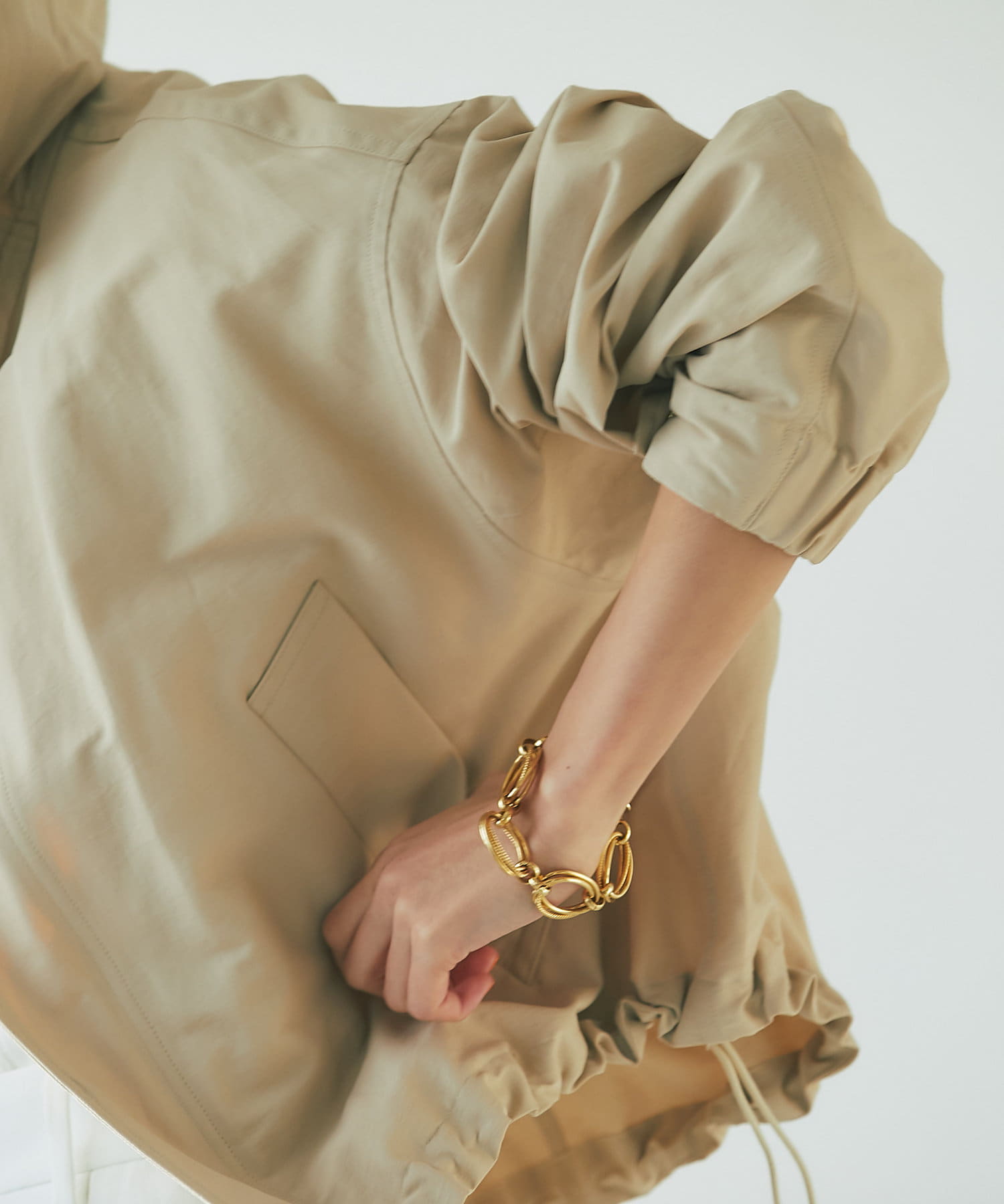 • 裾のドロストでフォルムに変化を付けられるのもポイント。