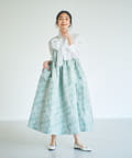 胸下切り替えから広がるふんわりギャザーのボリュームも華やか。