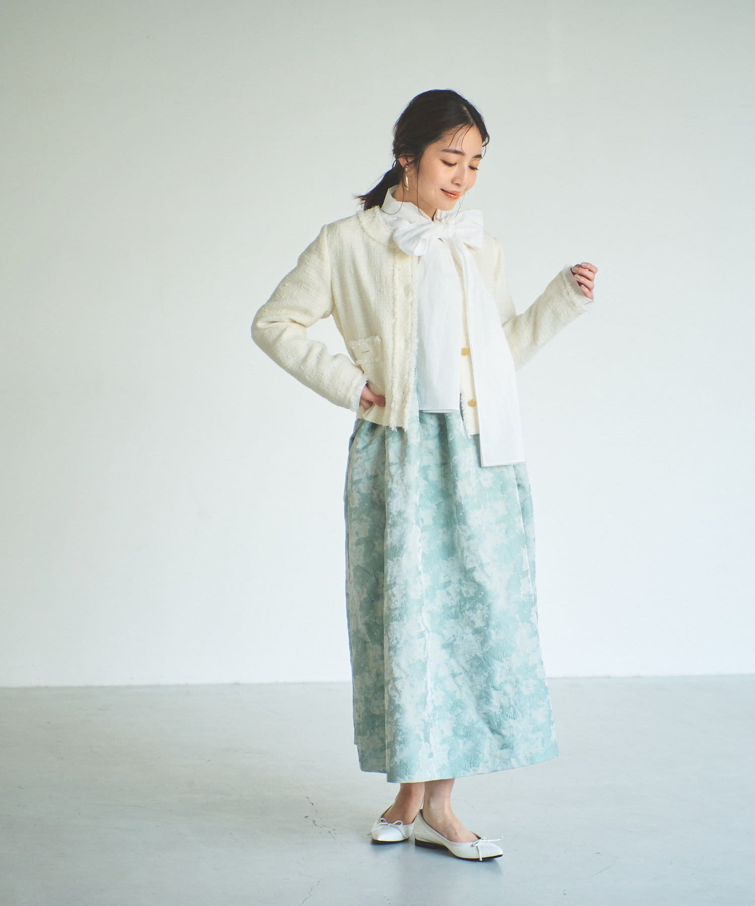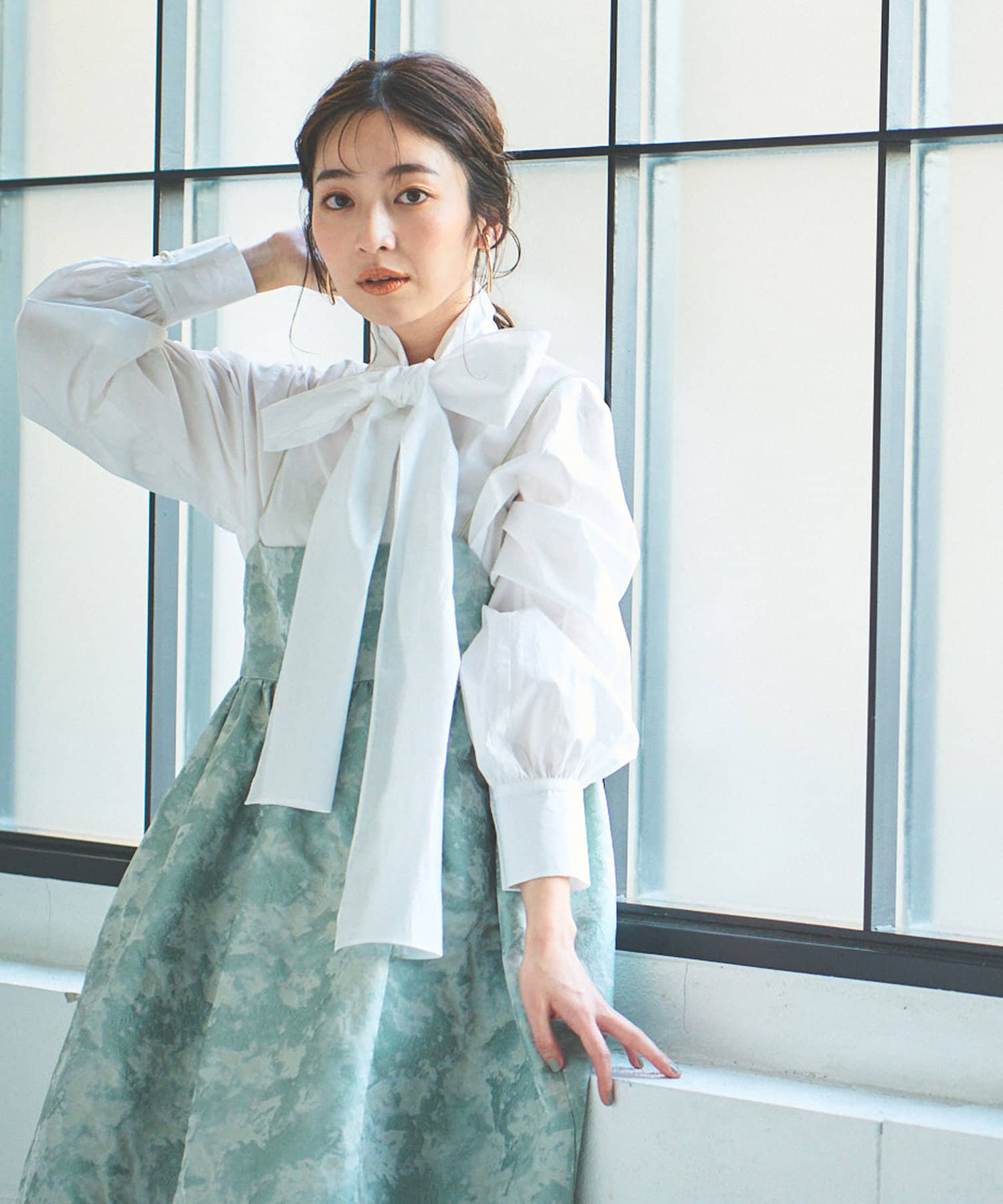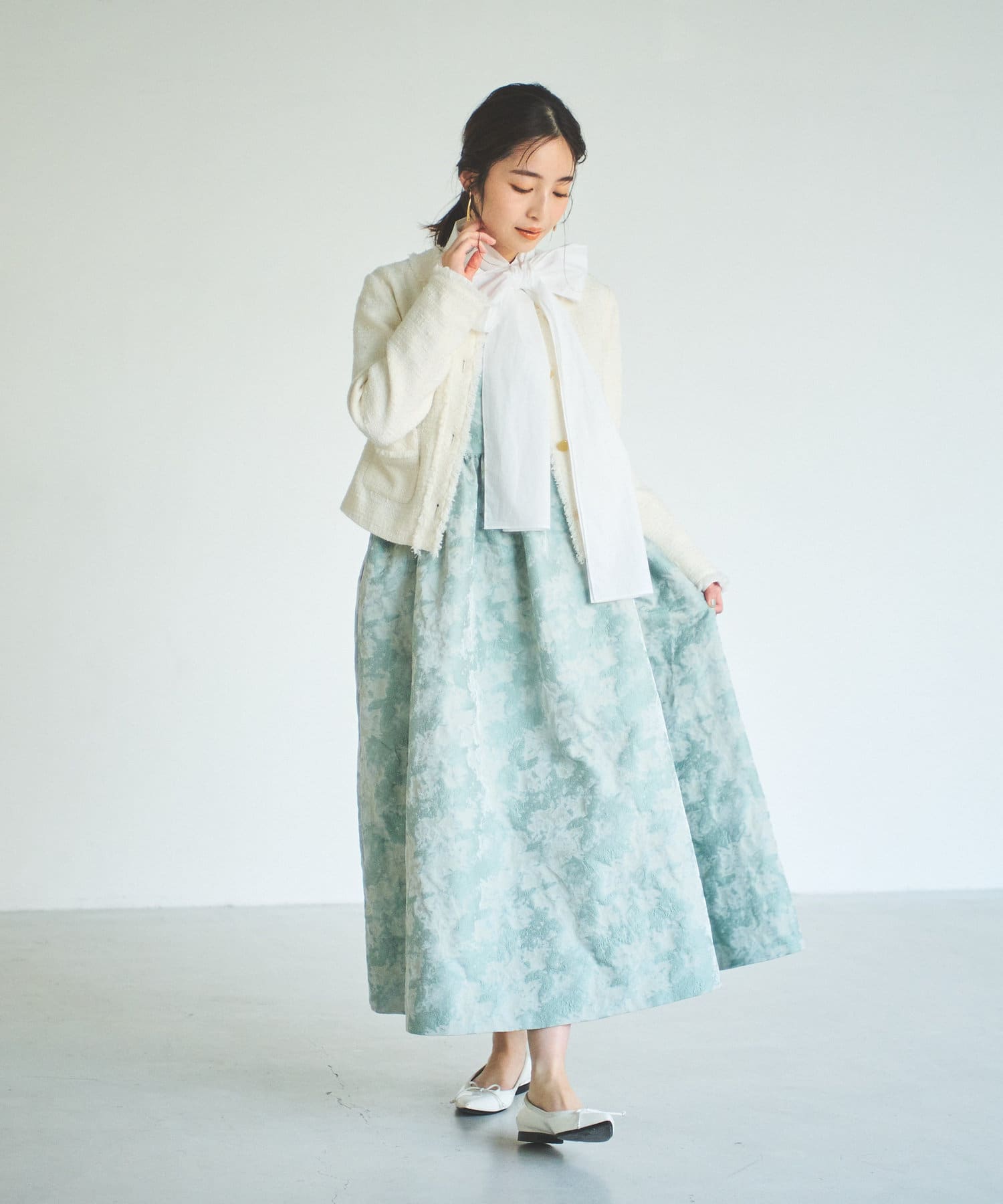 また、トレンドのボウタイブラウスなども合わせやすく、お呼ばれにも最適です。