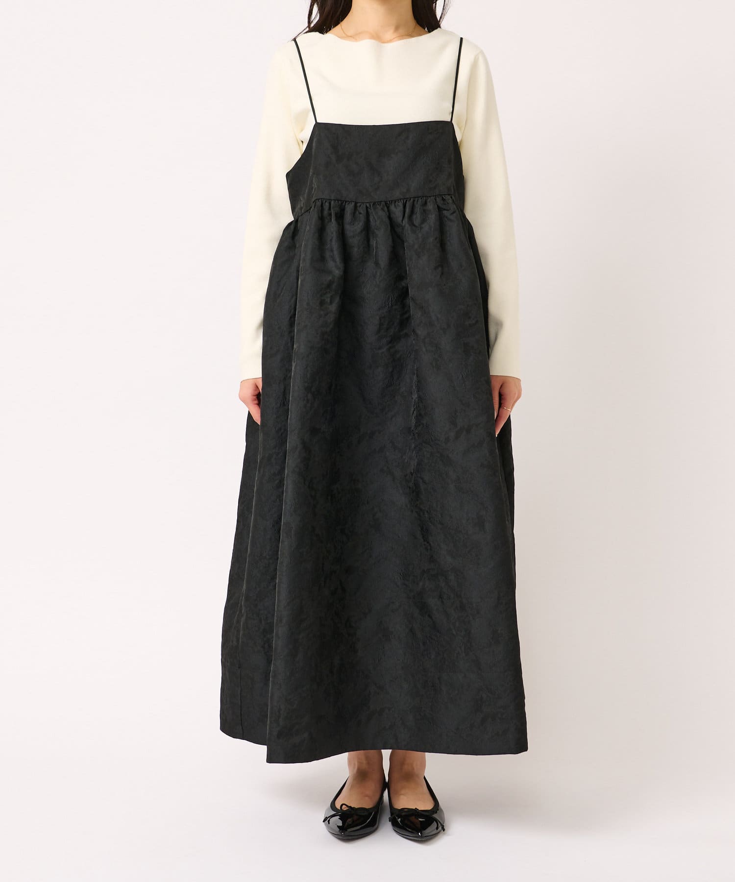ヴィンテージ風のジャガード素材を贅沢に使用したキャミソールワンピース。