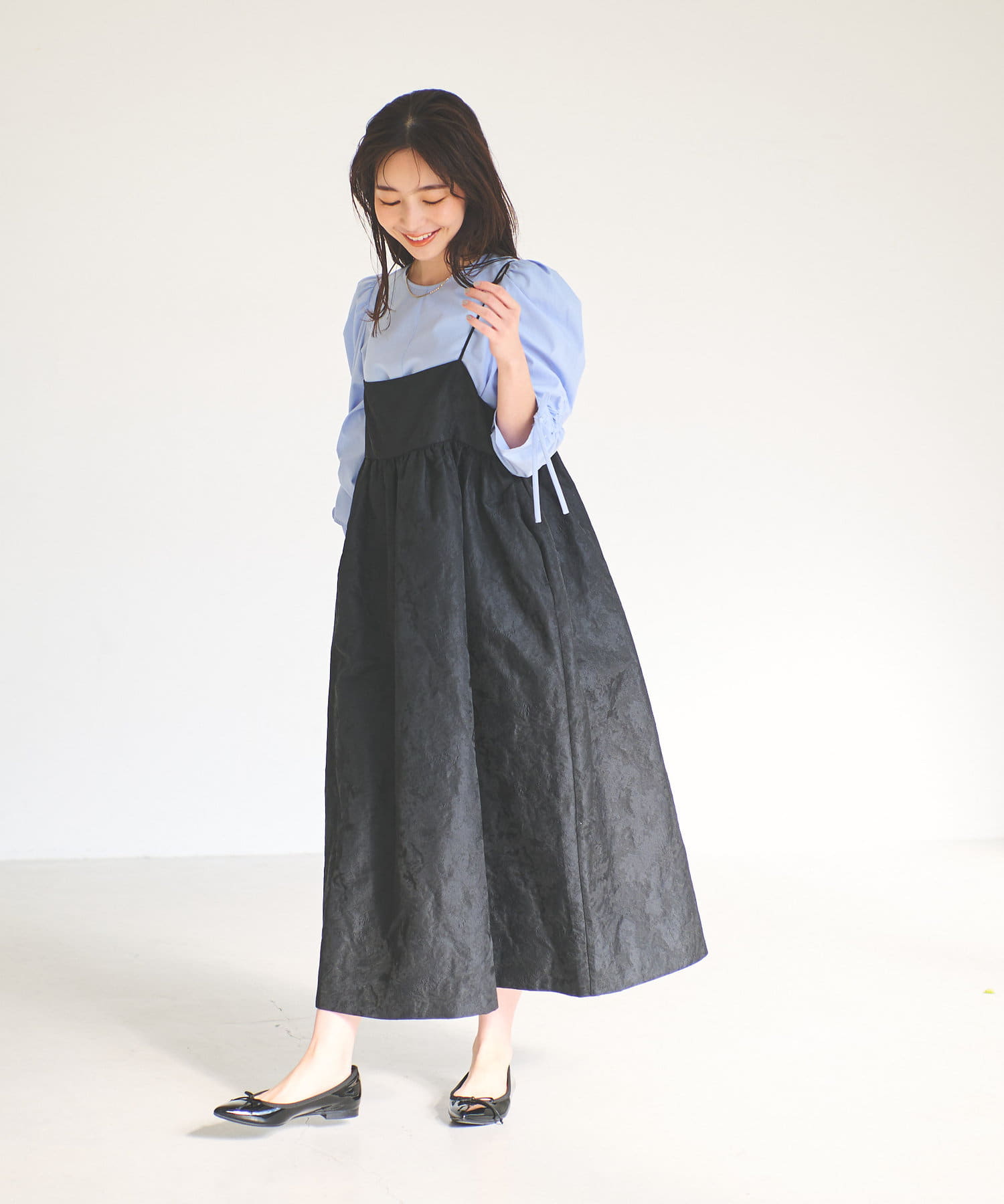 豪華なジャガード素材がオシャレ!キャミソールワンピース