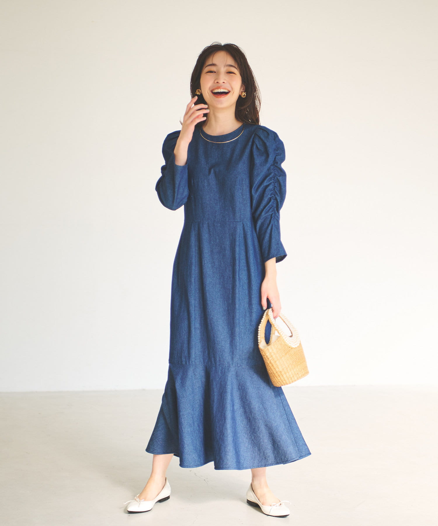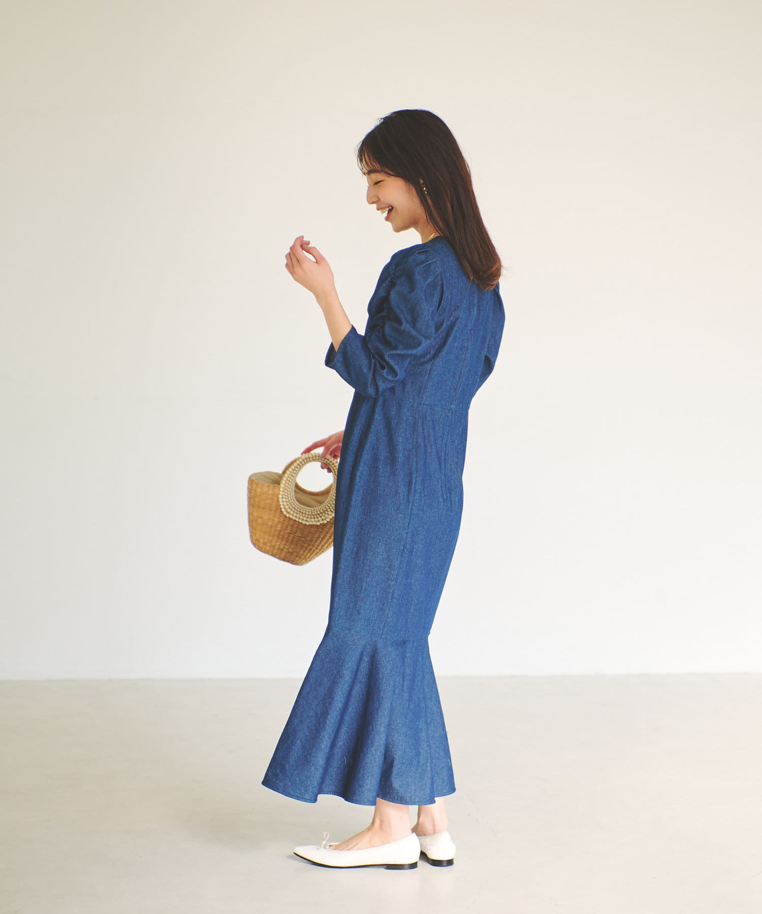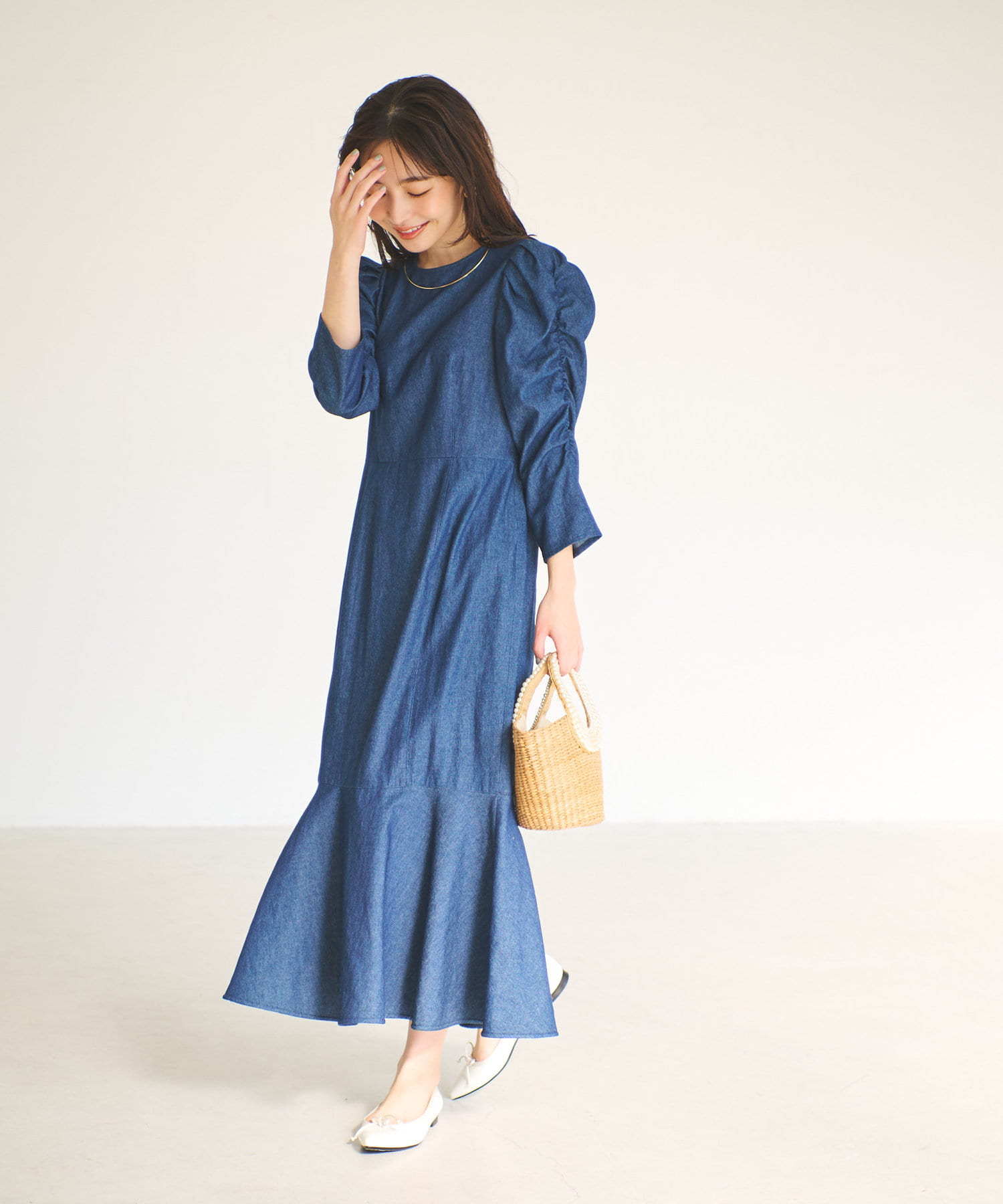 #大人カジュアル #きれいめカジュアル #上品カジュアル #上品 #ワンピース #デニムワンピース #ロング丈 #パワショル #パワショルワンピース #マーメイド #マーメイドワンピース #フェミニン