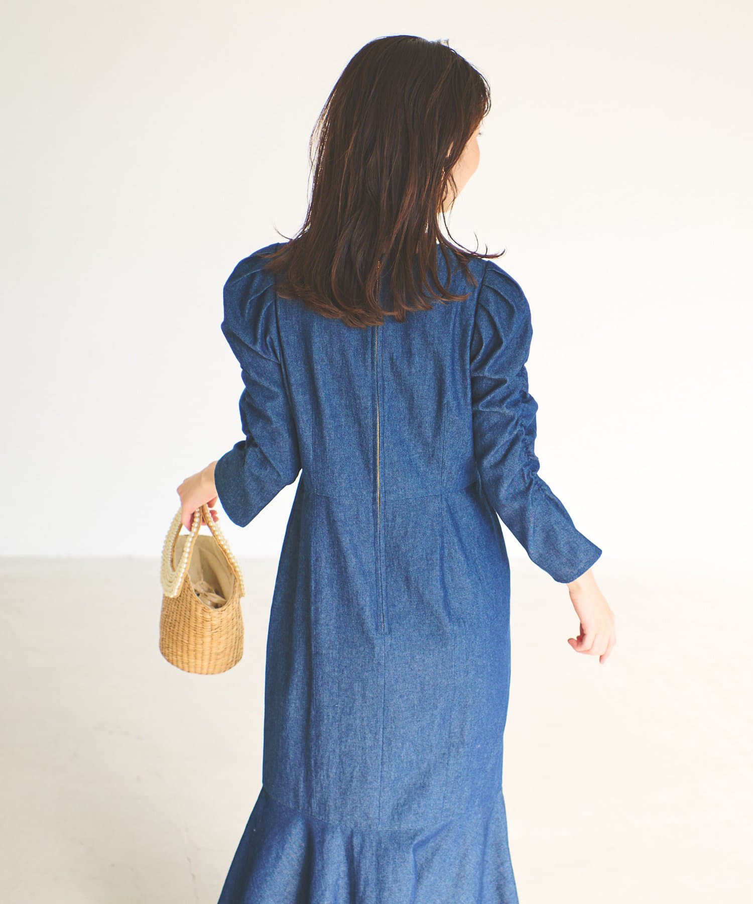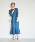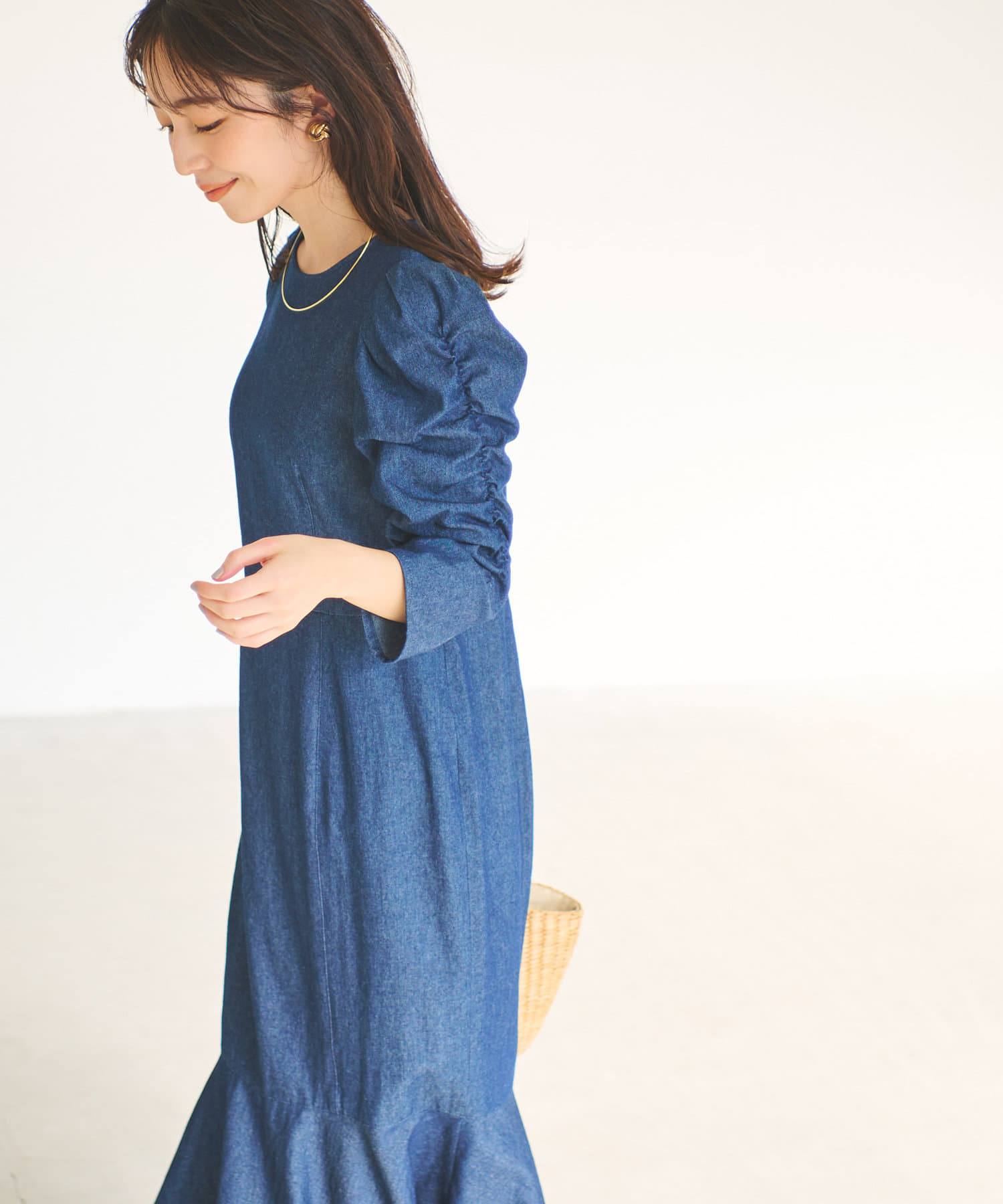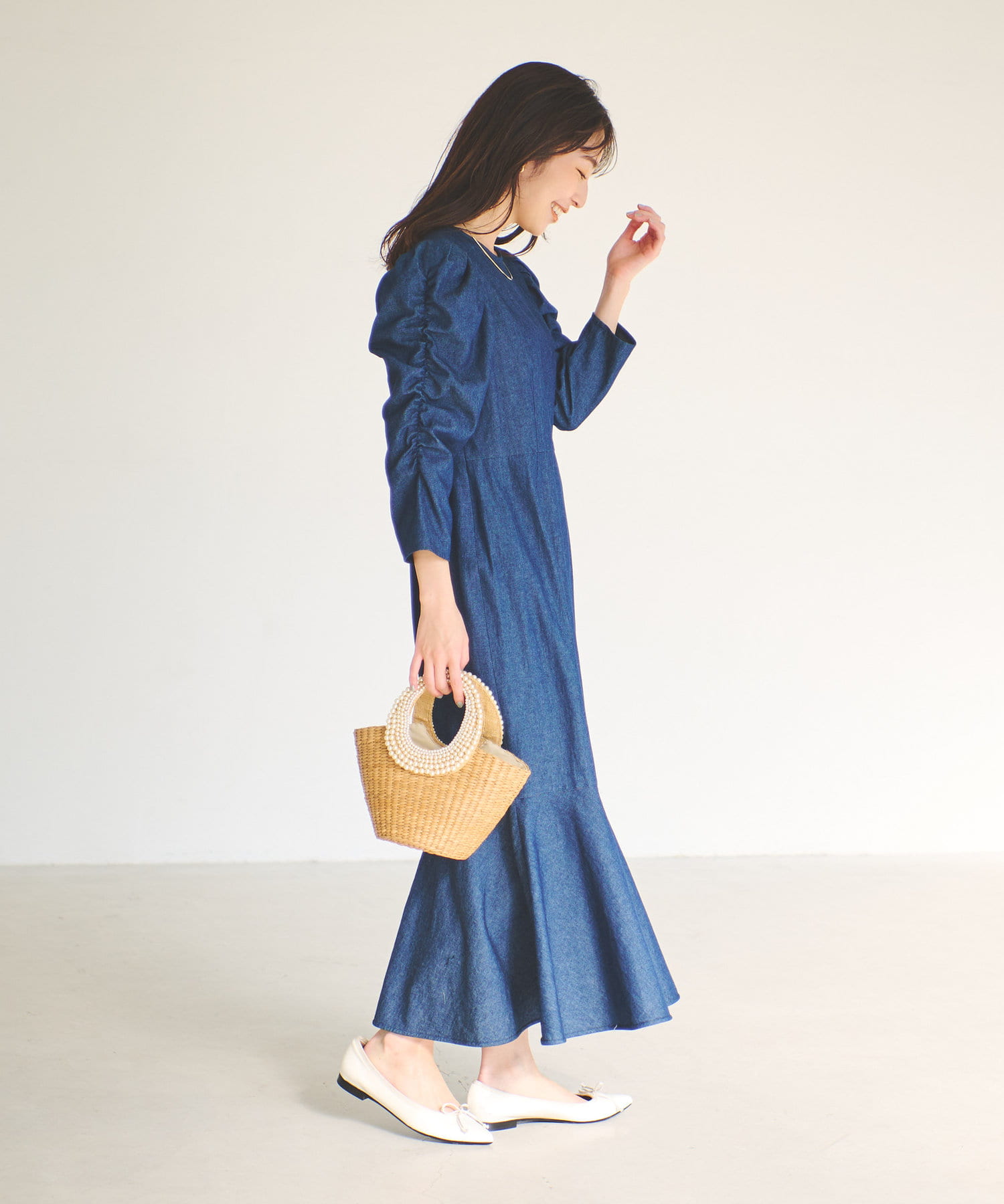 #大人カジュアル #きれいめカジュアル #上品カジュアル #上品 #ワンピース #デニムワンピース #ロング丈 #パワショル #パワショルワンピース #マーメイド #マーメイドワンピース #フェミニン