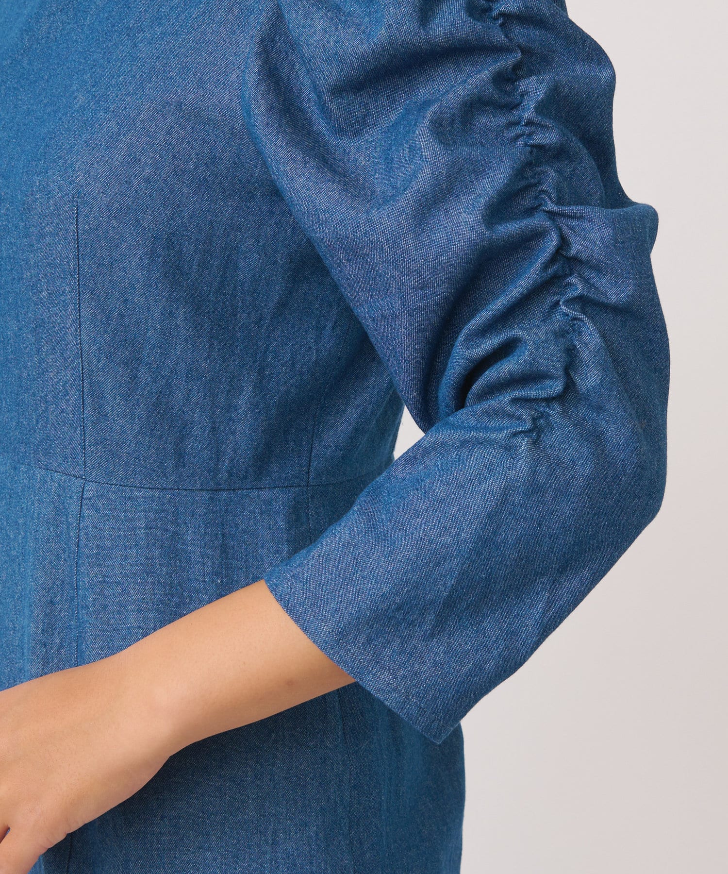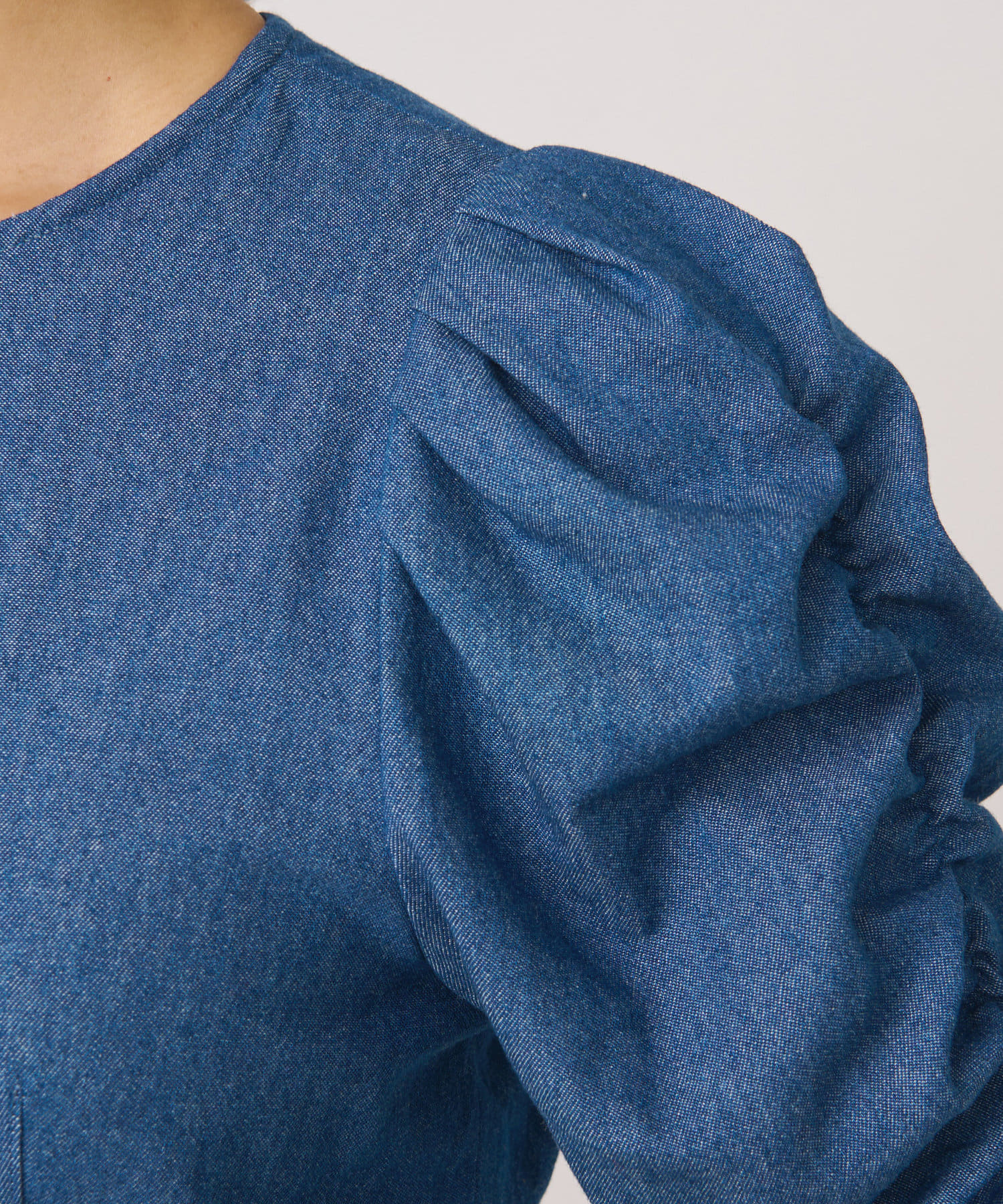 ラブティックボンボンが得意とするパワーショルダーデザインをデニム素材に落とし込んだワンピース。